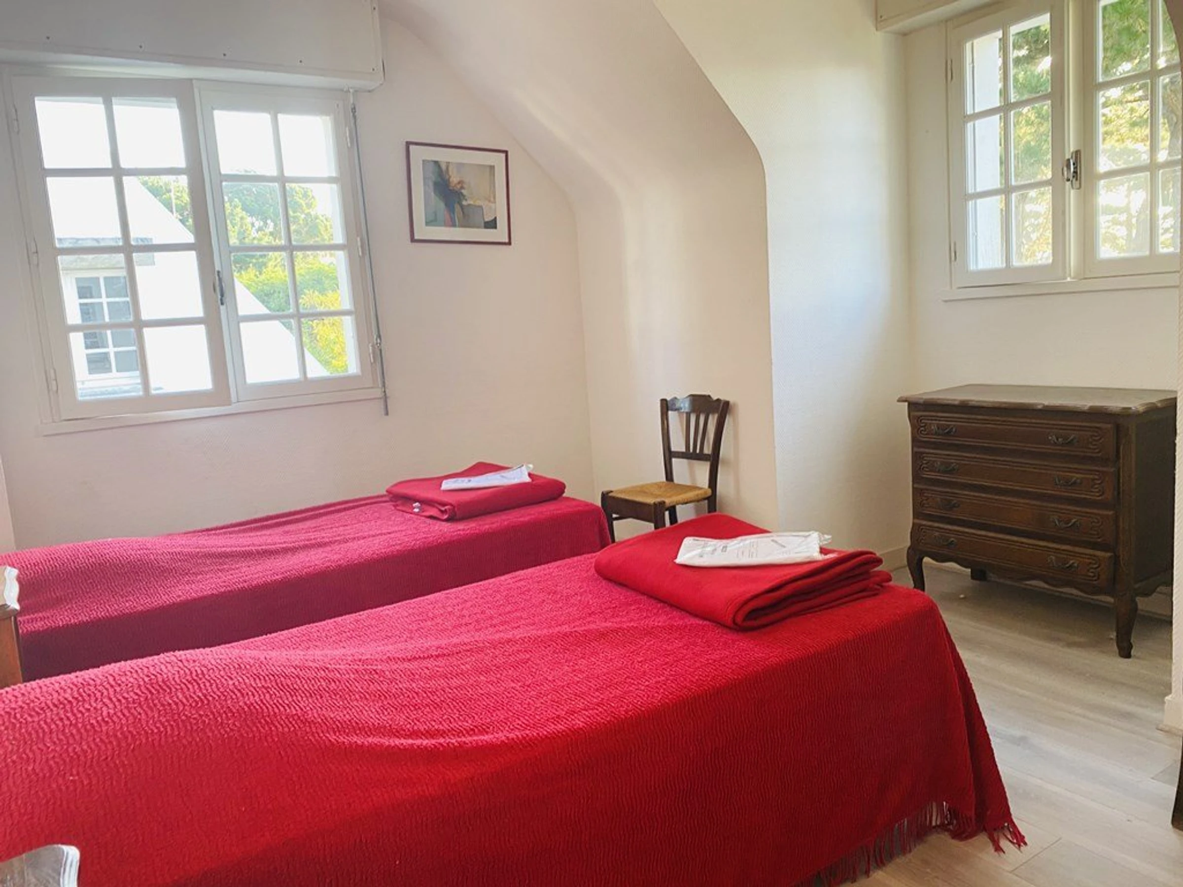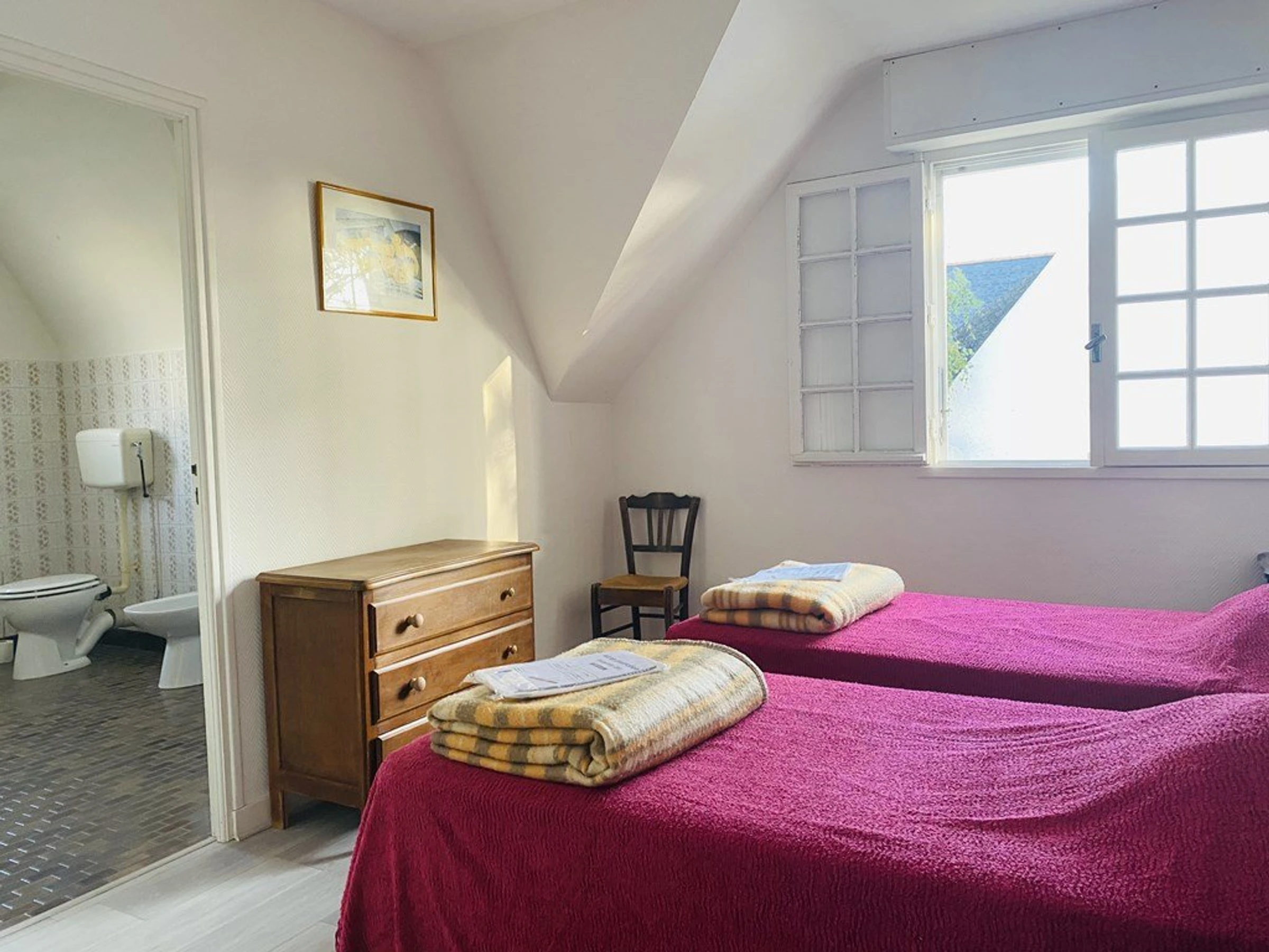 Chambre 1 (2 lits 0,90 couvertures) cabinet de toilette, Chambre 2 (1x140 couvertures), [hidden], Salle d'eau (Lave- linge).