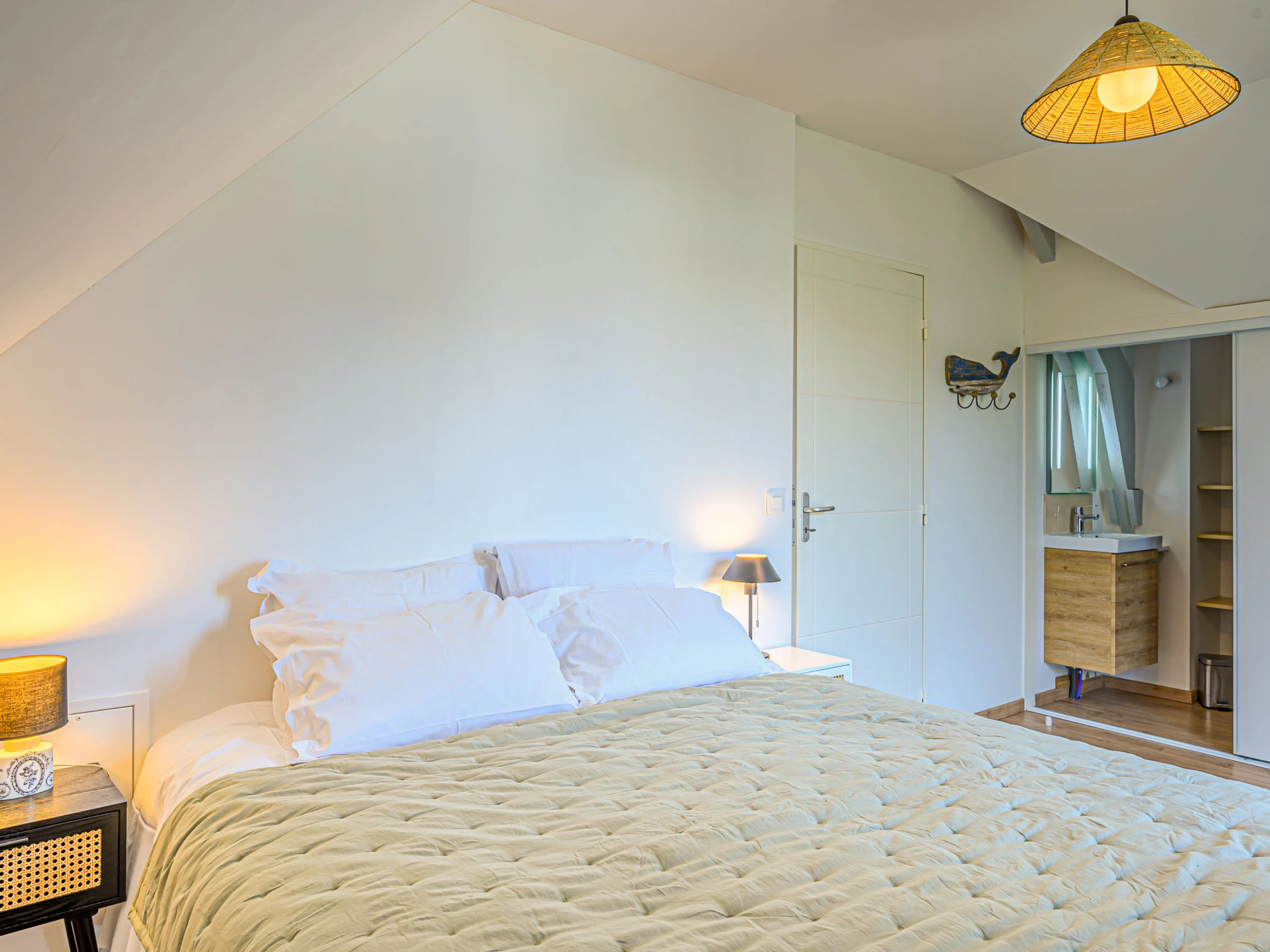 "Ranguhan", maison mitoyenne 5 pièces 101 m2 sur 2 niveaux, situation sud. Aménagement confortable: séjour/salle à manger. Sortie sur le jardin. 1 chambre avec 1 grand-lit (1 x 160 cm, longueur 200 cm). Cuisine ouverte (four, lave-vaisselle, 4 feux, grille-pain, bouilloire électrique, cafetière électrique, Capsules pour machine à café (Nespresso) (NON INCLUSES)). Douche/WC. Chauffage au gaz. À l'étage supérieur: 2 chambres, chaque chambre avec: 1 grand-lit (1 x 160 cm, longueur 200 cm). 1 chambre avec 2 lits (90 cm, longueur 190 cm). Pièce en enfilade avec TV (écran plat). Douche, WC séparé, double vasque. Terrasse 25 m2, situation sud. Meubles de terrasse, barbecue, chaises longues (2). A disposition: lave-linge, sèche-linge, sèche-cheveux. Internet (Connexion WIFI, gratuit). Place de parking. Veuillez noter: maximum 1 animal/ chien autorisé. Détecteur de fumée. Annonce d'un particulier (art 155, IV du CGI). [hidden]