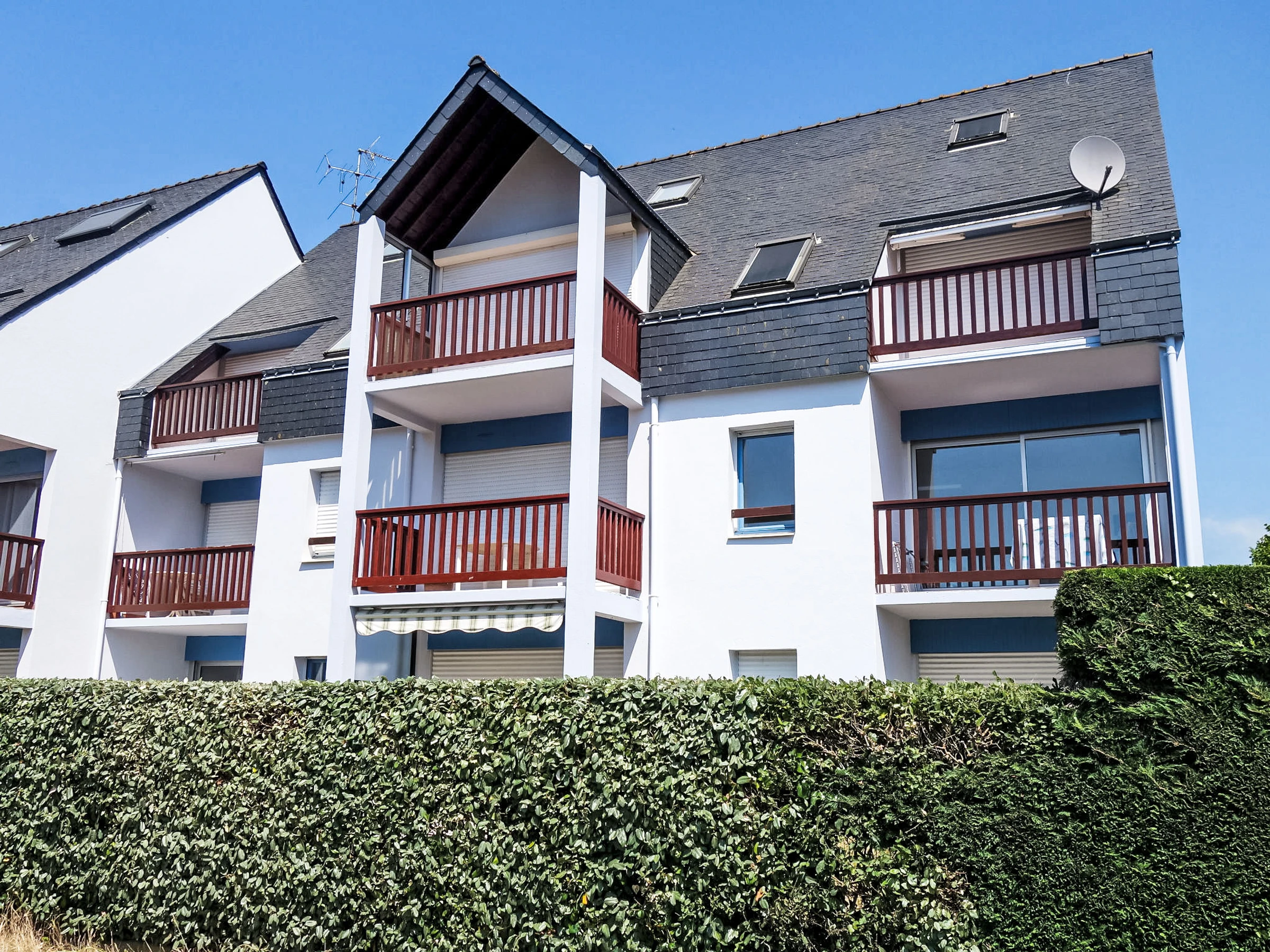 Petite résidence "Plein Ciel", de 2 étages. Situation centrale, tranquille, à 150 m de la mer, à 150 m de la plage. Infrastructures de la Maison: réduit pour bicyclettes. Magasins 2 km, supermarché 500 m, restaurant 2 km, café 2 km, plage de sable "Plage du men Du -Anse de Beaumer" 200 m, centre thermal "Thalassothérapie de Carnac" 3 km. Ecole de voile 3 km. Attractions à proximité: Vannes 35 km, Lorient 50 km, Thalassotherapie 3 km, Alignements de Carnac 4.5 km, Presqu'île de Quiberon 20 km, La Trinité 3 km.