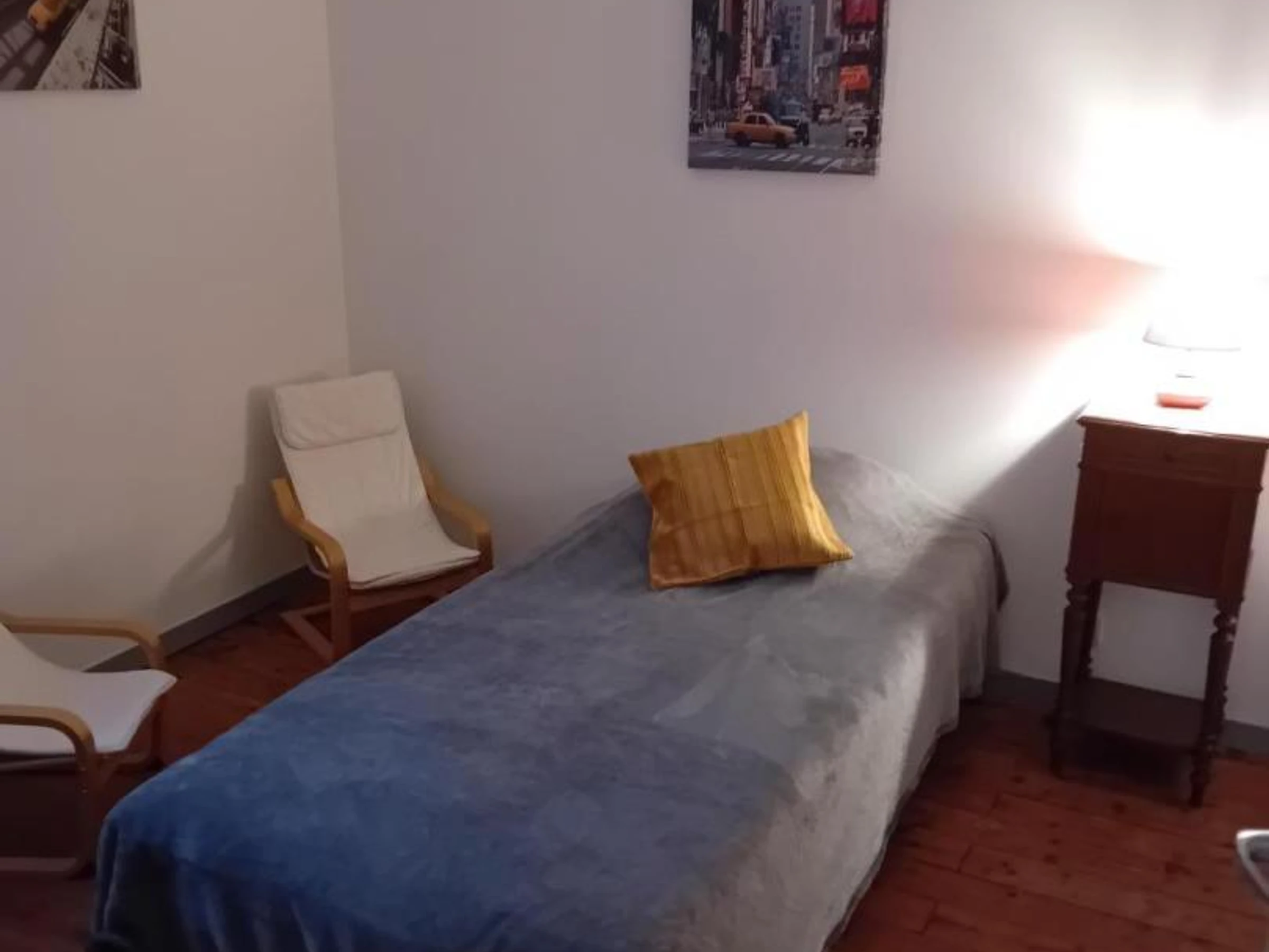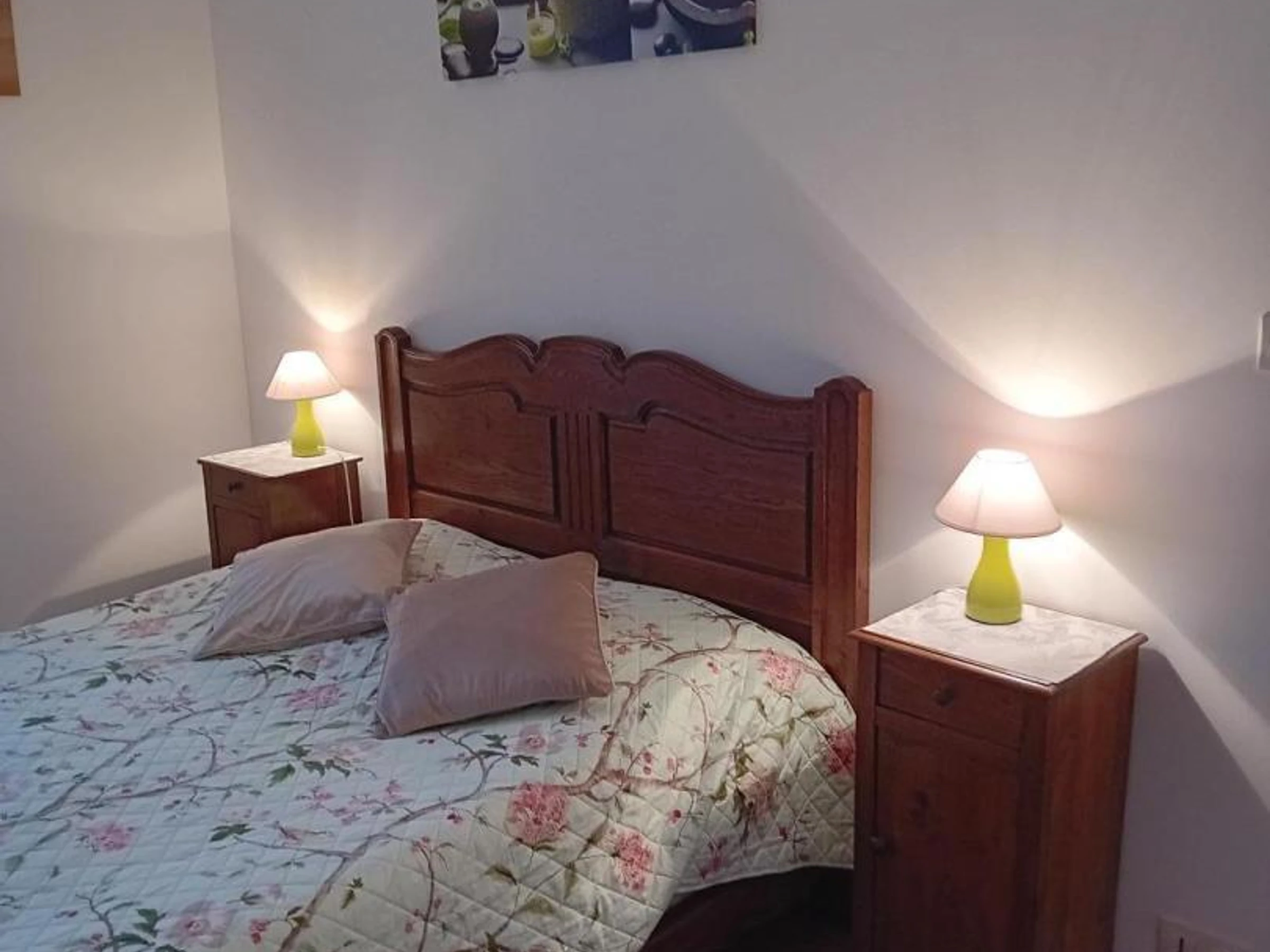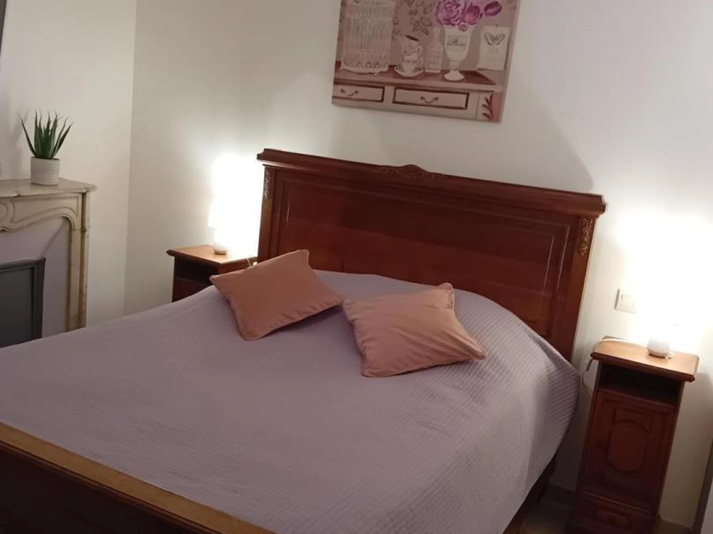 - Chambre avec lit 140x200 et porte-fenêtre donnant sur une terrasse privative (cour intérieure de 6m²)