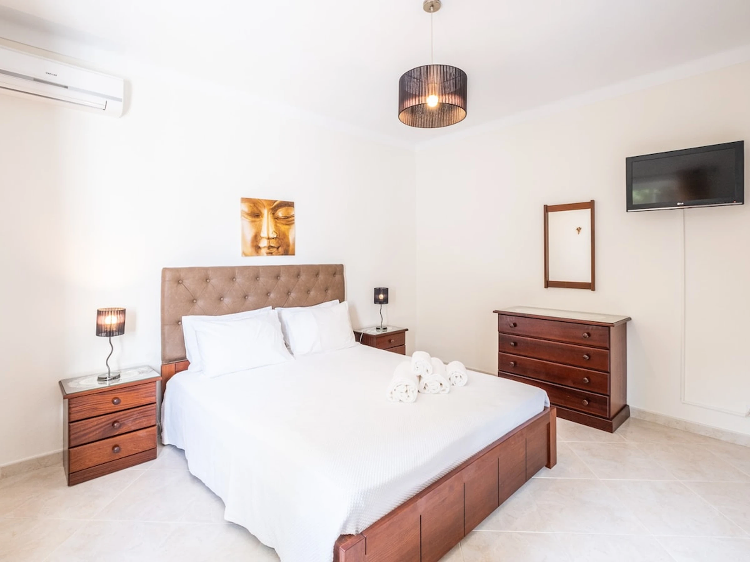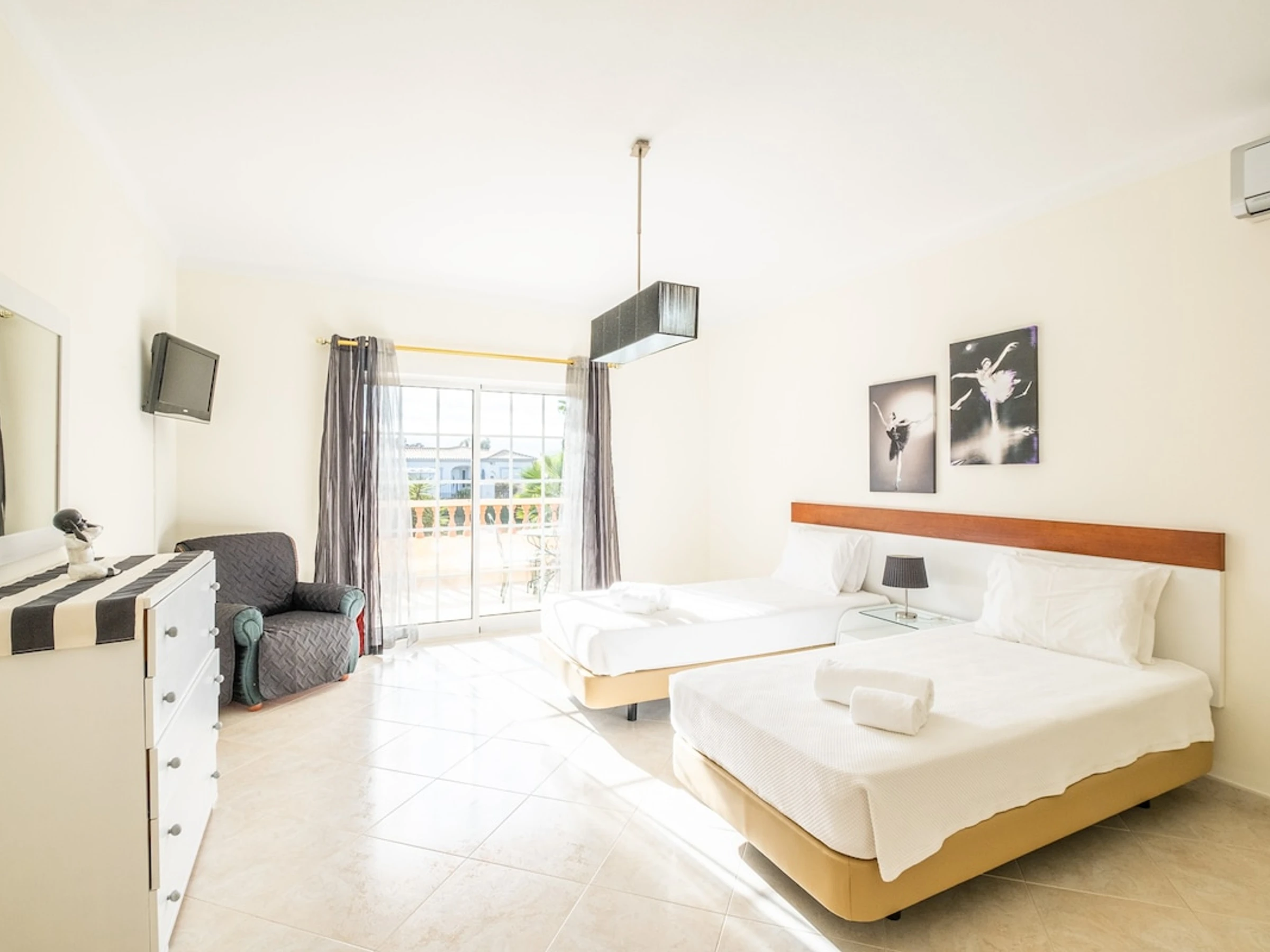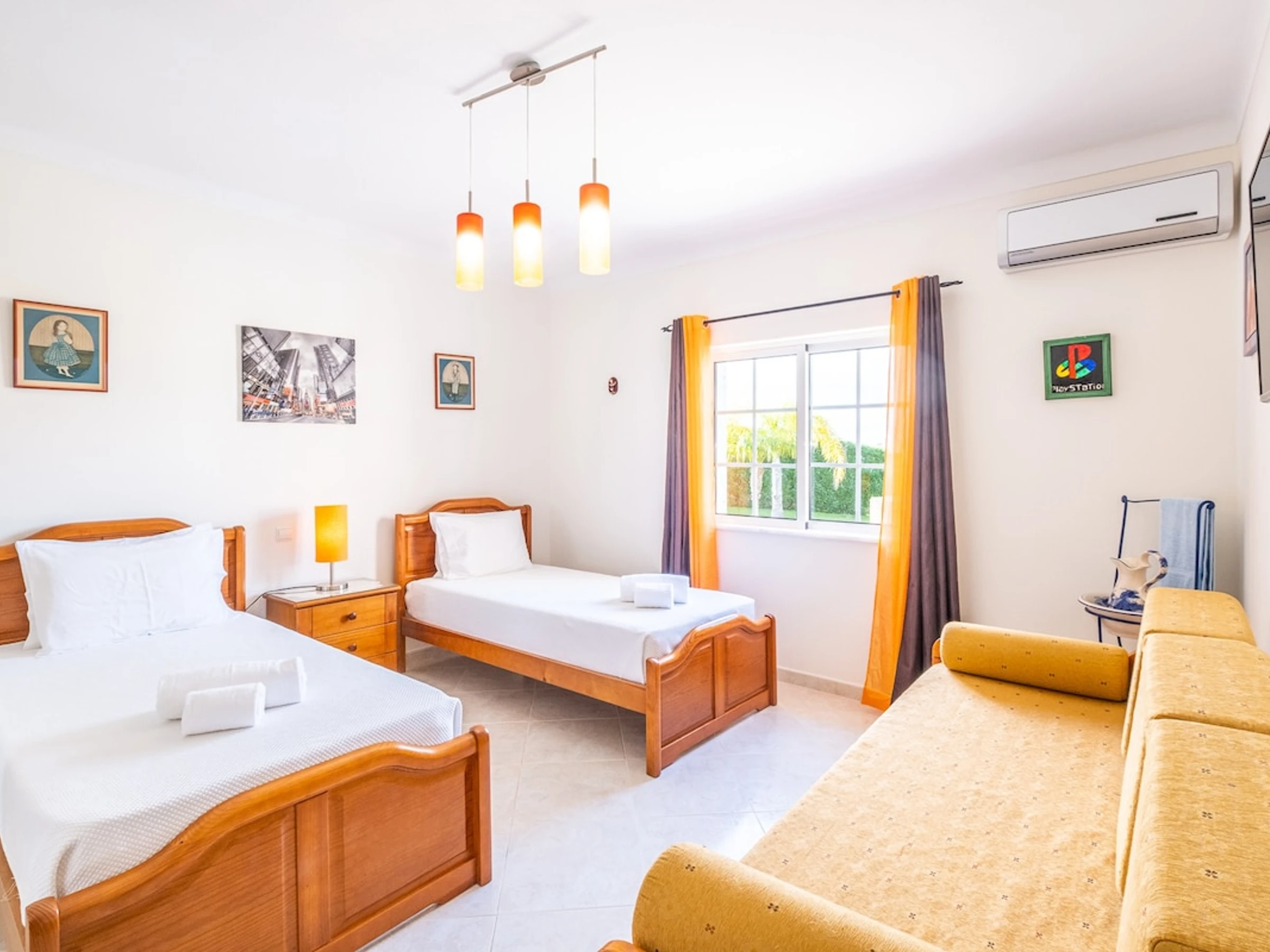 La spacieuse Villa Glória dispose de 4 chambres et de 3 salles de bains. Il y a 2 chambres avec un lit double et 2 autres avec des lits simples, deux lits dans chaque chambre. Le salon est très spacieux, avec une table à manger pour tout le monde, ainsi qu'un canapé. Il y a aussi une sortie à la piscine. Nous avons des chaises longues et aussi un parasol. L'espace barbecue est à côté de la piscine. La terrasse a une vue fantastique sur les montagnes de l'Algarve, Monchique. Il y a aussi un jardin très agréable. Toute la villa est clôturée et il y a un maximum d'intimité.
