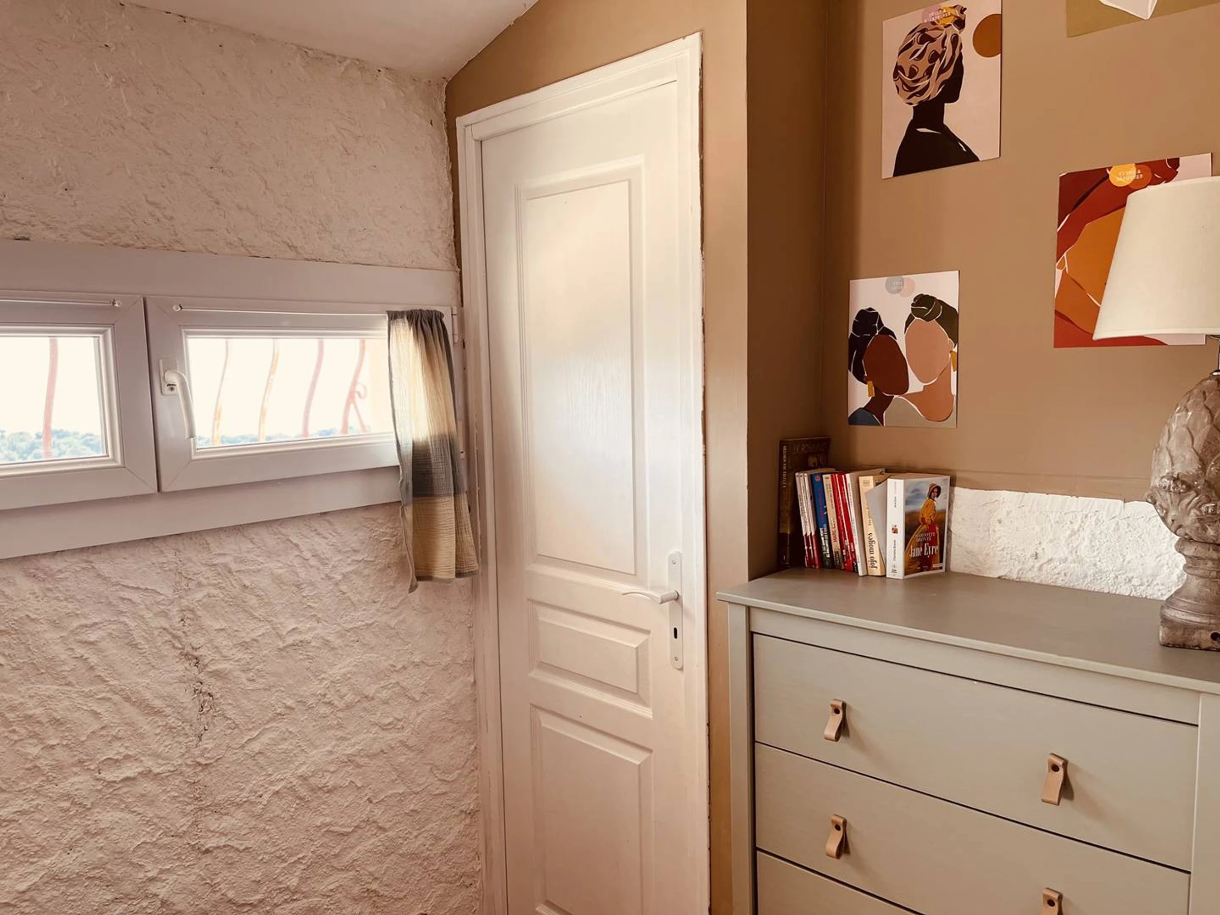 Au rez de chaussé vous trouverez une grande et belle pièce de vie très lumineuse avec cuisine ouverte, le tout avec un accès direct sur la terrasse et son espace extérieur. En descendant quelques marches on y retrouve deux chambres (lit en 140) et un espace salle d'eau.