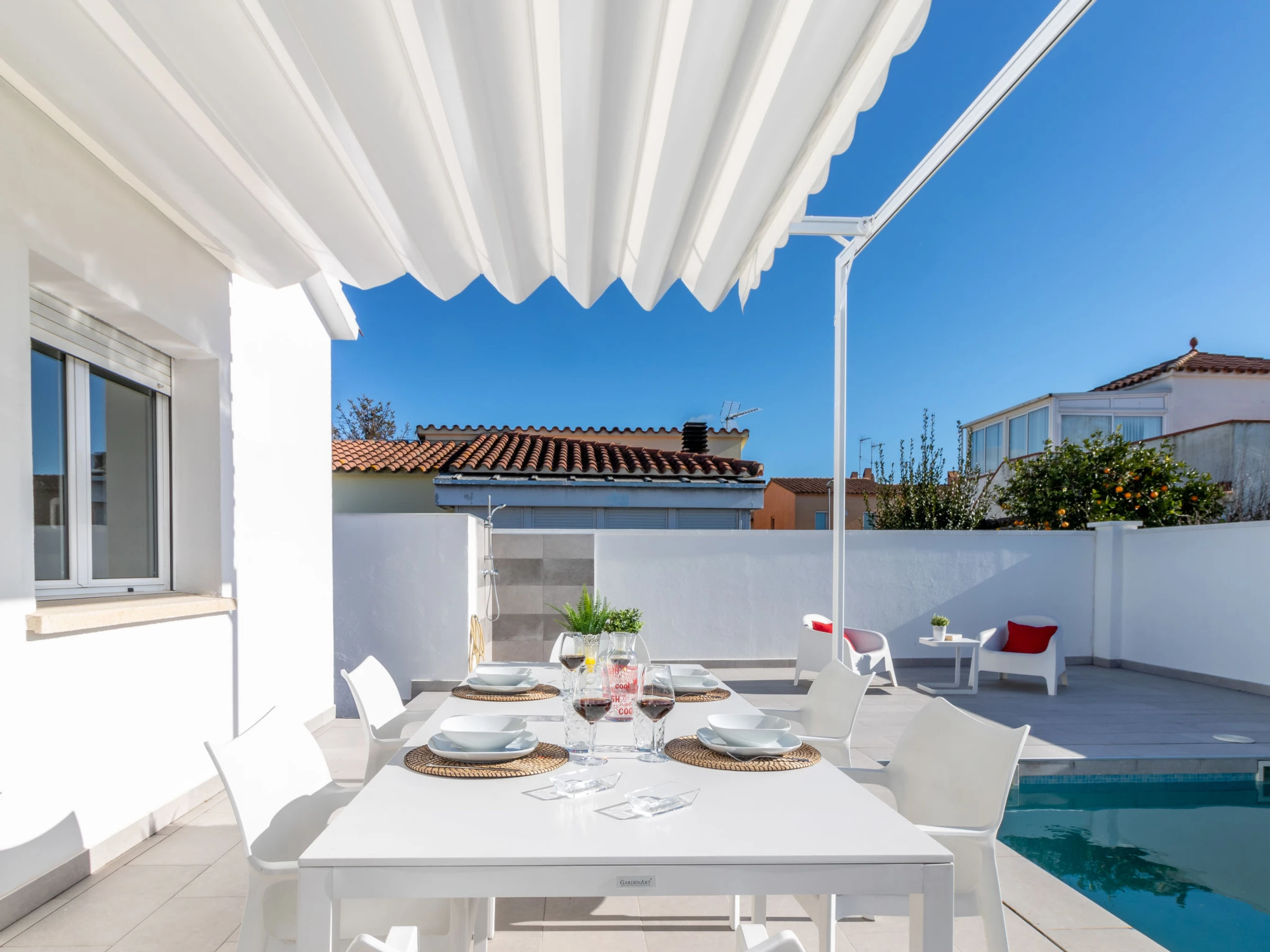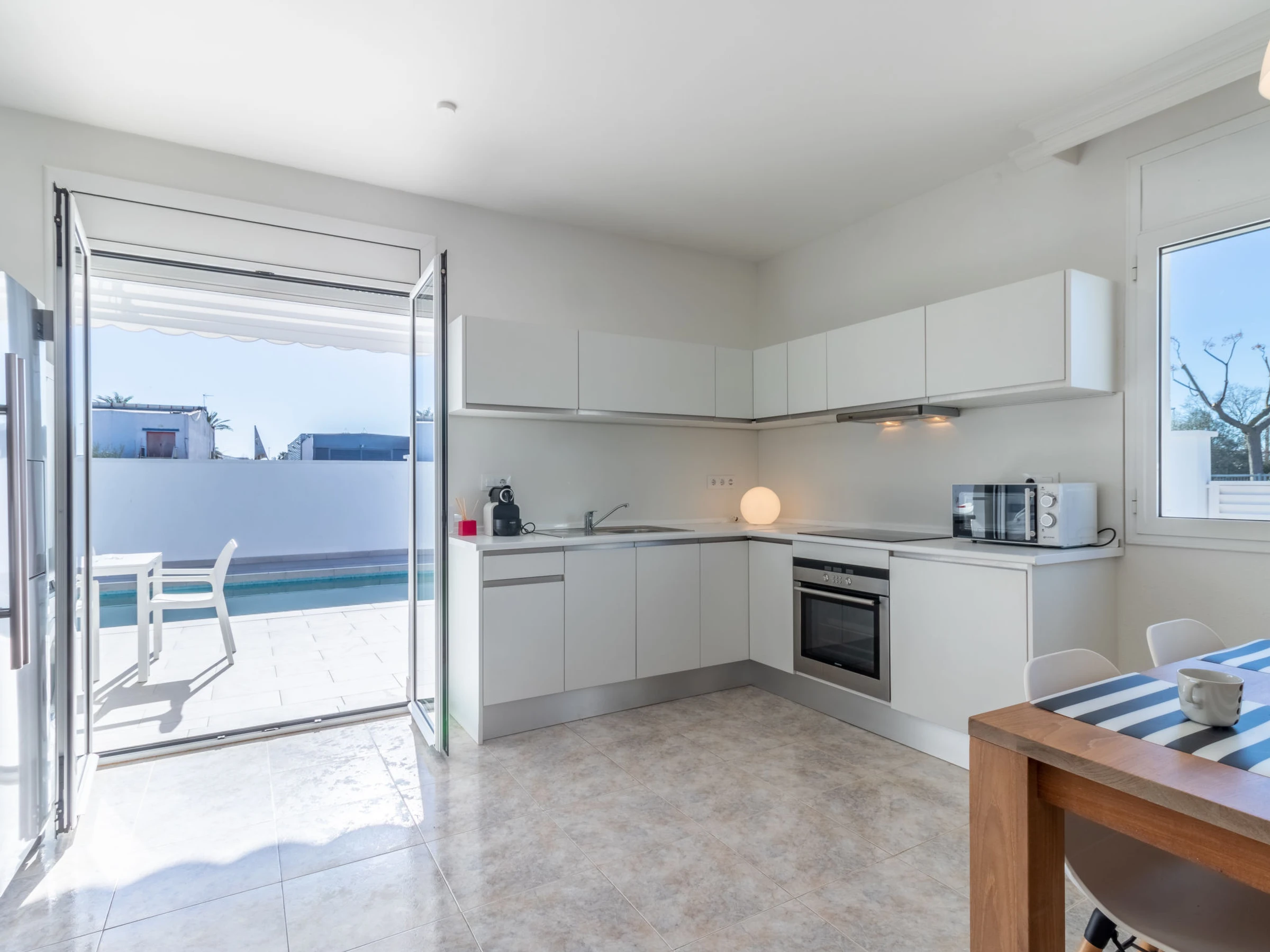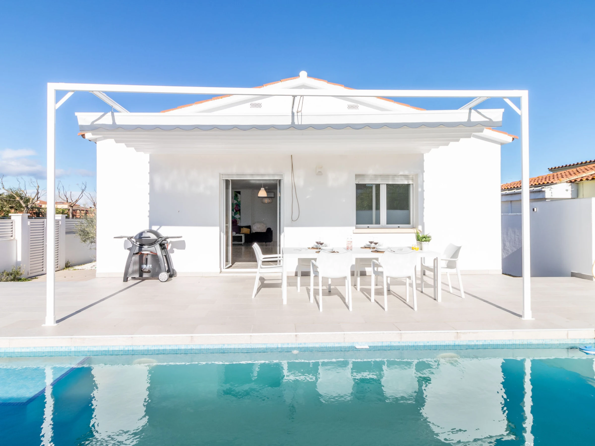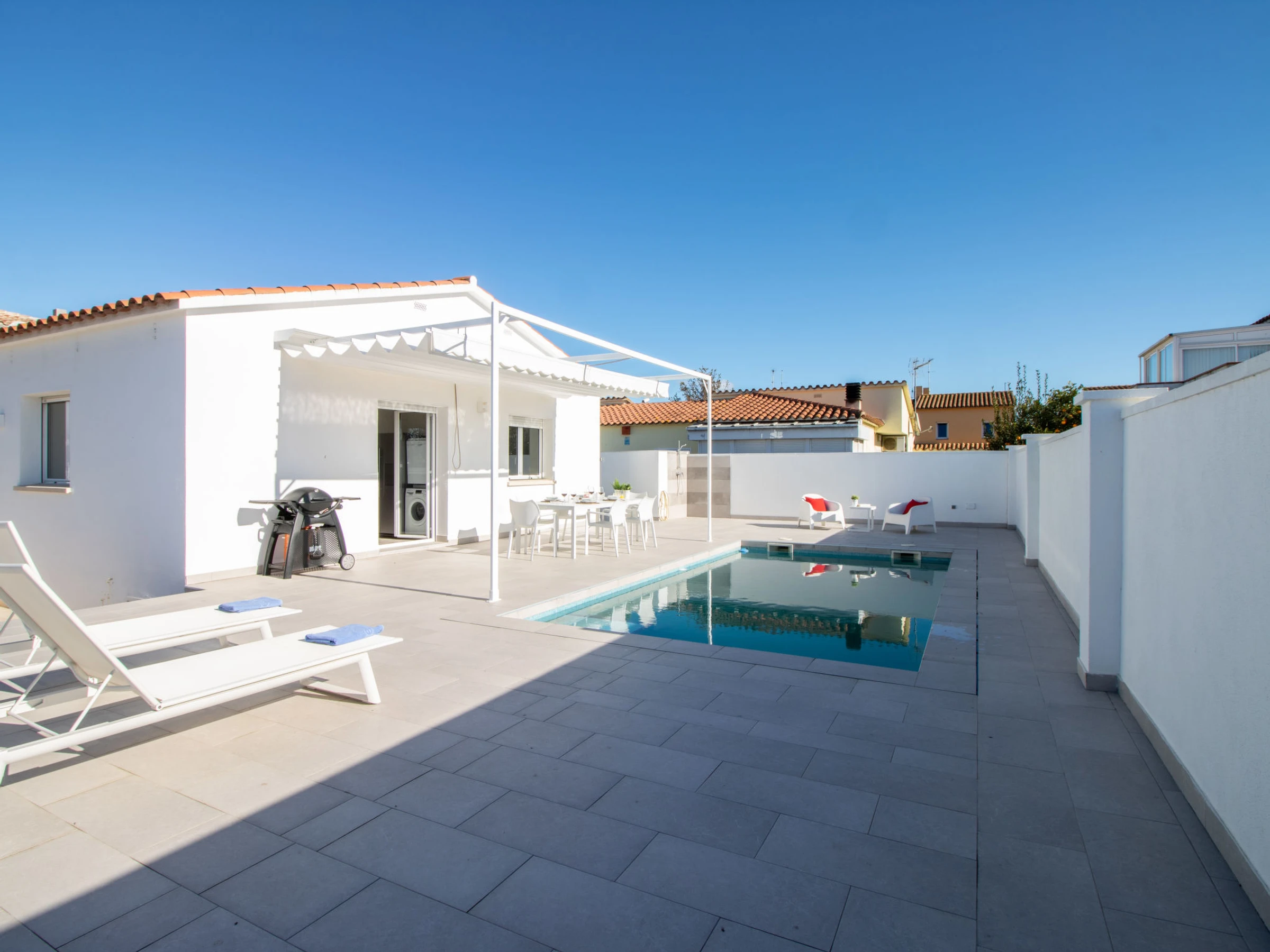 Masnou: Maison individuelle moderne, accueillante, individuelle "Blanca". Dans le quartier de Mas Nou, à 3 km du centre d'Empuriabrava, situation ensoleillée quartier résidentiel, à 4 km de la mer, à 1.3 km du lac, à 4 km de la plage, orientée sud. A usage privé: terrain (clôturé), piscine rectangulaire (8 x 4 m, disponibilité saisonnière: [hidden] - [hidden] Douche extérieure, terrasse, meubles de jardin. Infrastructures de la Maison: air-conditionné, lave-linge. Place de parking sur le terrain. Magasin d'alimentation, supermarché 400 m, restaurant 1 km, bar 1 km, boulangerie 1 km, arrêt de bus 500 m, gare ferroviaire "Figueres" 13 km, plage de sable "Empuriabrava" 4 km. Port plaisance 4 km, terrain de golf (18 trous) 12 km, ecole de surf 3 km, ecole de voile 3 km, tennis 50 m, golf miniature 2.7 km, centre sportif 3 km, chemins de randonnées pédestres depuis la maison 50 m, piste cyclable 100 m. Attractions à proximité: Centro de paracaidismo 1.8 km, Atracción túnel del viento Empuriabrava 1.8 km, Parque acuático Roses 5 km, Festival y castillo de Peralada 12 km, Museo Dalí Figueres 21 km, Monasterio de Sant Pere de Rodes 23 km. Veuillez noter: animation en saison. Groupes de jeunes sur demande seulement. La remise des clés a lieu à l’agence d'Empuriabrava.