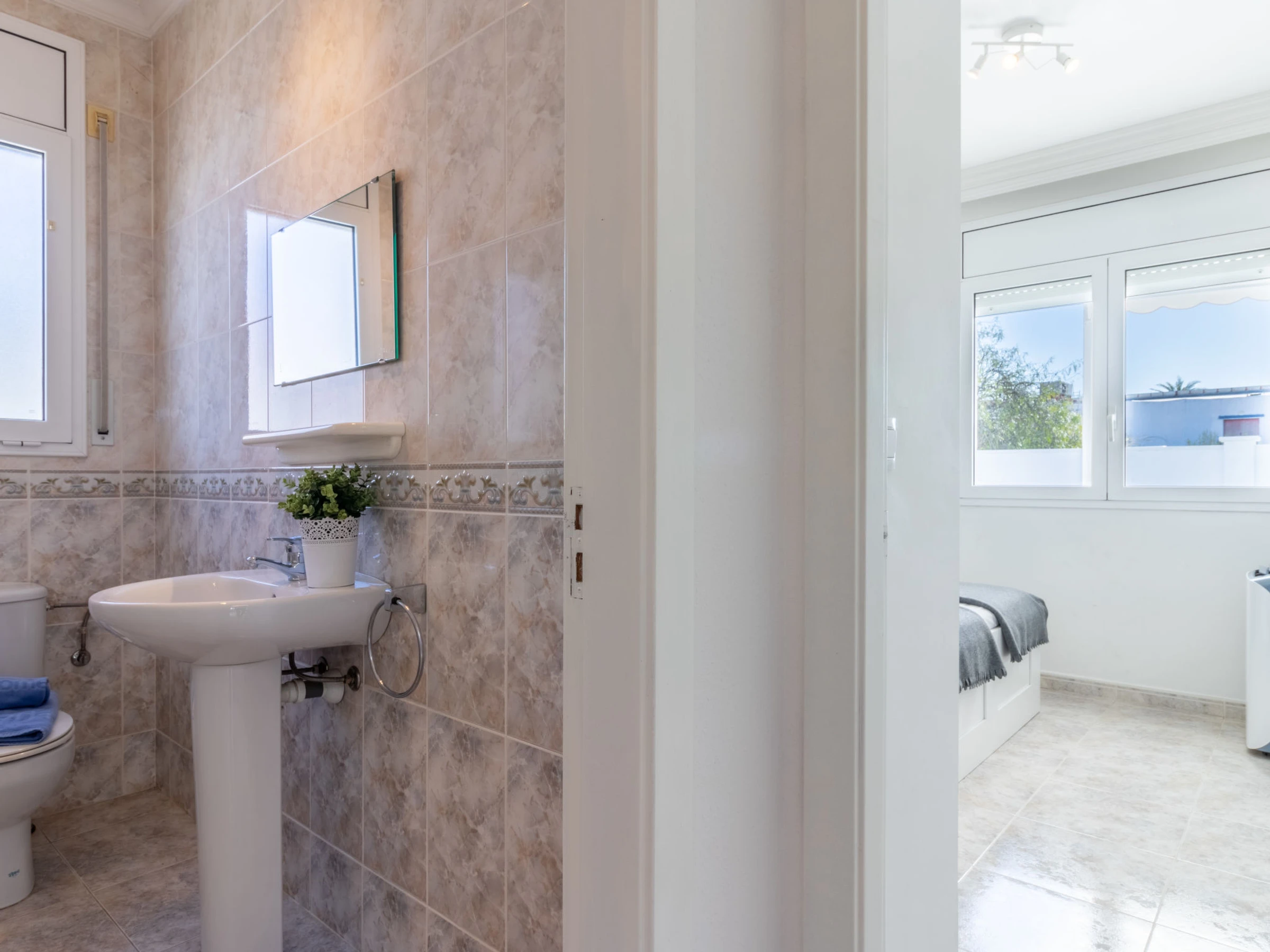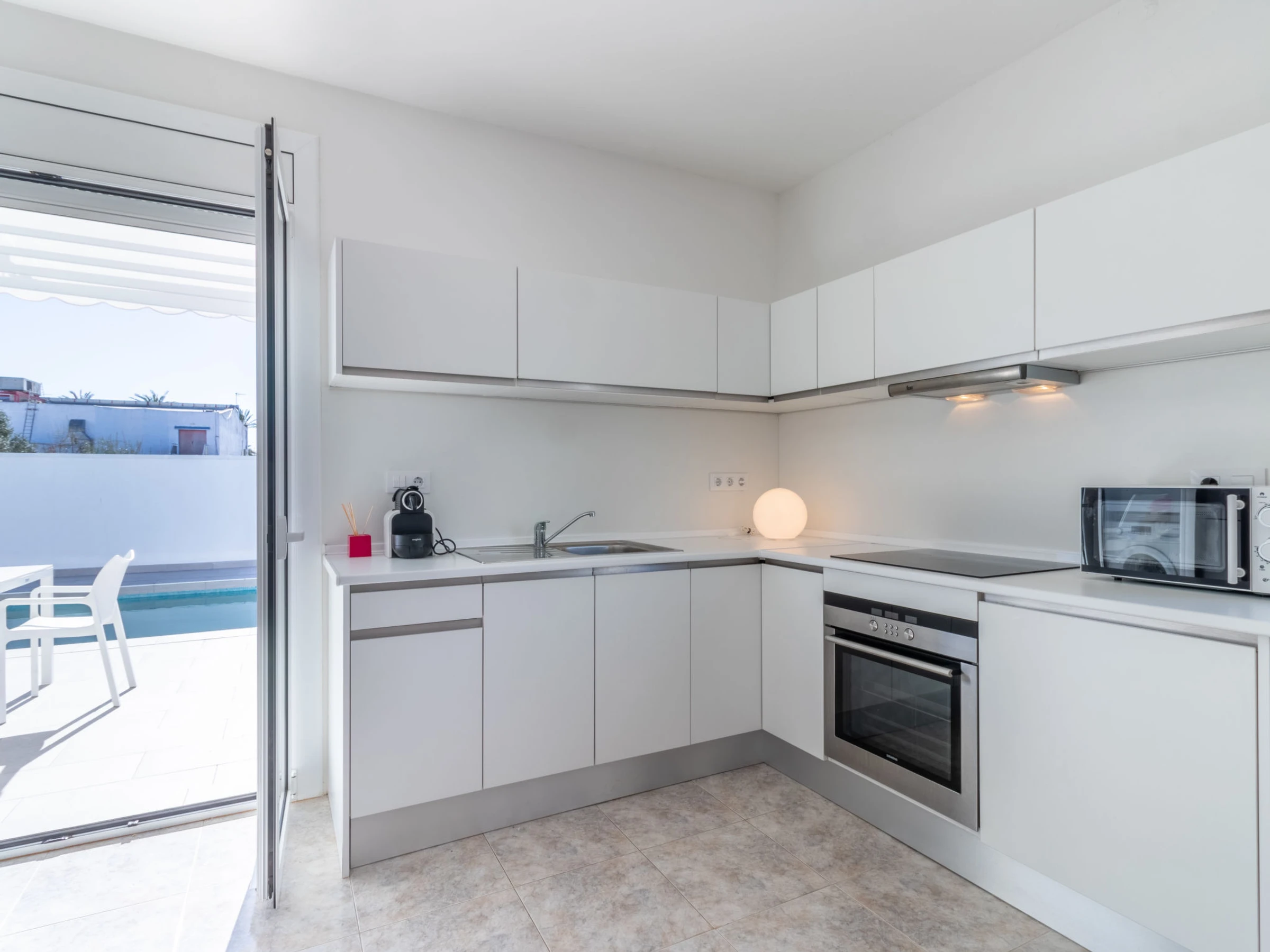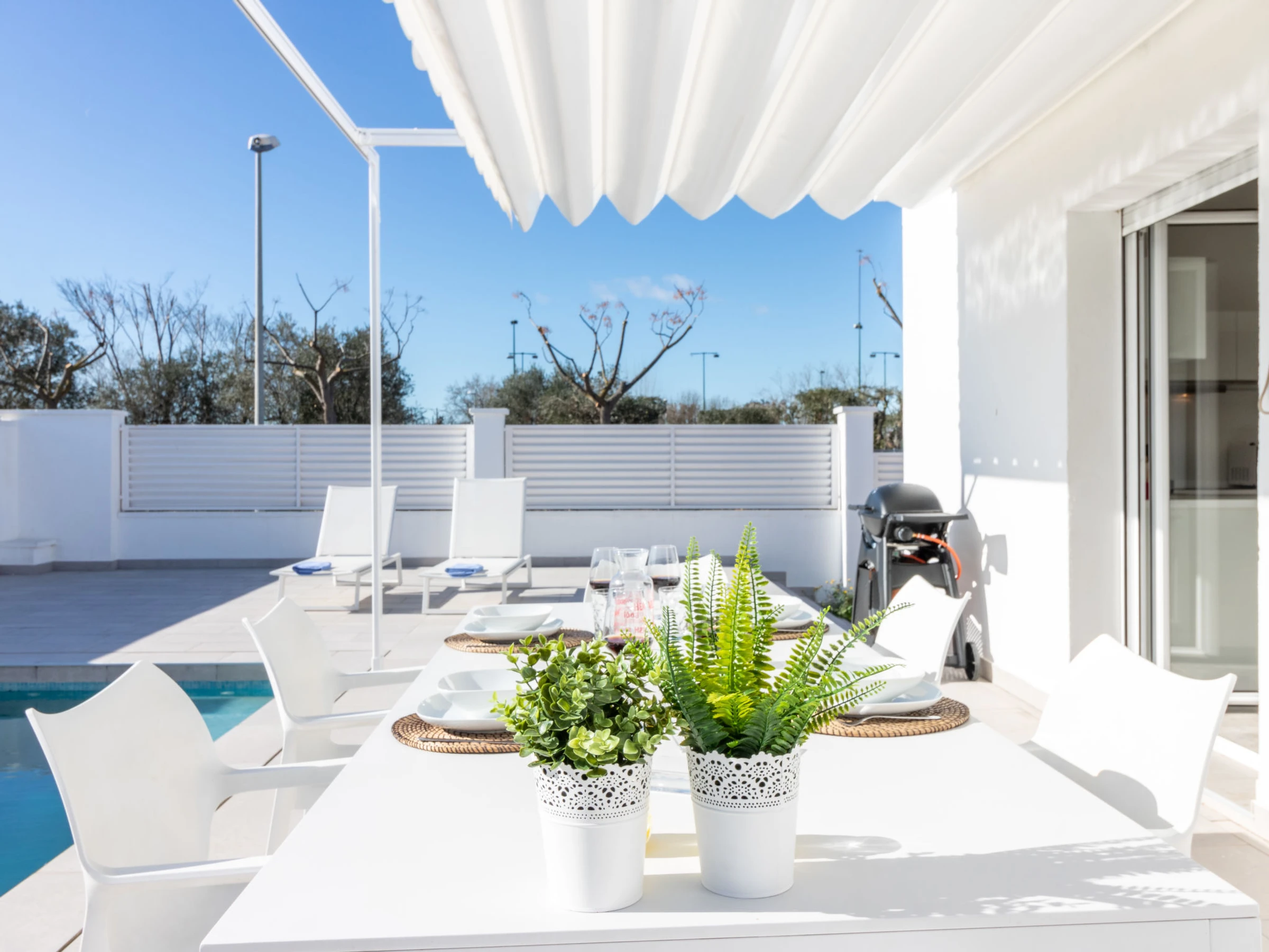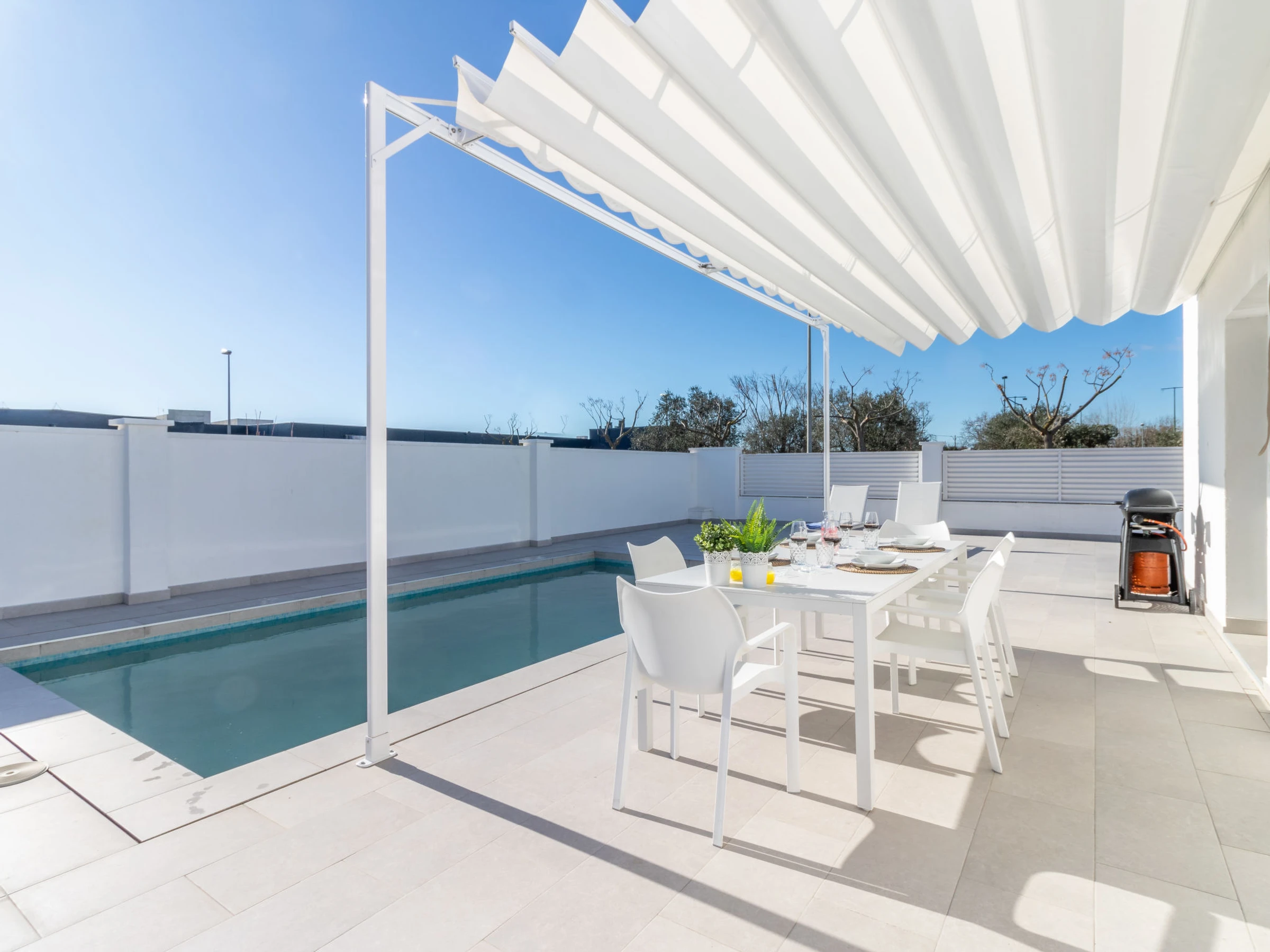 Masnou: Maison individuelle moderne, accueillante, individuelle "Blanca". Dans le quartier de Mas Nou, à 3 km du centre d'Empuriabrava, situation ensoleillée quartier résidentiel, à 4 km de la mer, à 1.3 km du lac, à 4 km de la plage, orientée sud. A usage privé: terrain (clôturé), piscine rectangulaire (8 x 4 m, disponibilité saisonnière: [hidden] - [hidden] Douche extérieure, terrasse, meubles de jardin. Infrastructures de la Maison: air-conditionné, lave-linge. Place de parking sur le terrain. Magasin d'alimentation, supermarché 400 m, restaurant 1 km, bar 1 km, boulangerie 1 km, arrêt de bus 500 m, gare ferroviaire "Figueres" 13 km, plage de sable "Empuriabrava" 4 km. Port plaisance 4 km, terrain de golf (18 trous) 12 km, ecole de surf 3 km, ecole de voile 3 km, tennis 50 m, golf miniature 2.7 km, centre sportif 3 km, chemins de randonnées pédestres depuis la maison 50 m, piste cyclable 100 m. Attractions à proximité: Centro de paracaidismo 1.8 km, Atracción túnel del viento Empuriabrava 1.8 km, Parque acuático Roses 5 km, Festival y castillo de Peralada 12 km, Museo Dalí Figueres 21 km, Monasterio de Sant Pere de Rodes 23 km. Veuillez noter: animation en saison. Groupes de jeunes sur demande seulement. La remise des clés a lieu à l’agence d'Empuriabrava.
