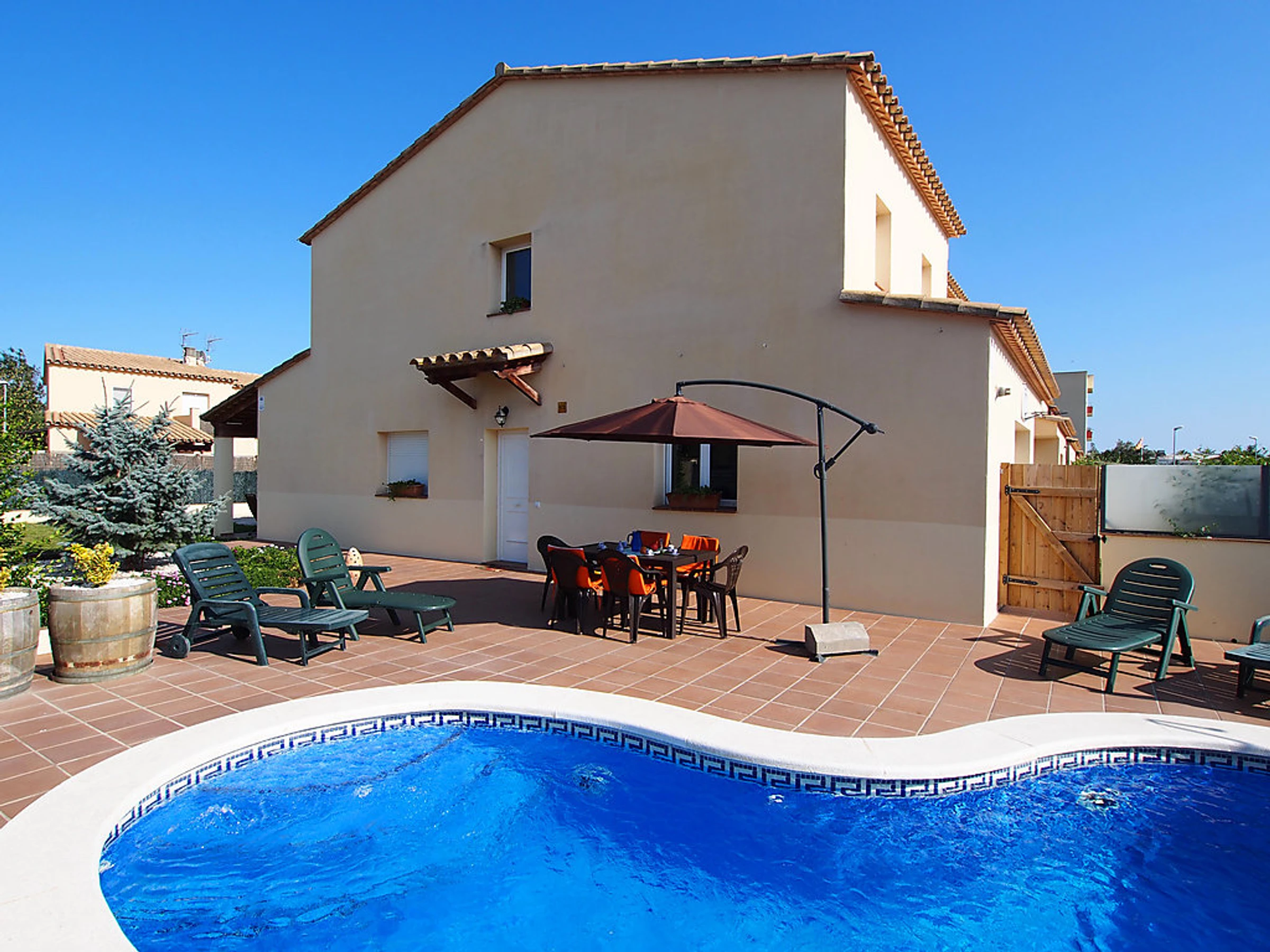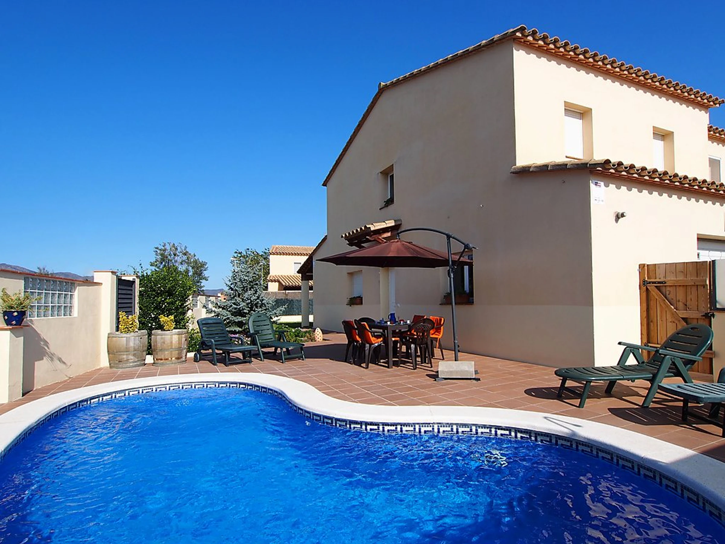 Maison jumelée confortable "Mas Nou", de 2 étages. Dans le quartier de Mas Nou, à 3 km du centre d'Empuriabrava, situation tranquille, ensoleillée quartier résidentiel, zone avec peu de trafic, à 4 km de la mer, à 1.3 km du lac, à 4 km de la plage, dans une impasse. A usage privé: terrain 400 m2 (clôturé), piscine en forme de rein (6 x 2 m, 01.06.-30.09.). Terrasse, meubles de jardin, barbecue. Infrastructures de la Maison: Connexion WIFI, lave-linge. Place de parking. Magasin d'alimentation, supermarché 400 m, restaurant 1 km, bar 1 km, boulangerie 1 km, arrêt du bus 500 m, gare ferroviaire "Figueres" 13 km, plage de sable "Empuriabrava" 4 km. Port de plaisance 4 km, terrain de golf 12 km, golf miniature 2.7 km. Attractions à proximité: Centro de paracaidismo 1.8 km, Atracción túnel del viento Empuriabrava 1.8 km, Parque acuático Roses 5 km, Festival y castillo de Peralada 12 km, Museo Dalí Figueres 21 km, Monasterio de Sant Pere de Rodes 23 km.