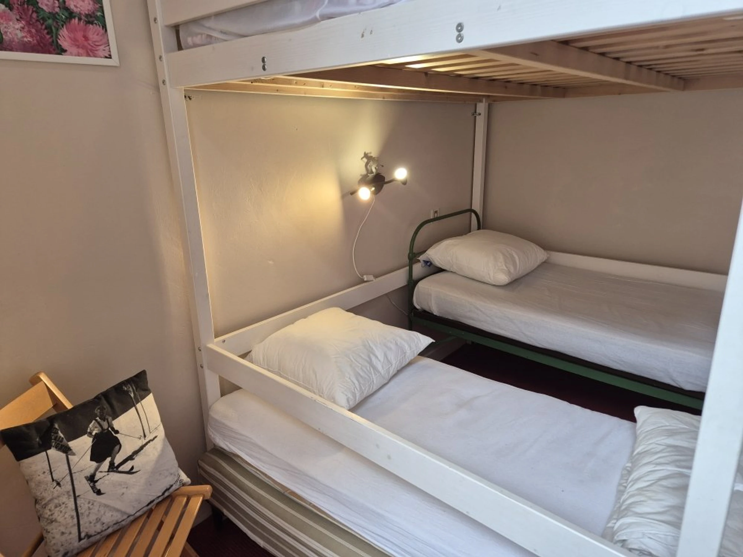 Appartement de 6 personnes, une cuisine indépendante entièrement équipée, une pièce principale salon/séjour avec TV exposée ouest, avec un canapé convertible en plus. Une chambre avec lit 140 + une deuxième avec lit 140 mezzanine et deux lits 90. Une salle de bain avec double vasque + WC séparés + lave linge.