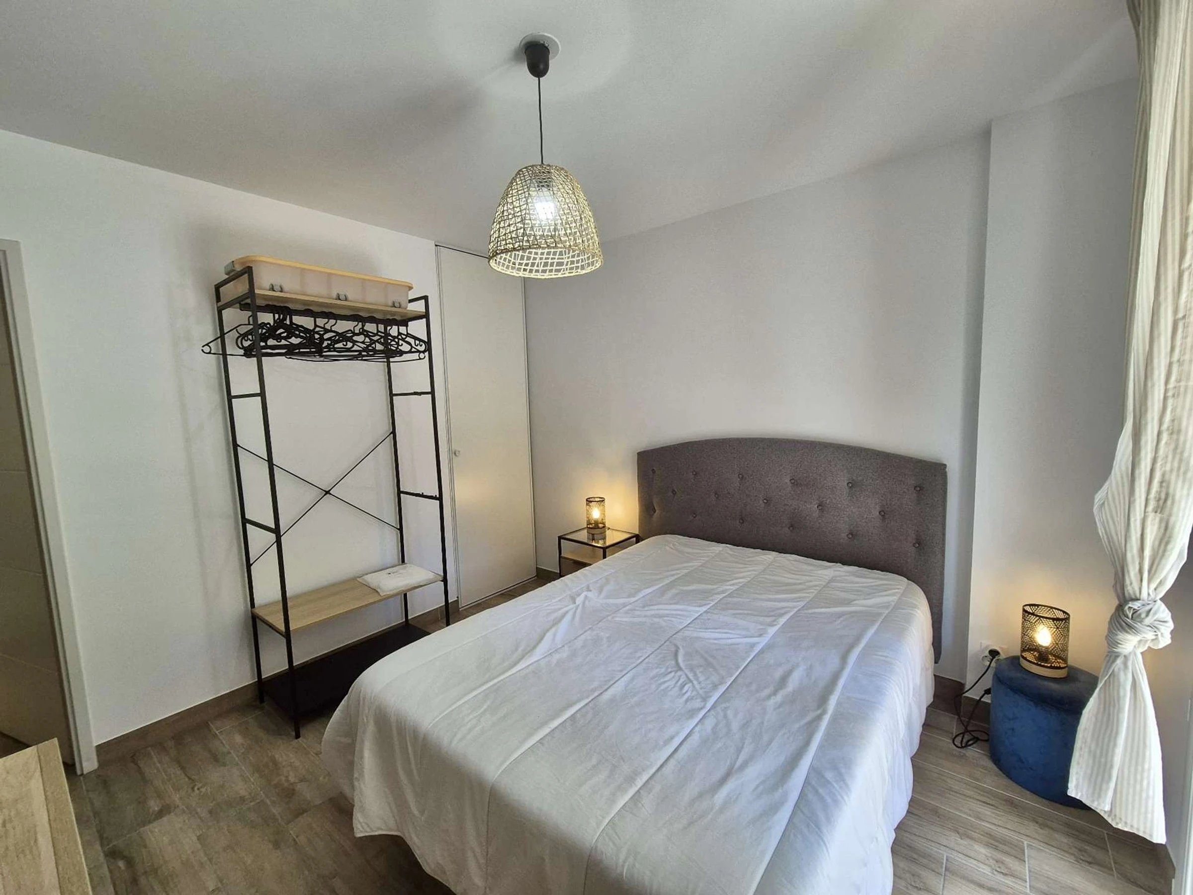 Cet appartement climatisé est composé d'une pièce de vie, salon et salle à manger, d'une cuisine avec une canapé de type de rapido de 2 places, une chambre avec un lit double en 140 cm, une salle d'eau et wc séparés, balcon avec mobilier table et chaises.