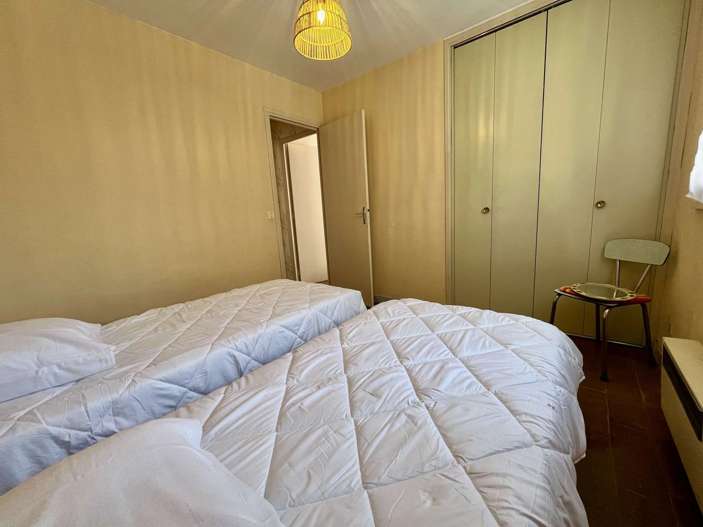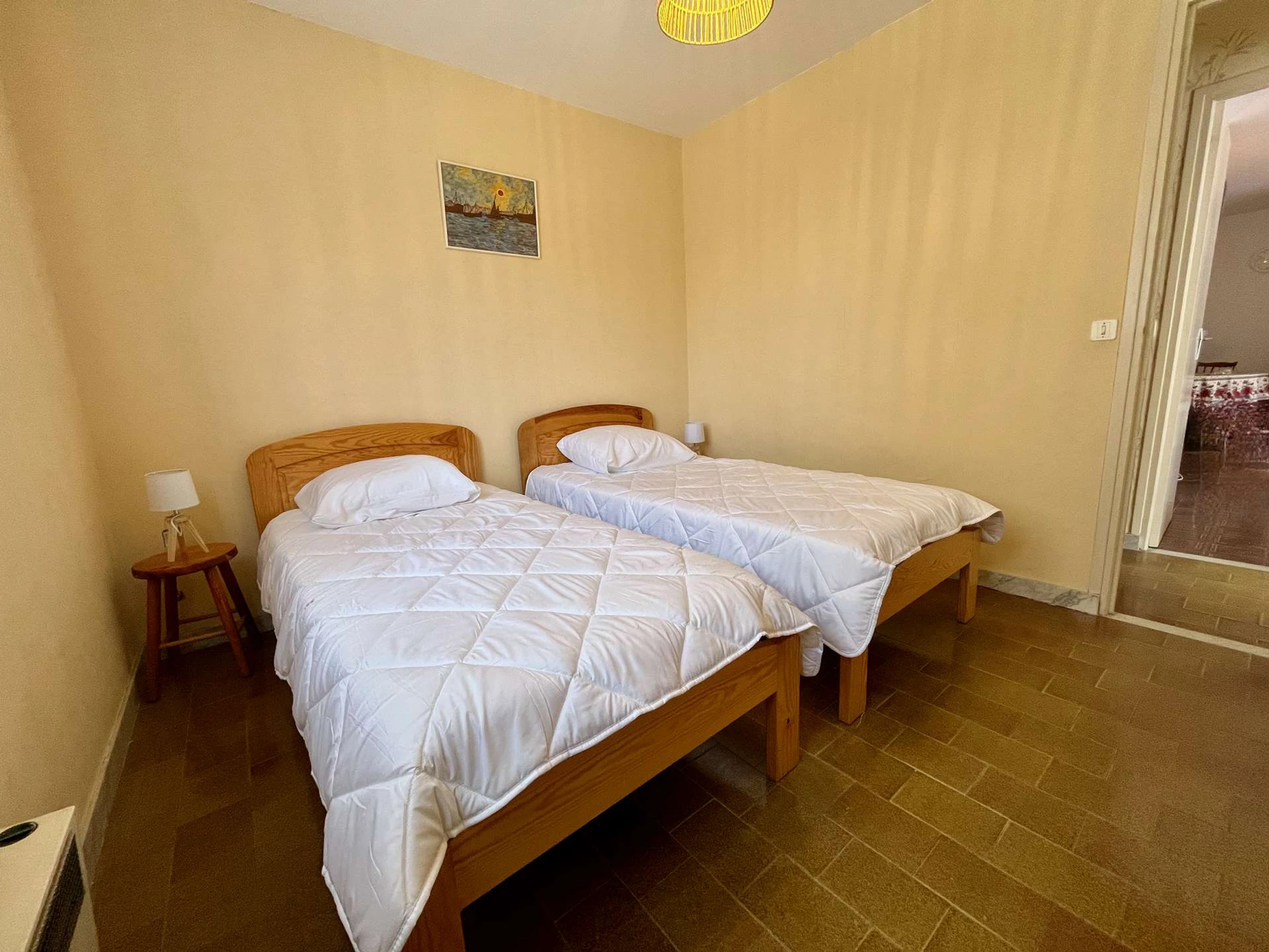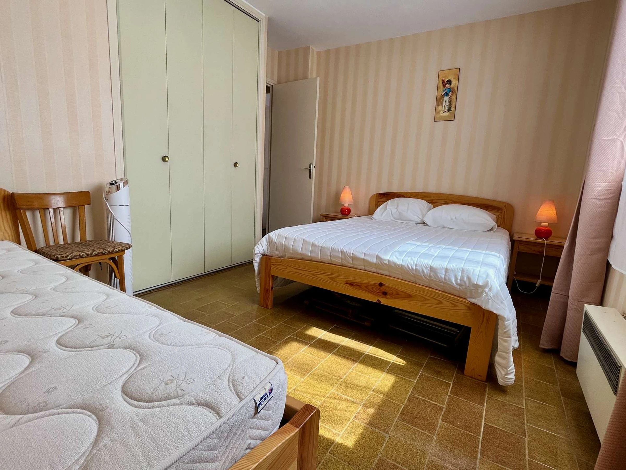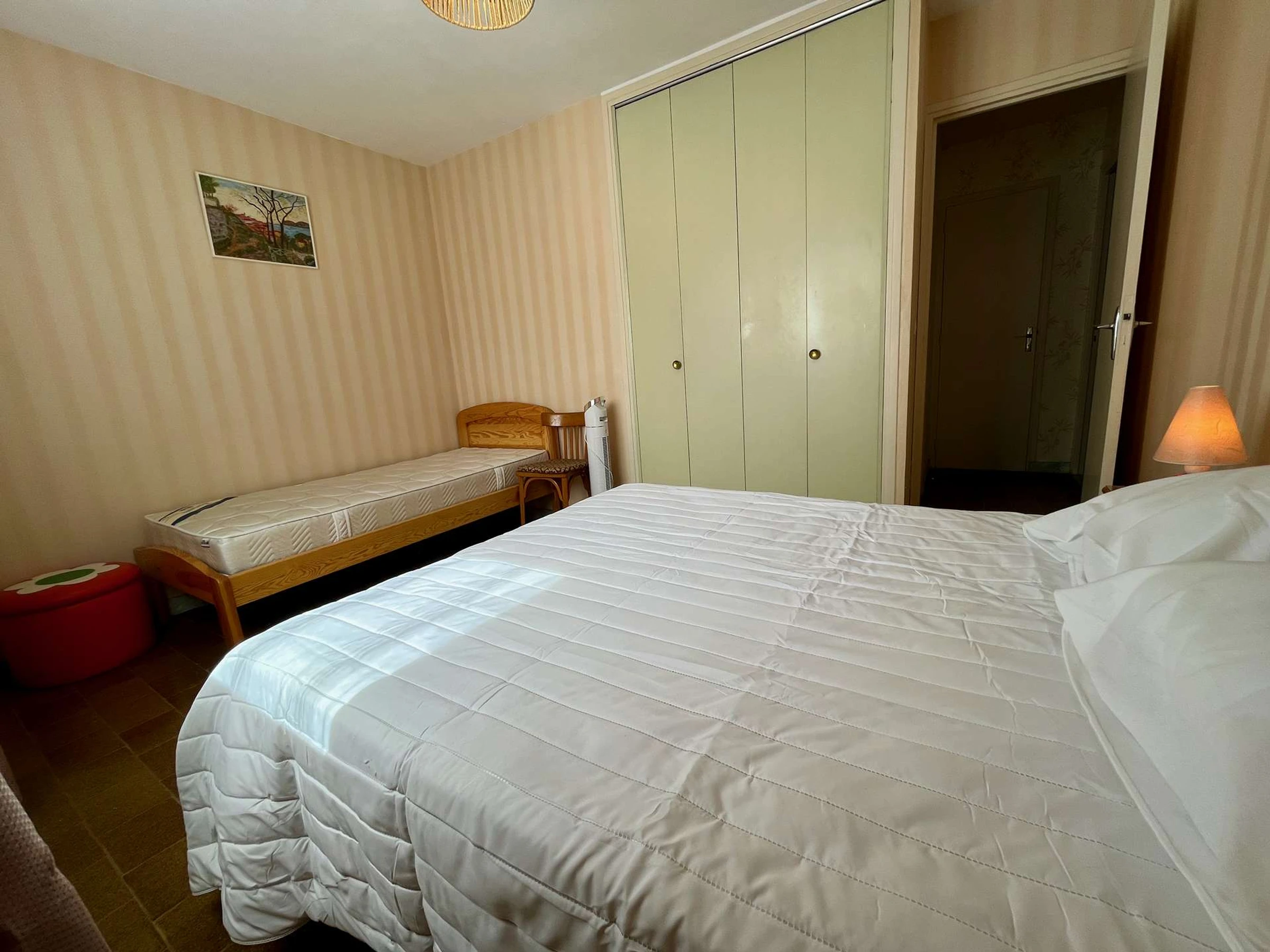 Ce logement à la mer est composé d'un vaste séjour donnant sur une grande terrasse, d'une cuisine équipée, d'une chambre avec un lit double et un lit simple, d'une deuxième chambre avec deux lits simples. Salle de bain et wc séparés. Une place de parking privée,