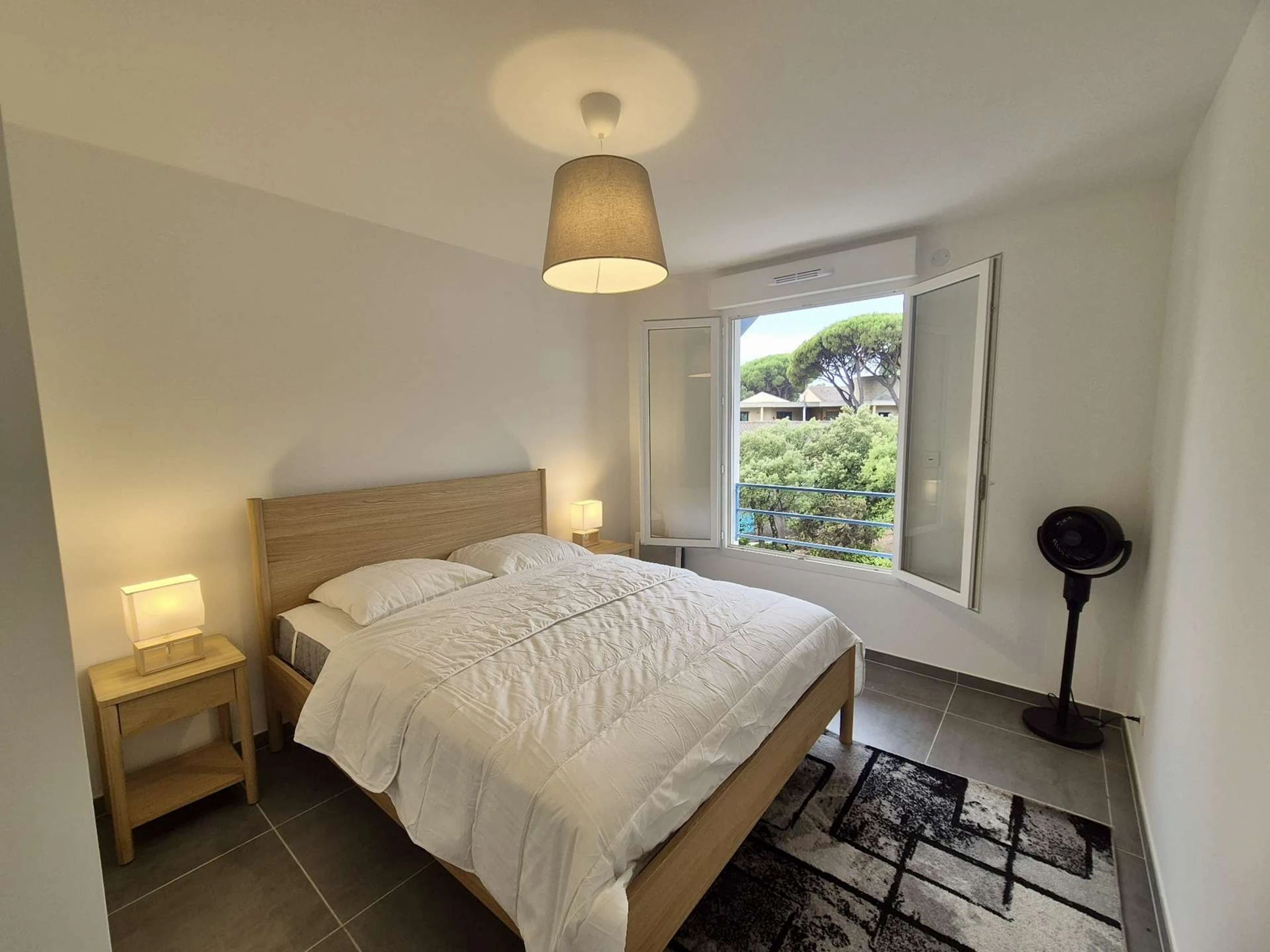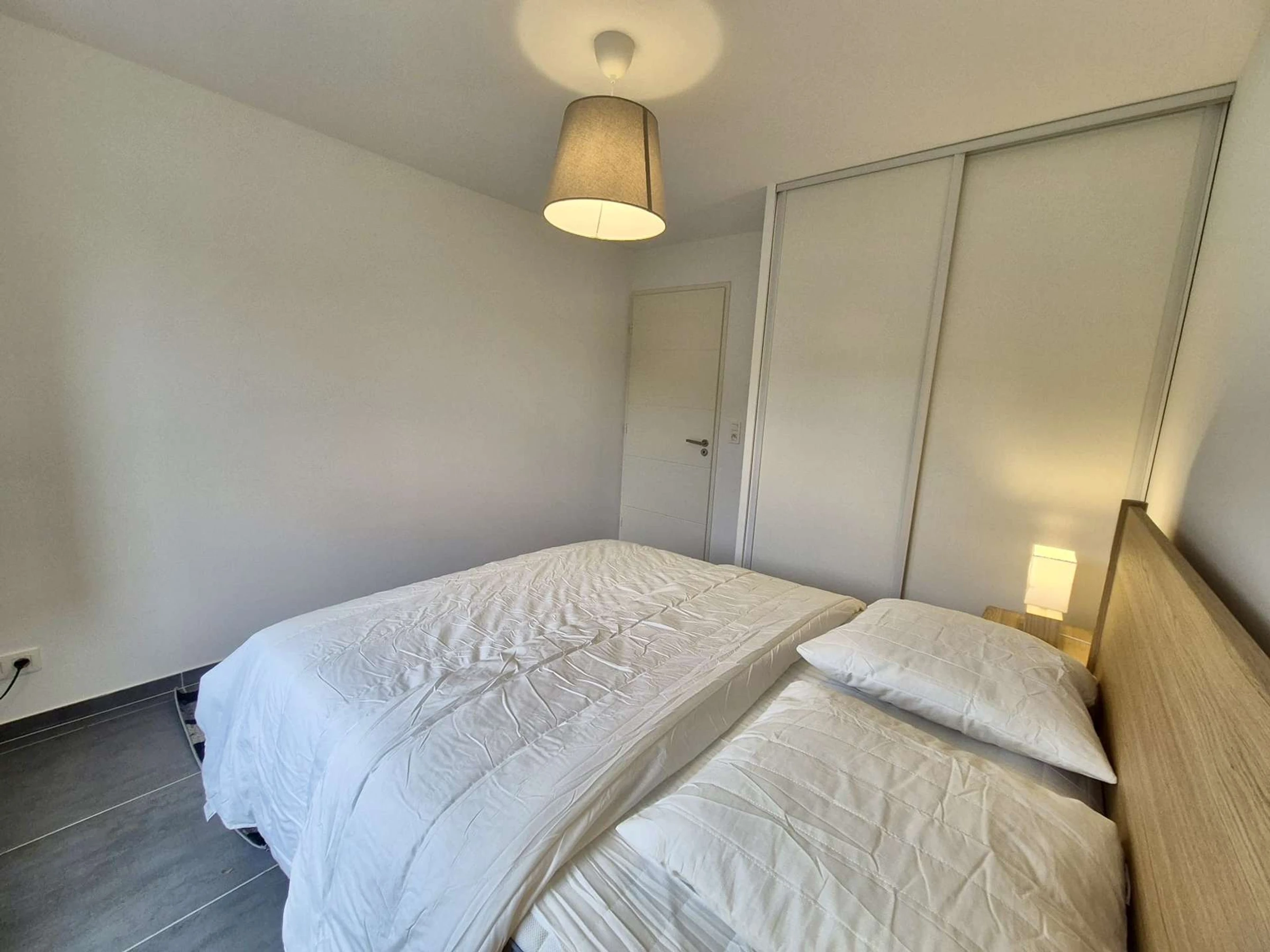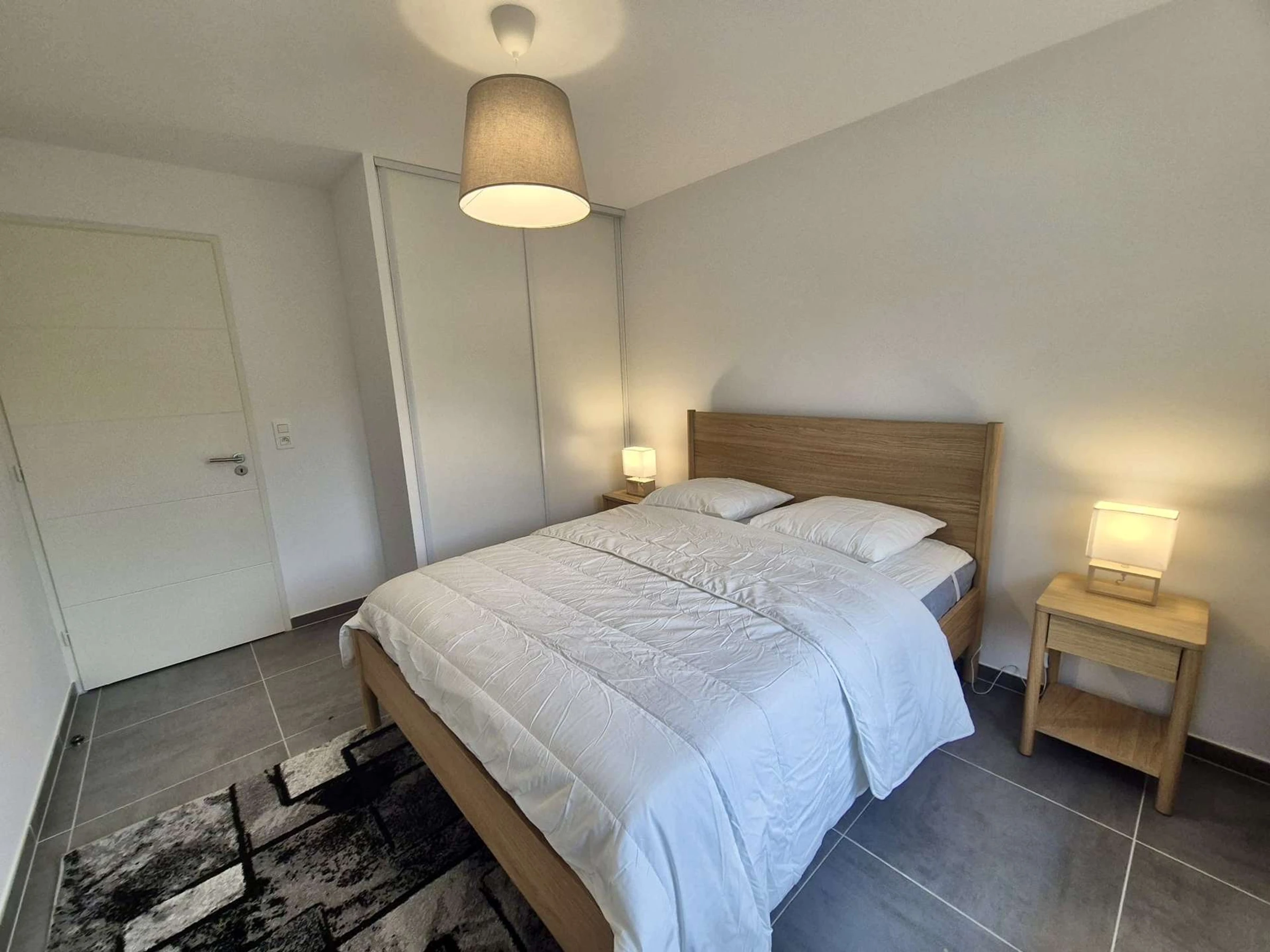 Dans une résidence neuve de standing avec piscine, joli appartement comprenant un séjour avec cuisine aménagée et fonctionnelle, une chambre avec lit deux places en 160 cm, une seconde chambre avec un lit en 140 cm, une salle de bains avec lave-linge et wc séparé. Nombreux rangements disponible.