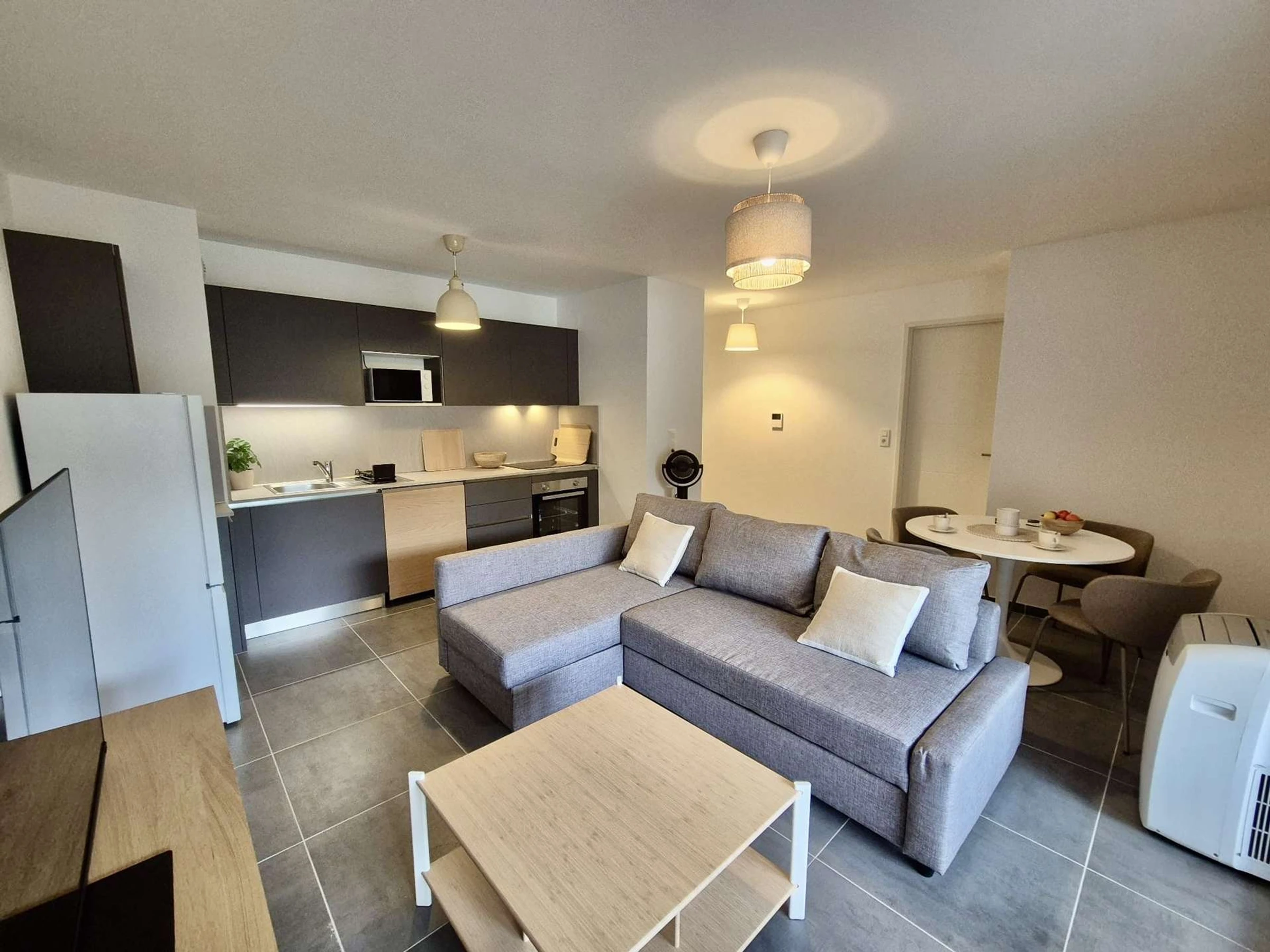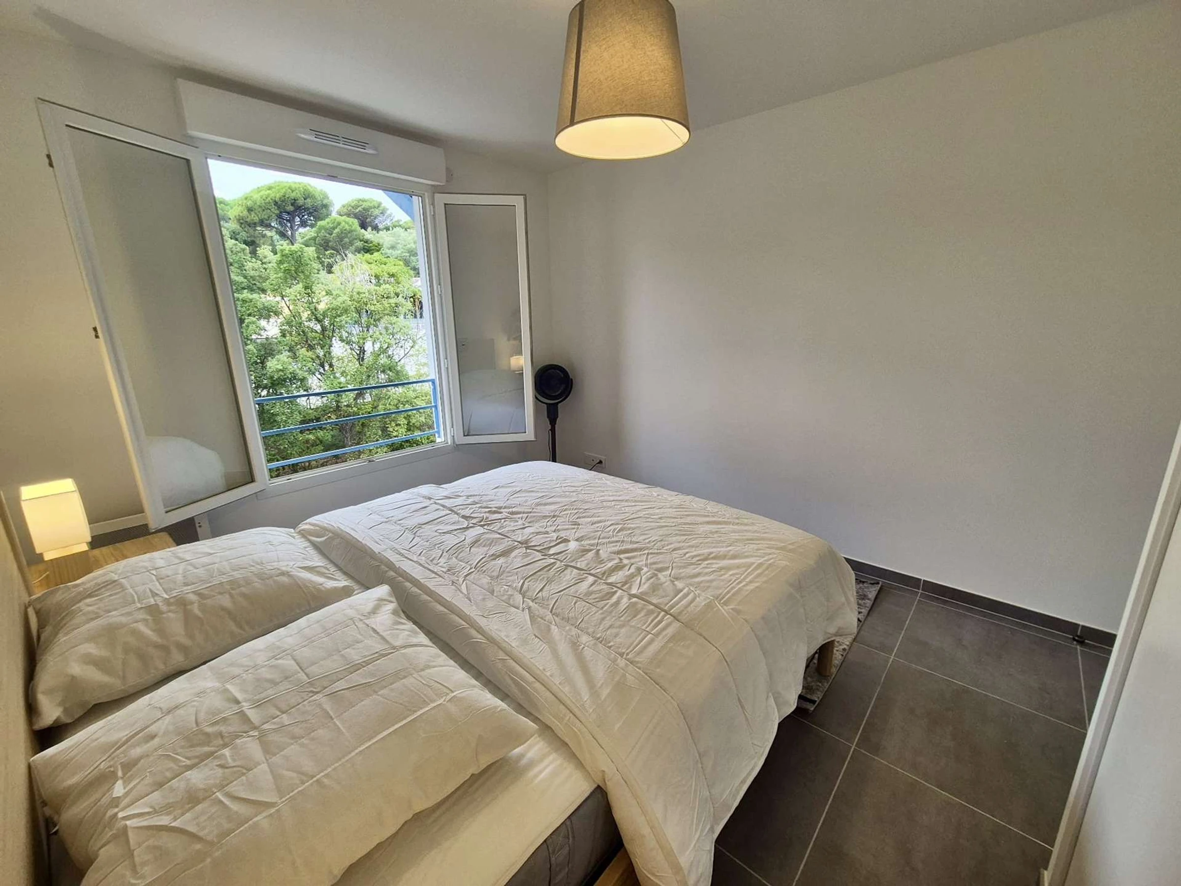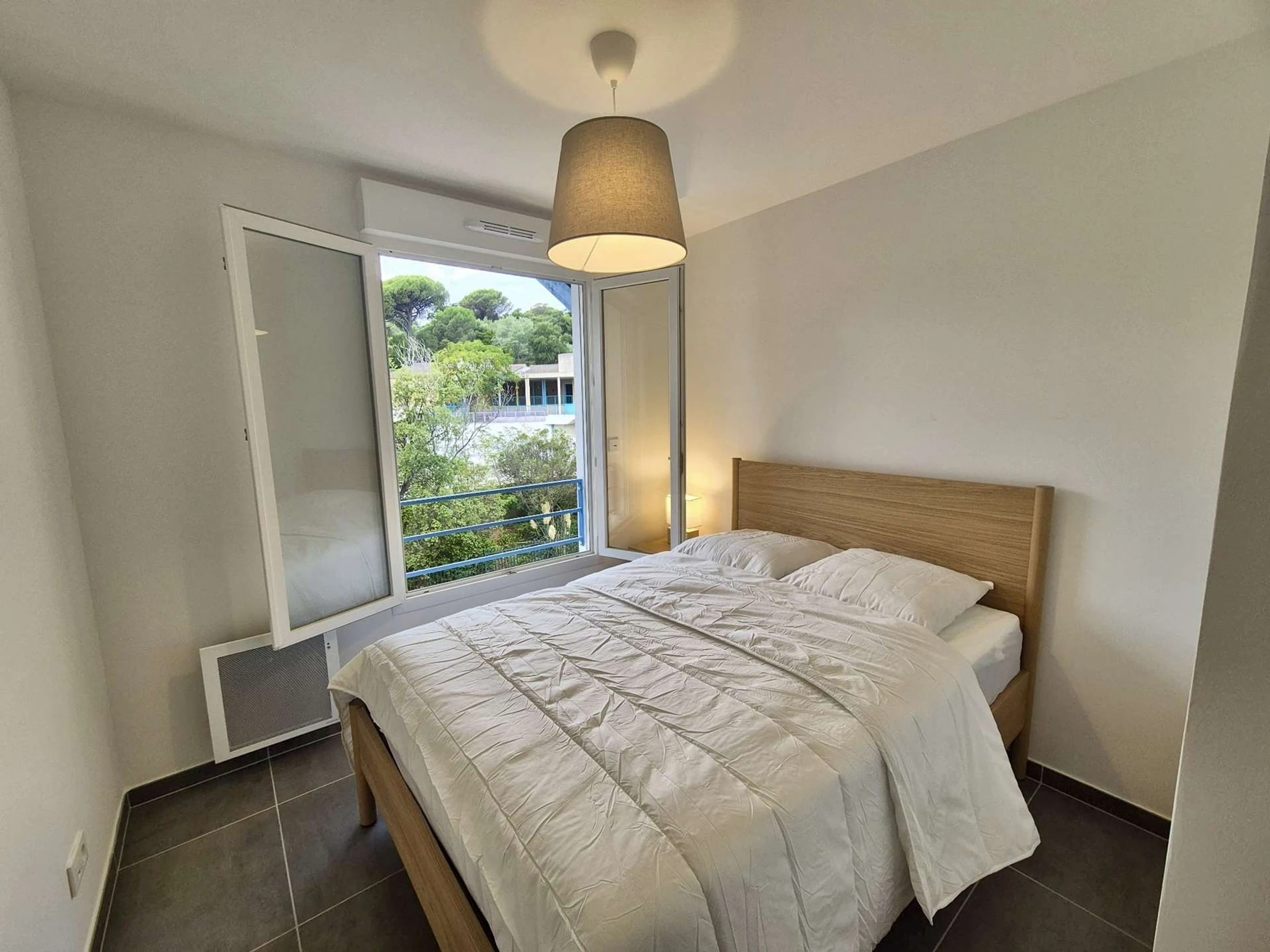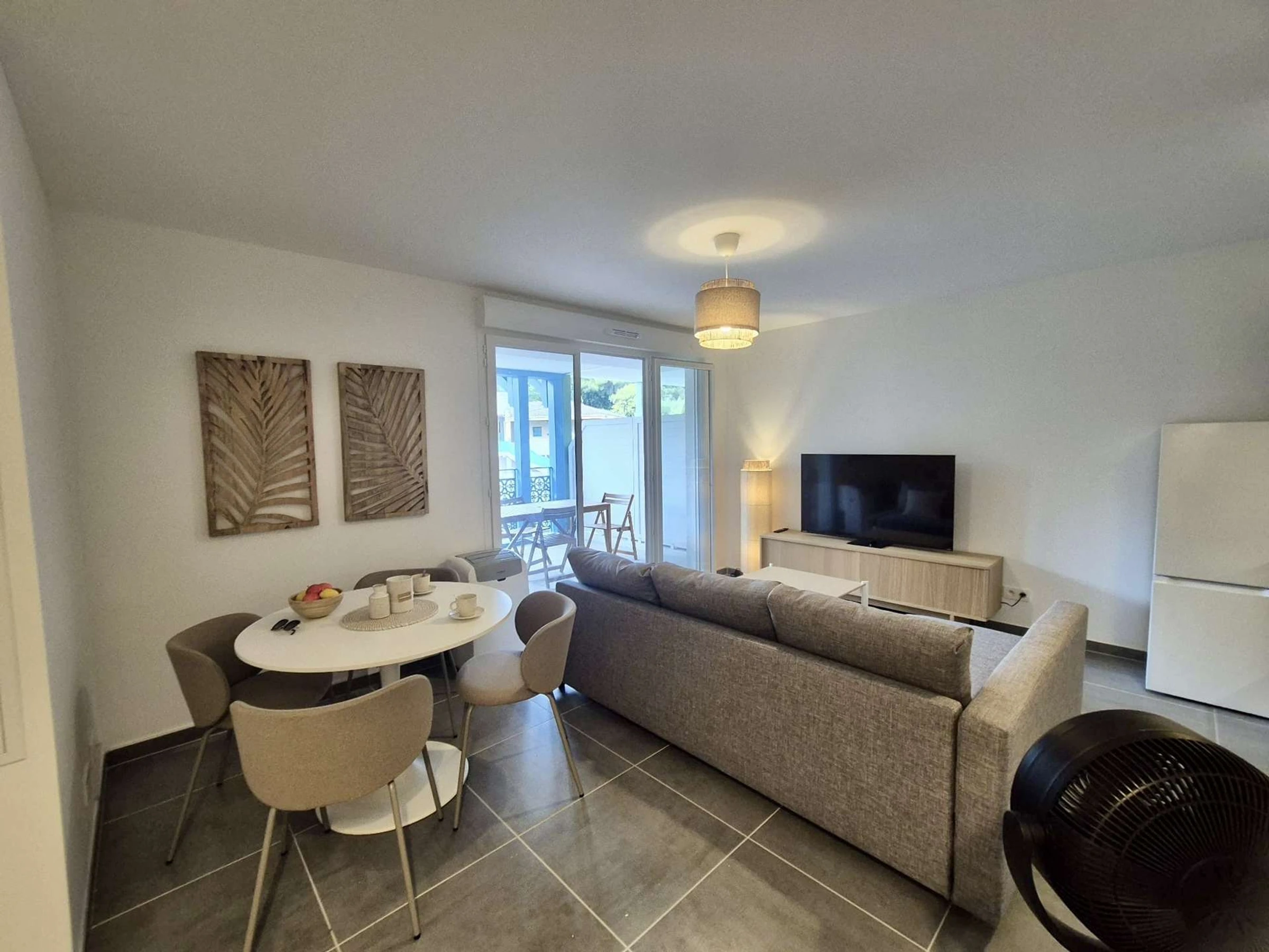 Dans une résidence neuve de standing avec piscine, joli appartement comprenant un séjour avec cuisine aménagée et fonctionnelle, une chambre avec lit deux places en 160 cm, une seconde chambre avec un lit en 140 cm, une salle de bains avec lave-linge et wc séparé. Nombreux rangements disponible.