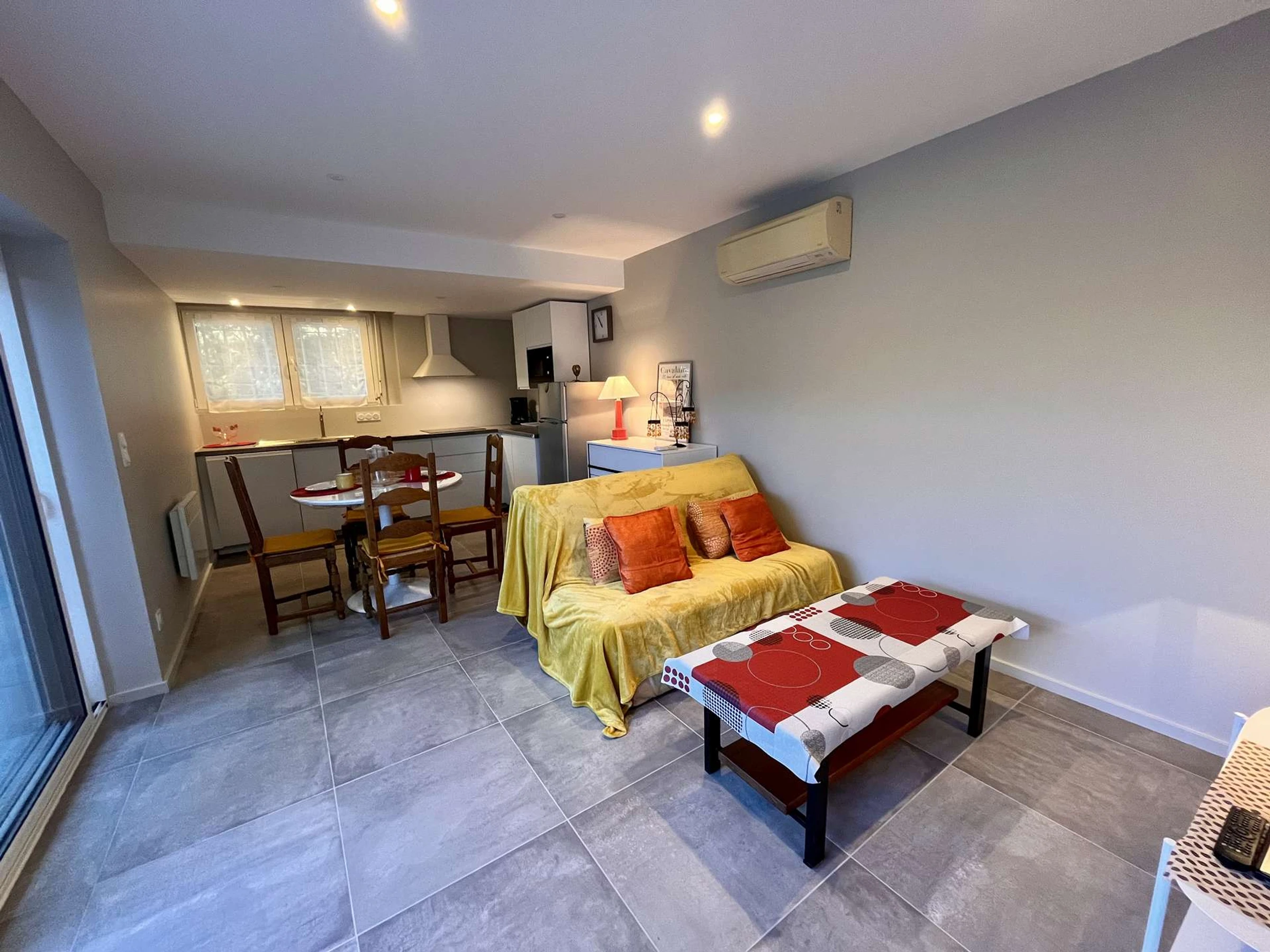 L'appartement, totalement refait à neuf, dispose d'une climatisation, il comprend un séjour avec un coin repas et une cuisine équipée.