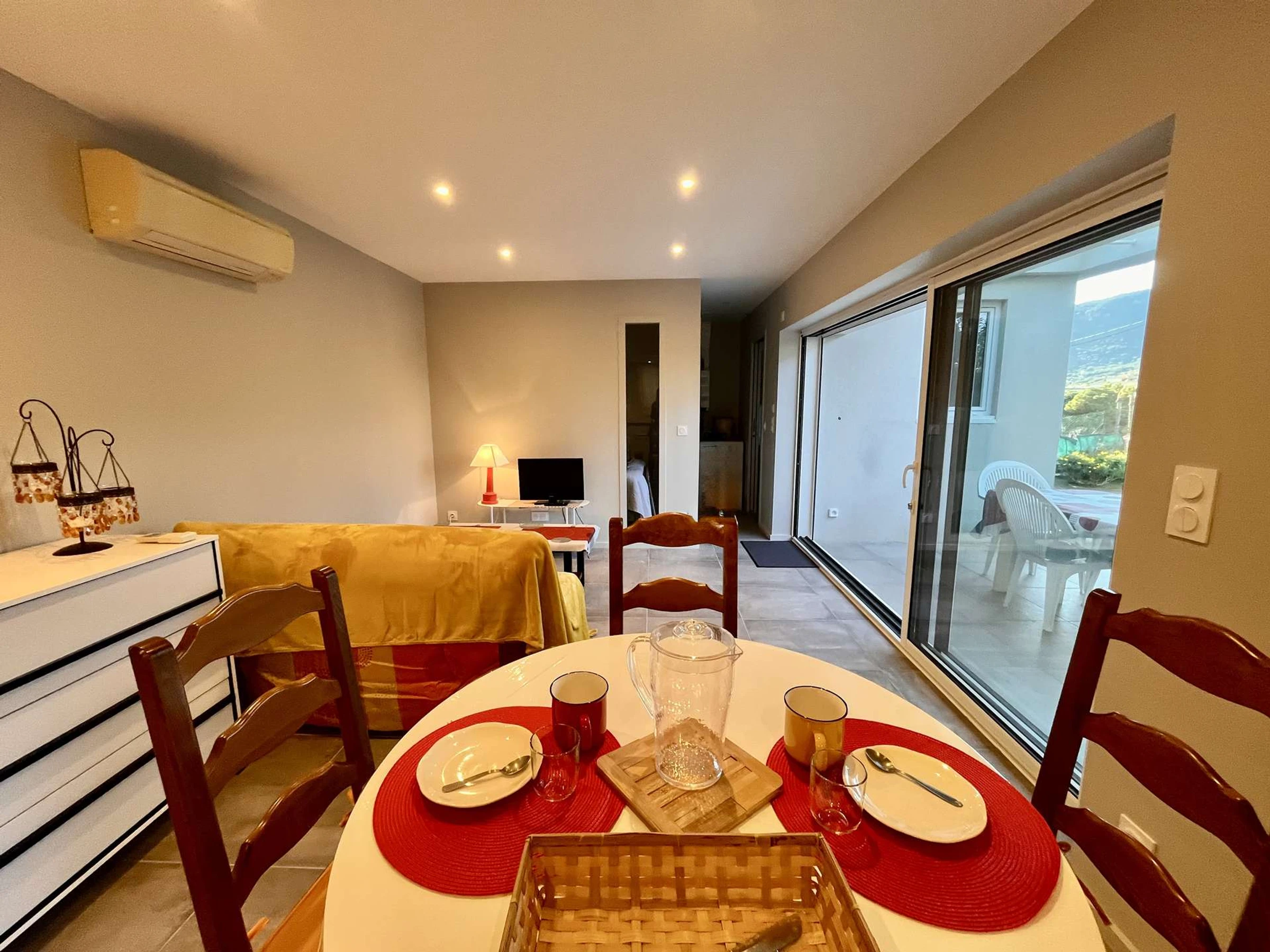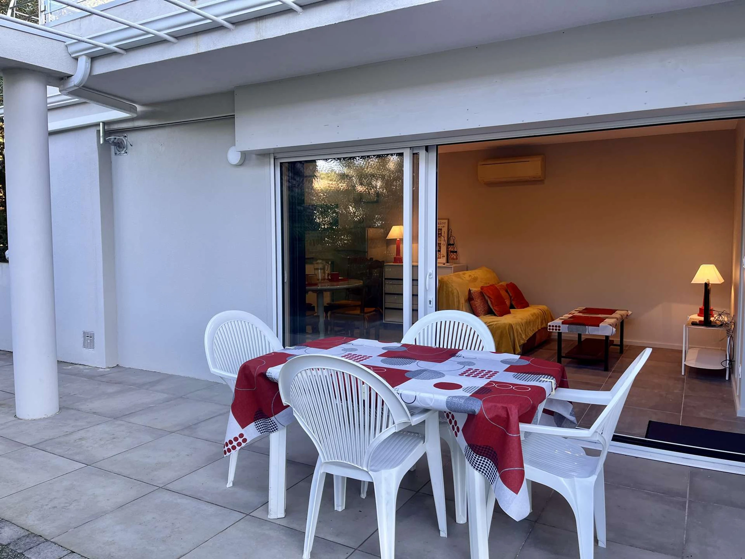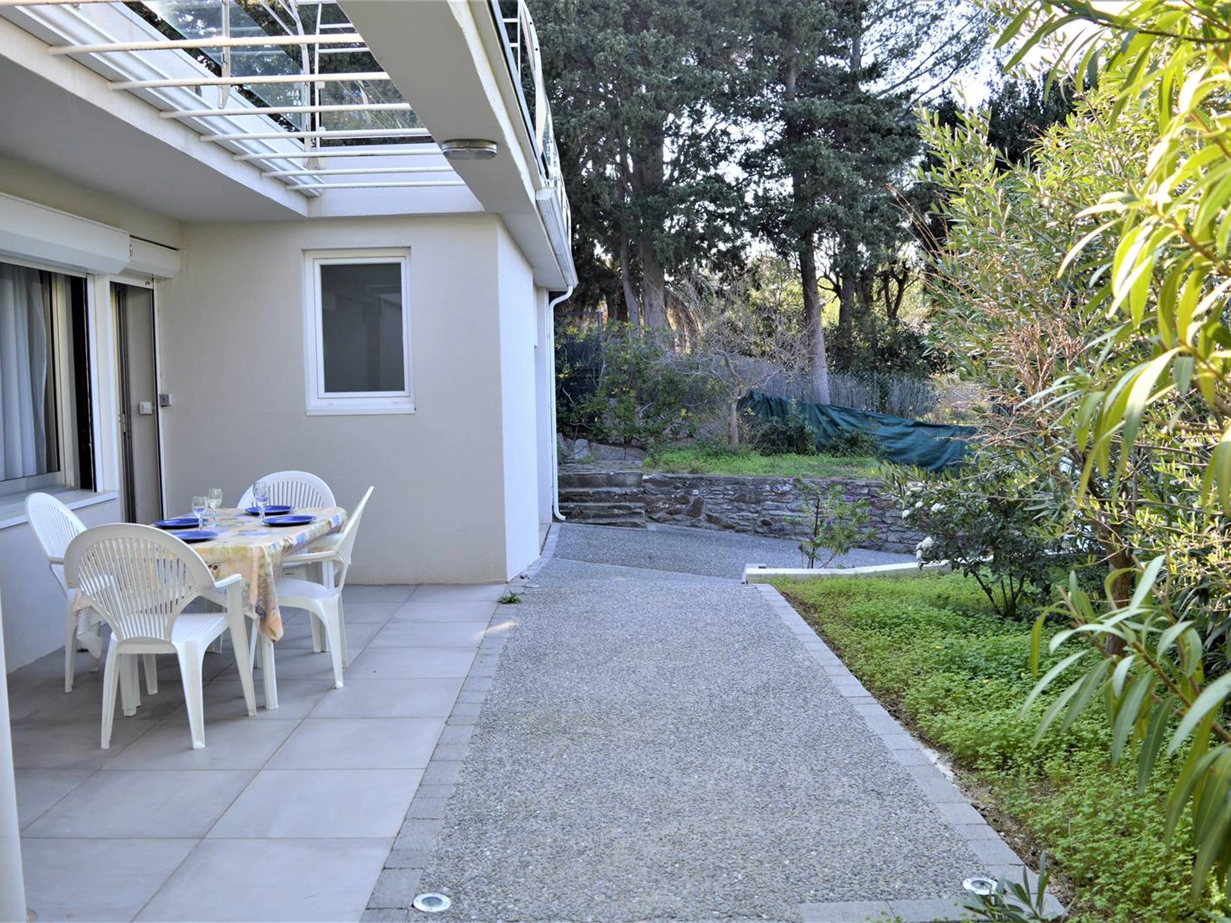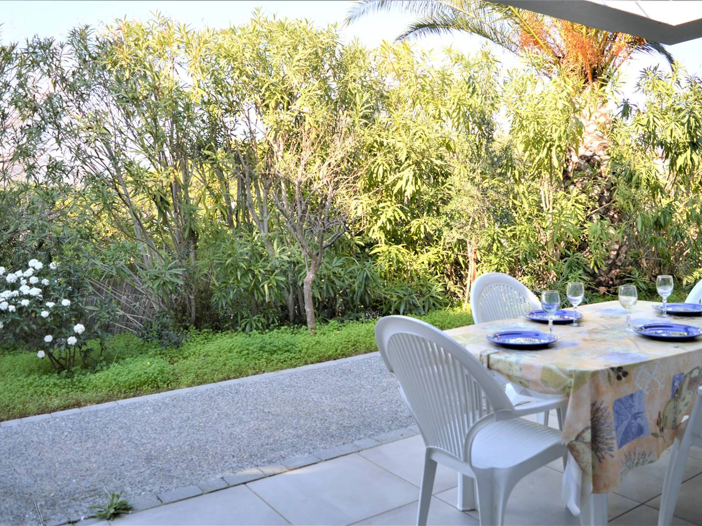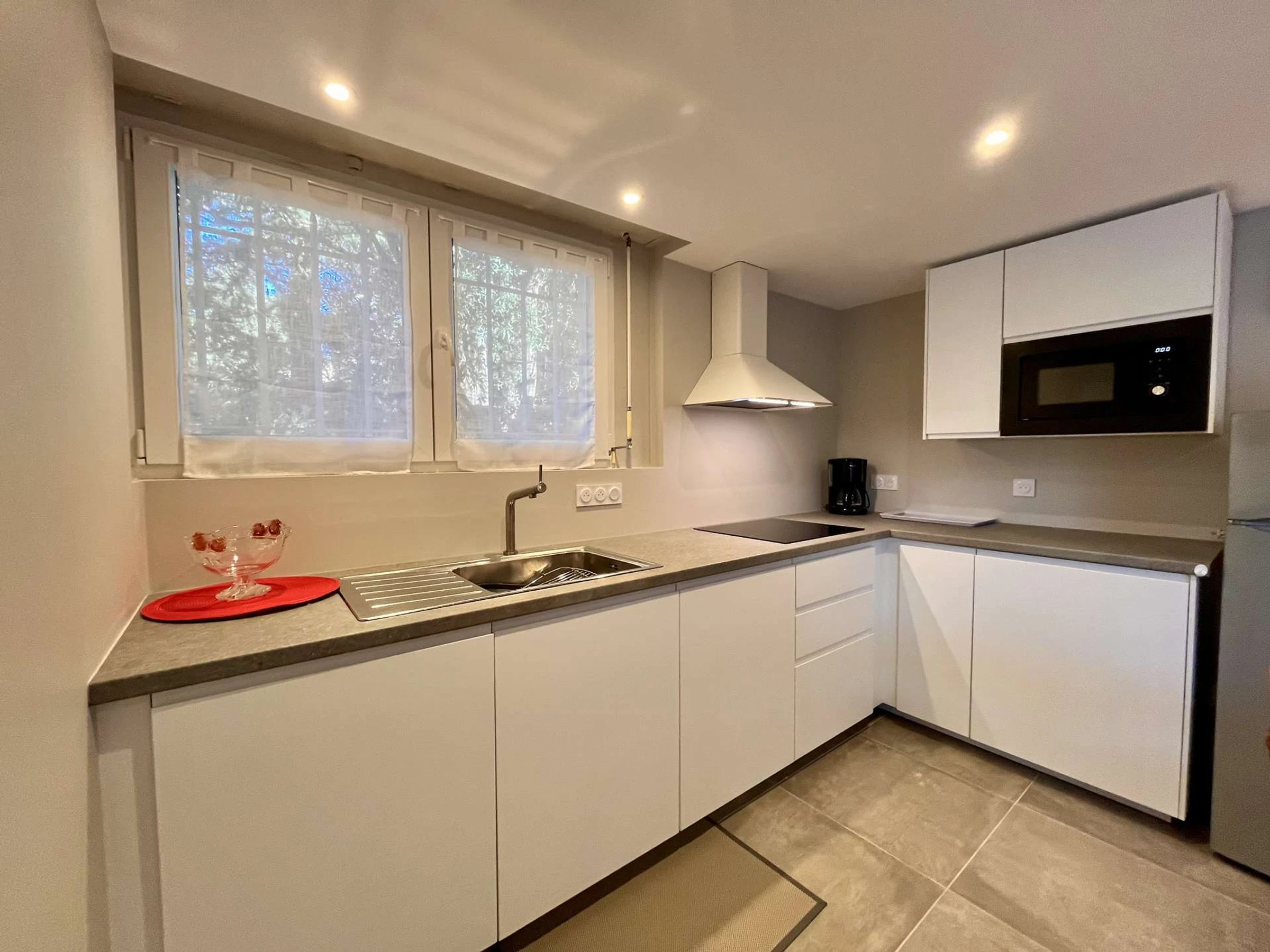Cette location entièrement rénovée,climatisée, est située en rez de jardin d'une villa, au calme, dans un secteur résidentiel proche du port et de ses animations.