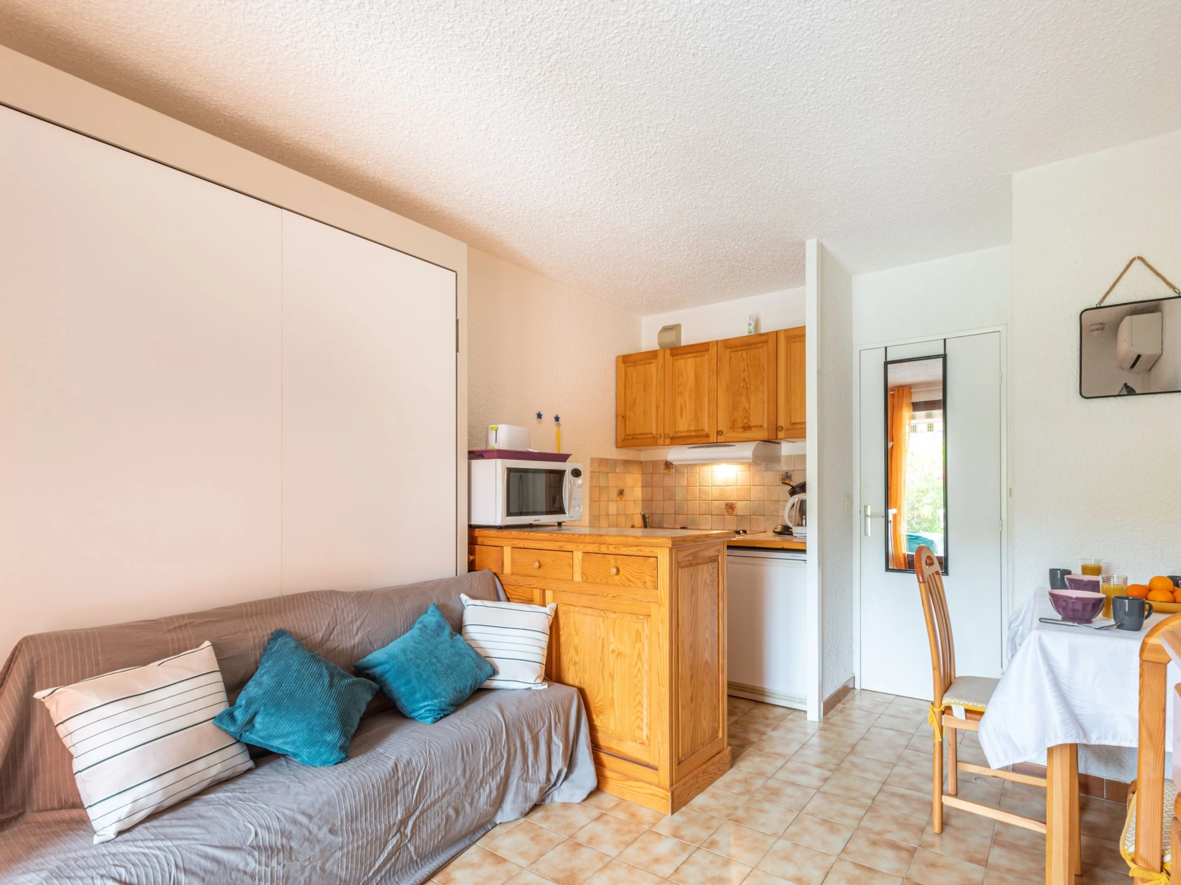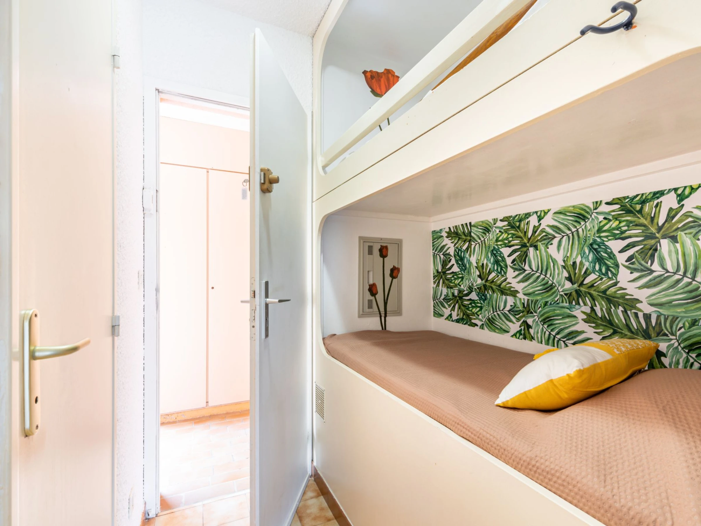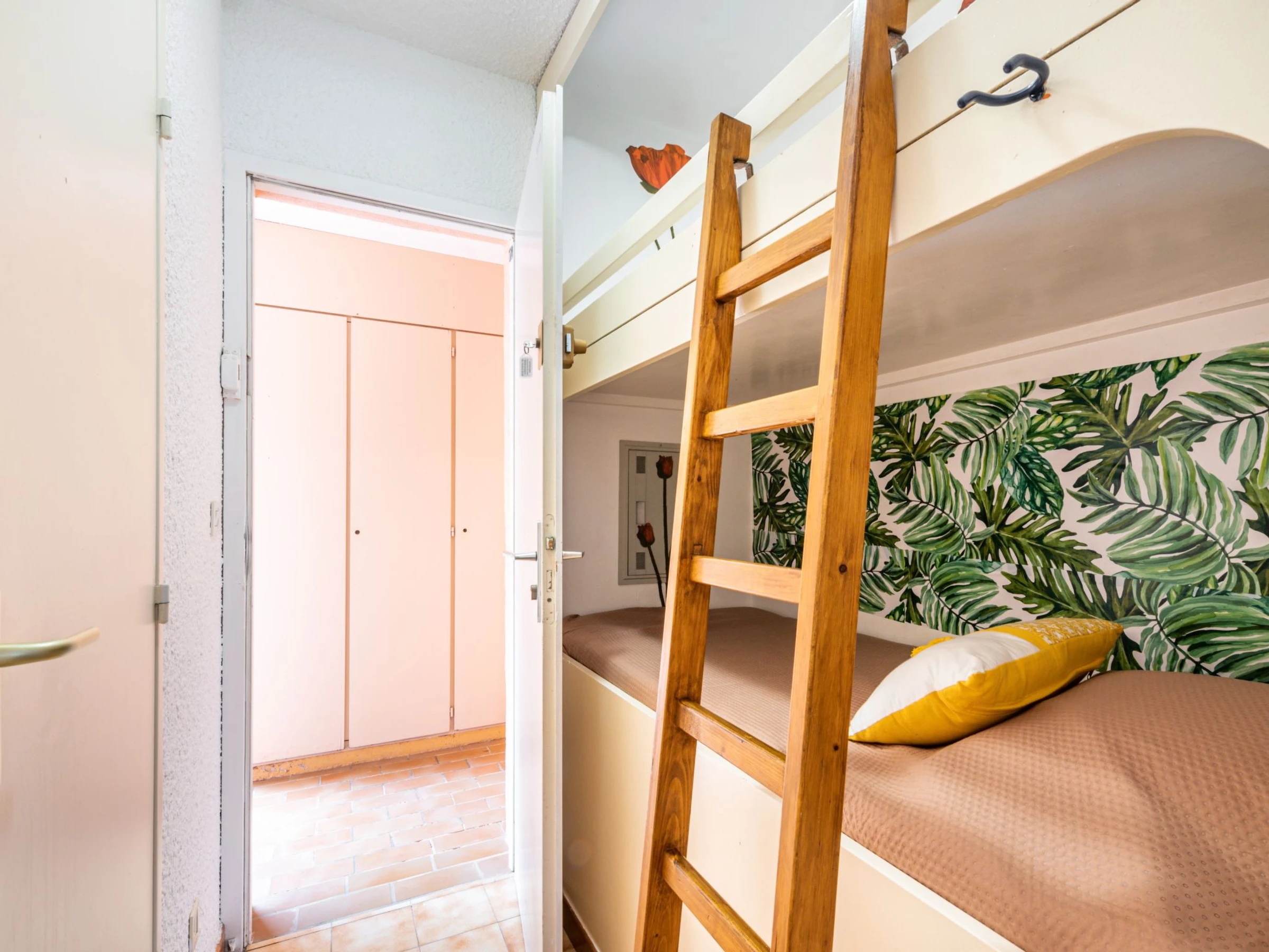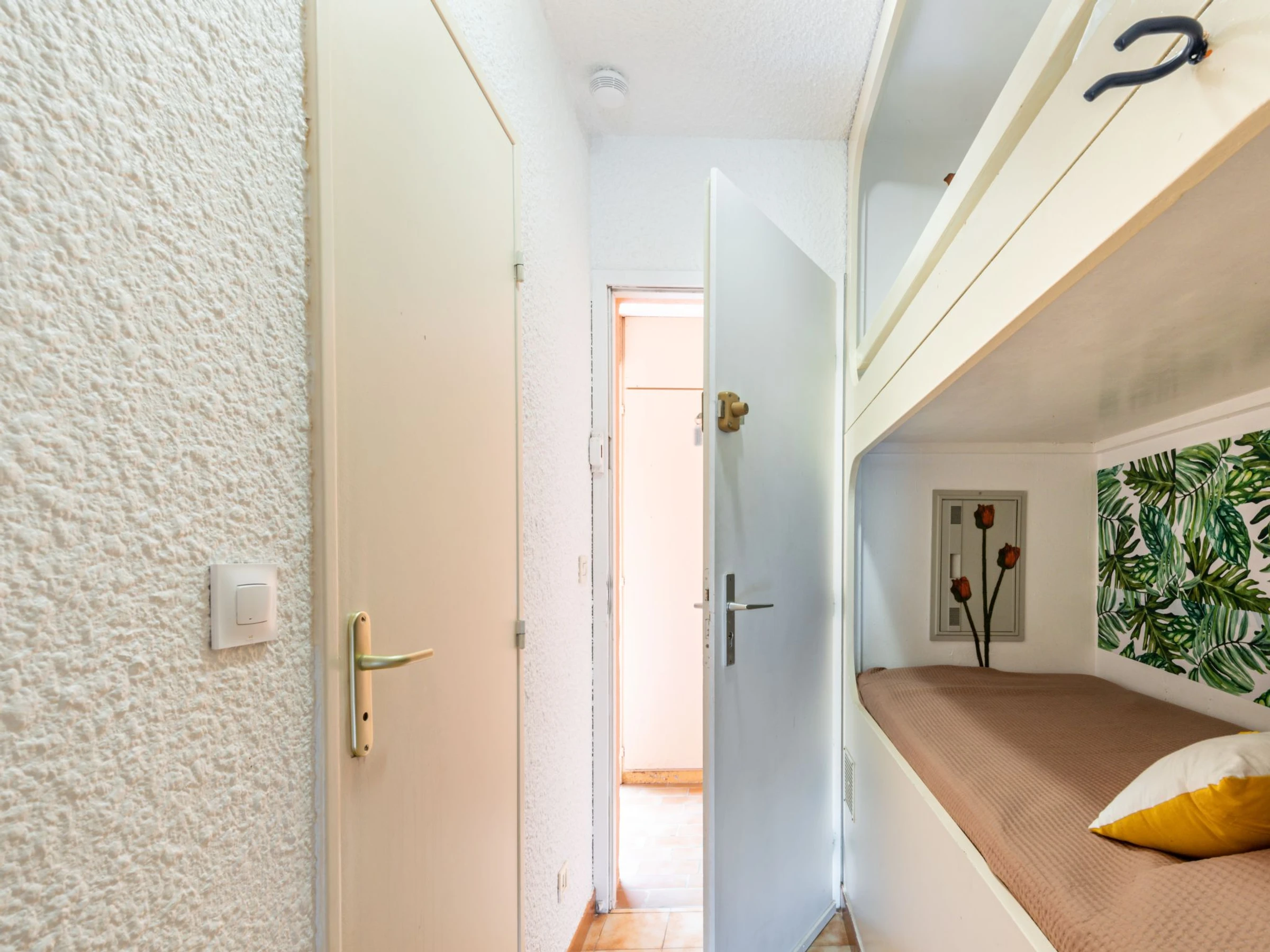 Studio 20 m2, au rez-de-chaussée. Logement idéal pour 2 adultes + 2 enfants. Aménagement agréable: séjour/salle à manger avec 1 grand-lit rabattable (140 cm, longueur 190 cm), TV. Sortie sur la terrasse. Cabine, 2 lits superposés (80 cm, longueur 190 cm). Coin cuisine (2 plaques de cuisson, lave-vaisselle, grille-pain, bouilloire électrique, congélateur, cafetière électrique, Capsules pour machine à café (senseo) (NON INCLUSES), combiné micro-ondes) avec coin repas. Bain/WC. Chauffage, air-conditionné, chauffe eau (150 litres). Terrasse 9 m2, situation sud, jardinet 15 m2. Meubles de terrasse, barbecue électrique, chaises longues (2). Vue sur la piscine et le jardin. A disposition: lave-linge, fer à repasser, sèche-cheveux. Internet (Connexion WIFI, en sus). Place de parking No 45 (cloturée, 1 Voiture). Veuillez noter: détecteur de fumée. Annonce d'un particulier (art 155, IV du CGI).