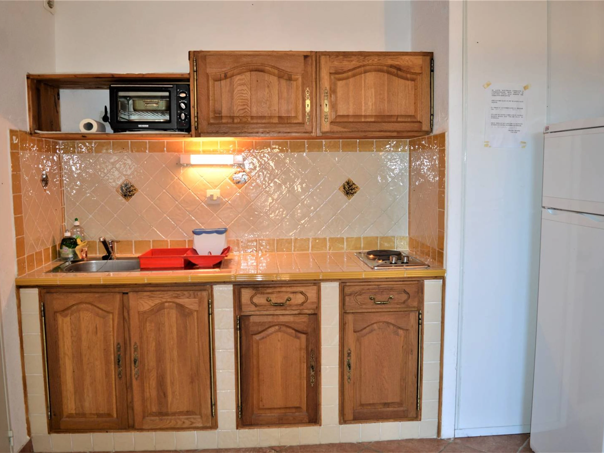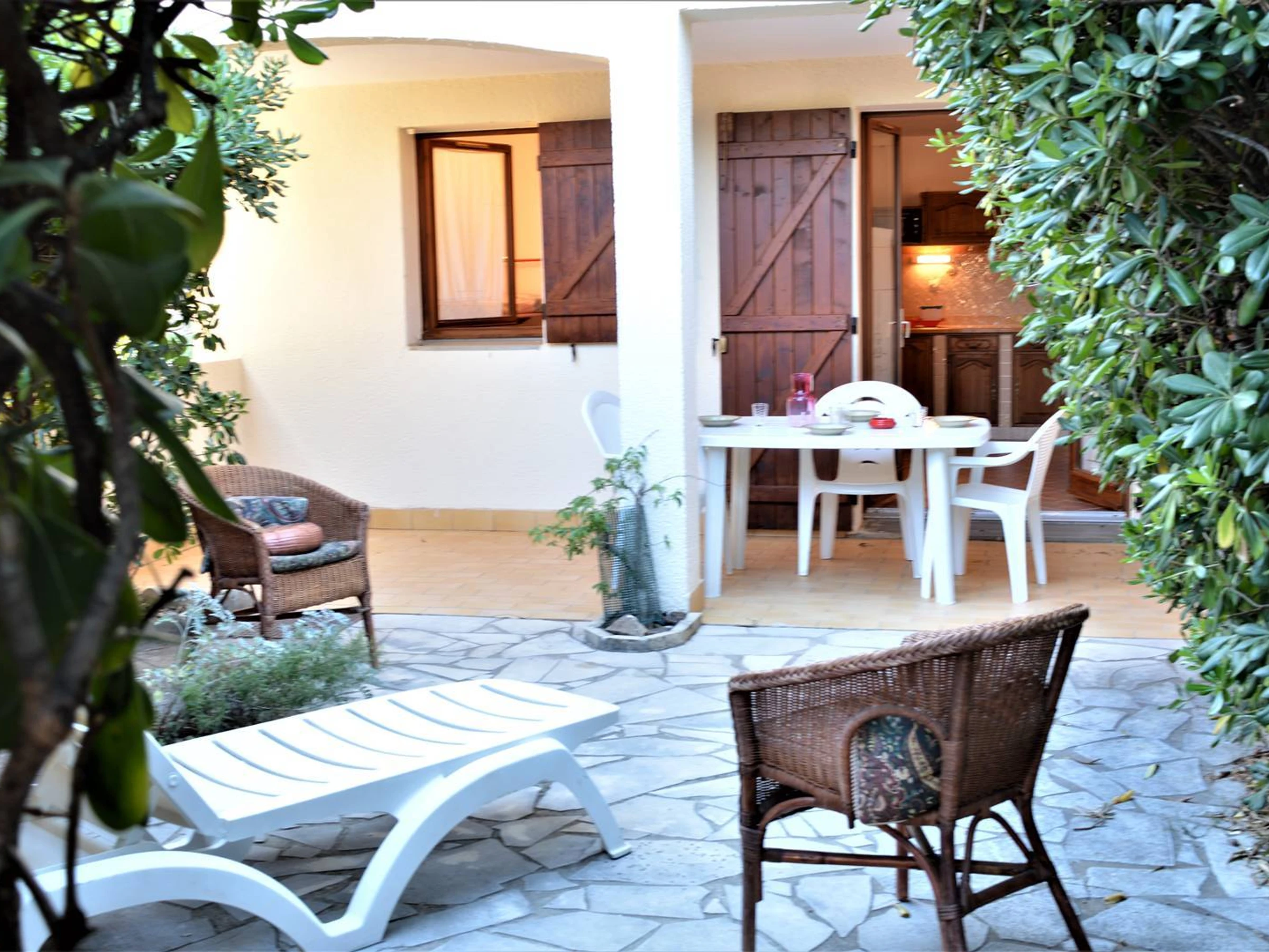 A flanc de colline, dans une résidence sécurisée avec piscine collective, charmant 2 pièces en rez de jardin, comprenant un coin cuisine, une pièce principale avec un canapé gigogne pour deux personnes, une chambre avec deux lits superposés, une terrasse exposée sud-est. CLIMATISATION MOBILE