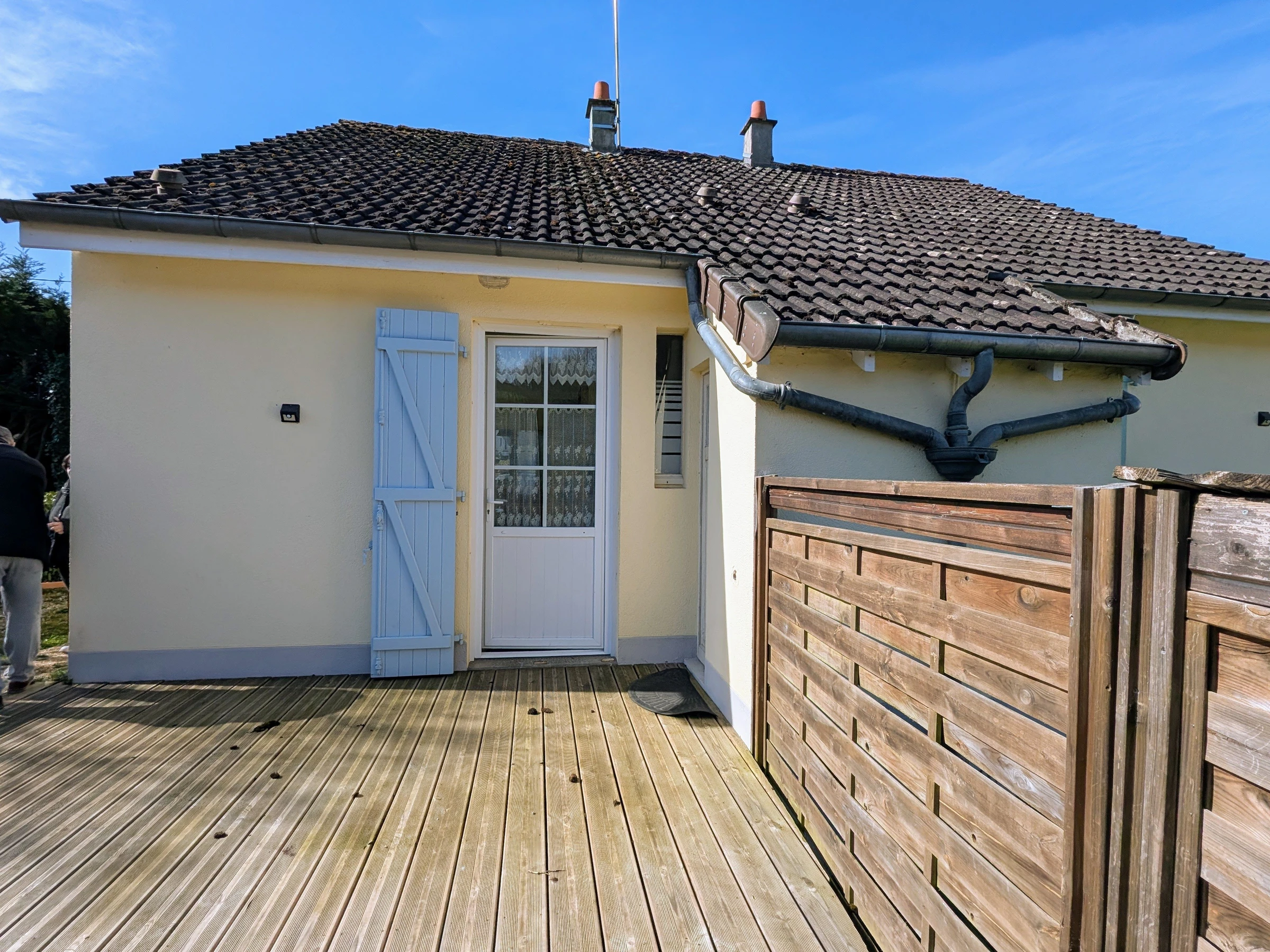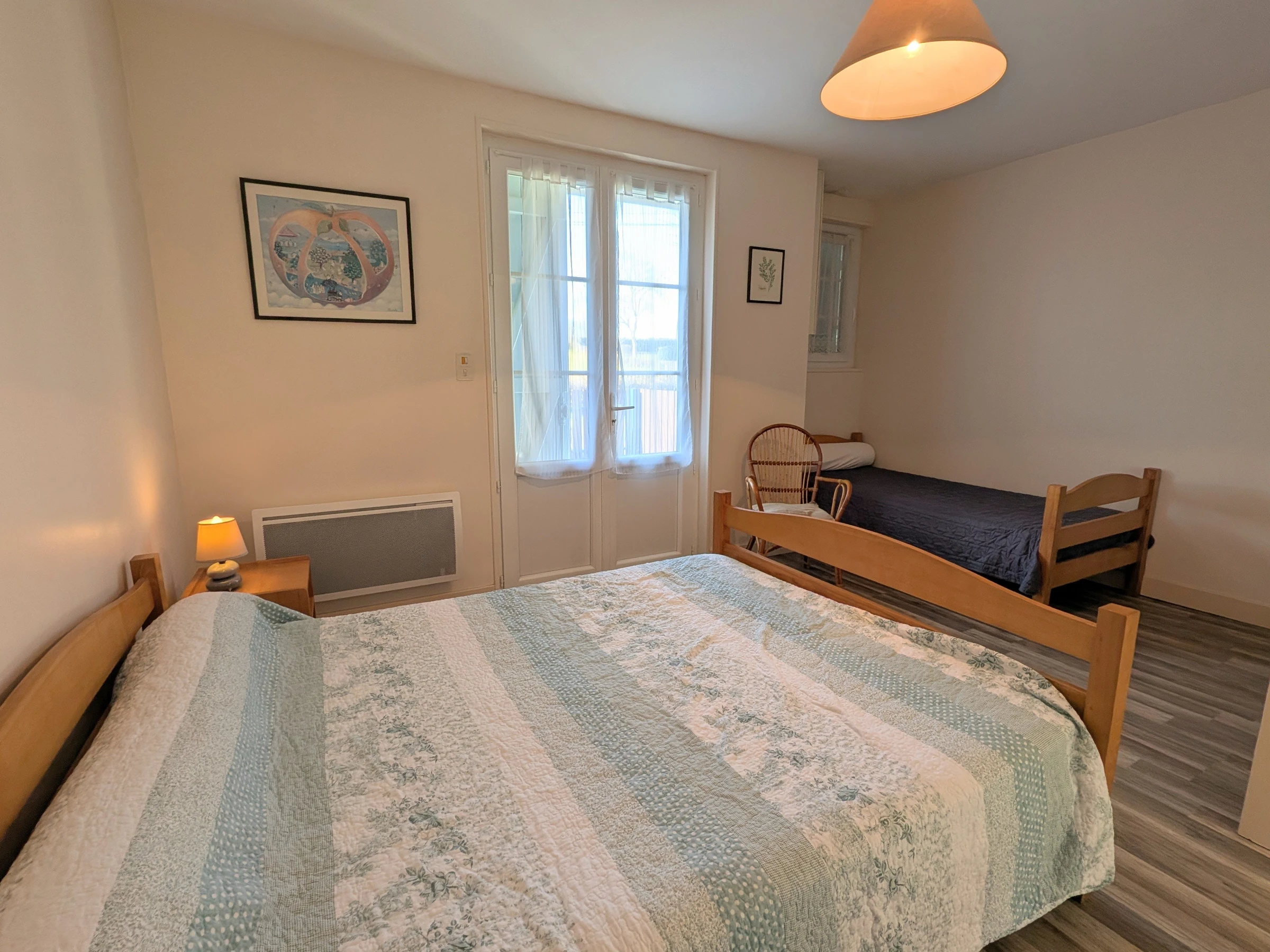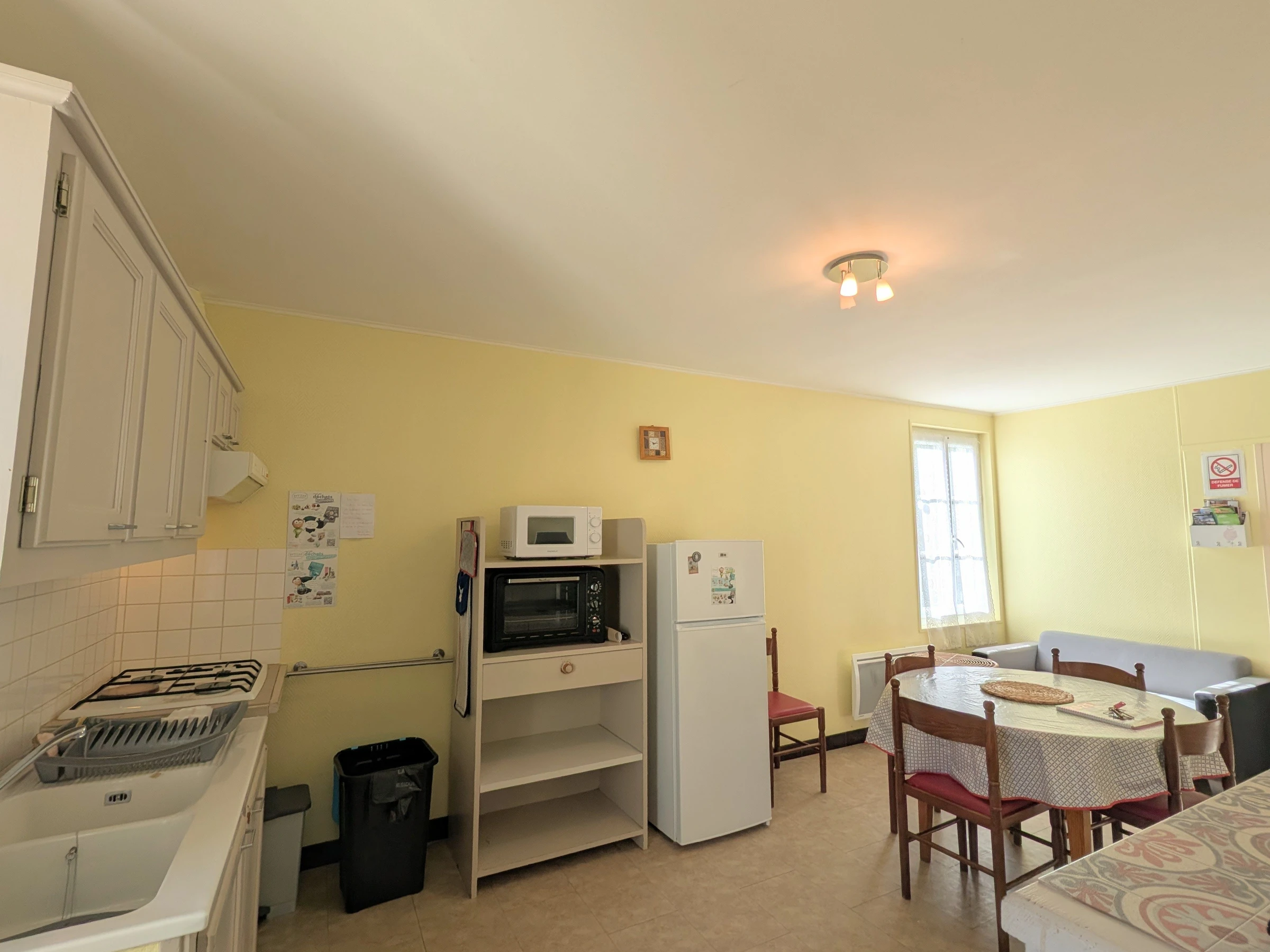 Au rez-de-chaussée (une marche) : cuisine /séjour /salon (insert) - 1 chambre (1 lit 2 personnes, 1 lit 1 personne) - salle d'eau - wc indépendant.