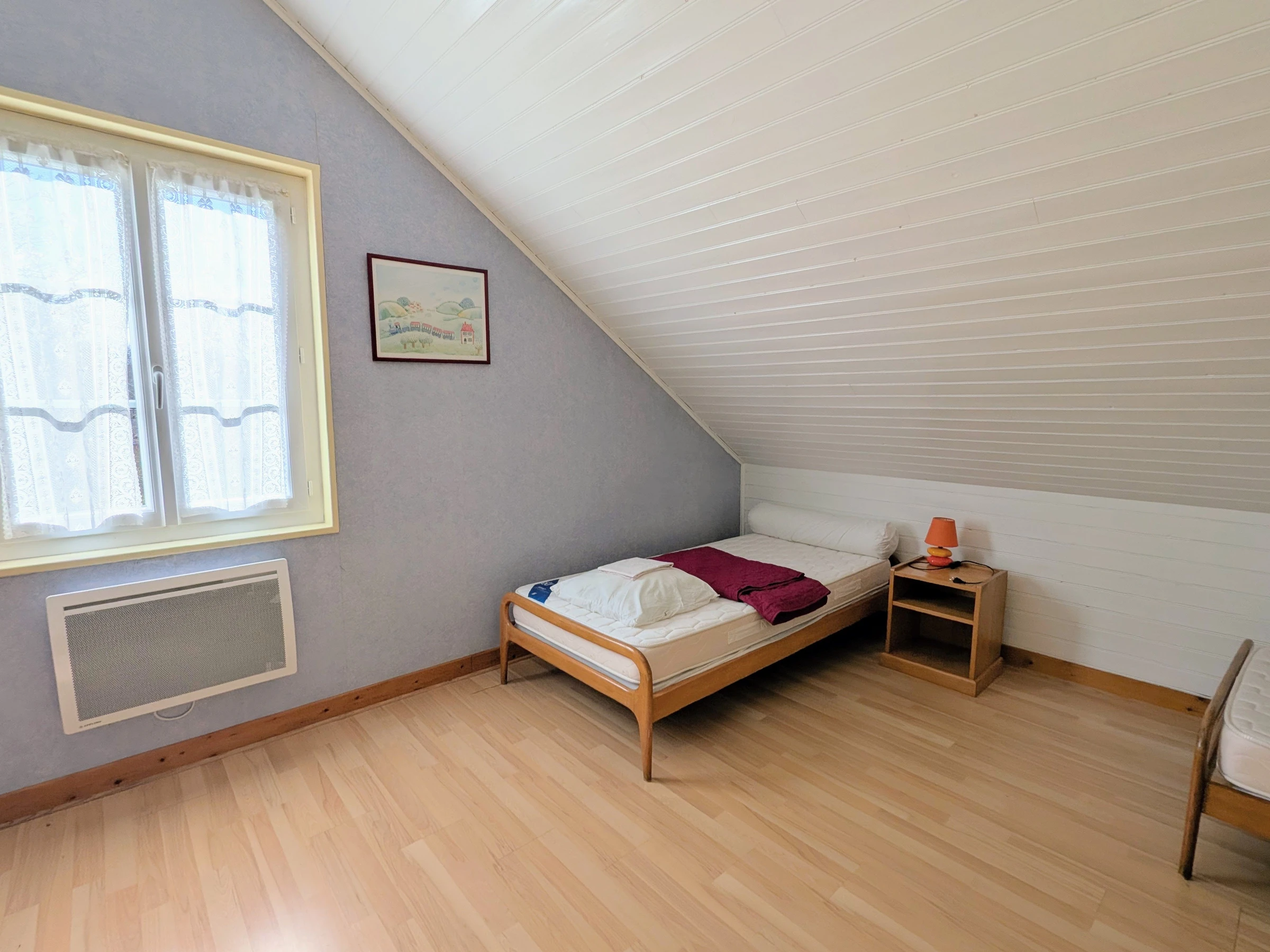A l'étage : chambre mansardée (3 lits 1 personne, lavabo).