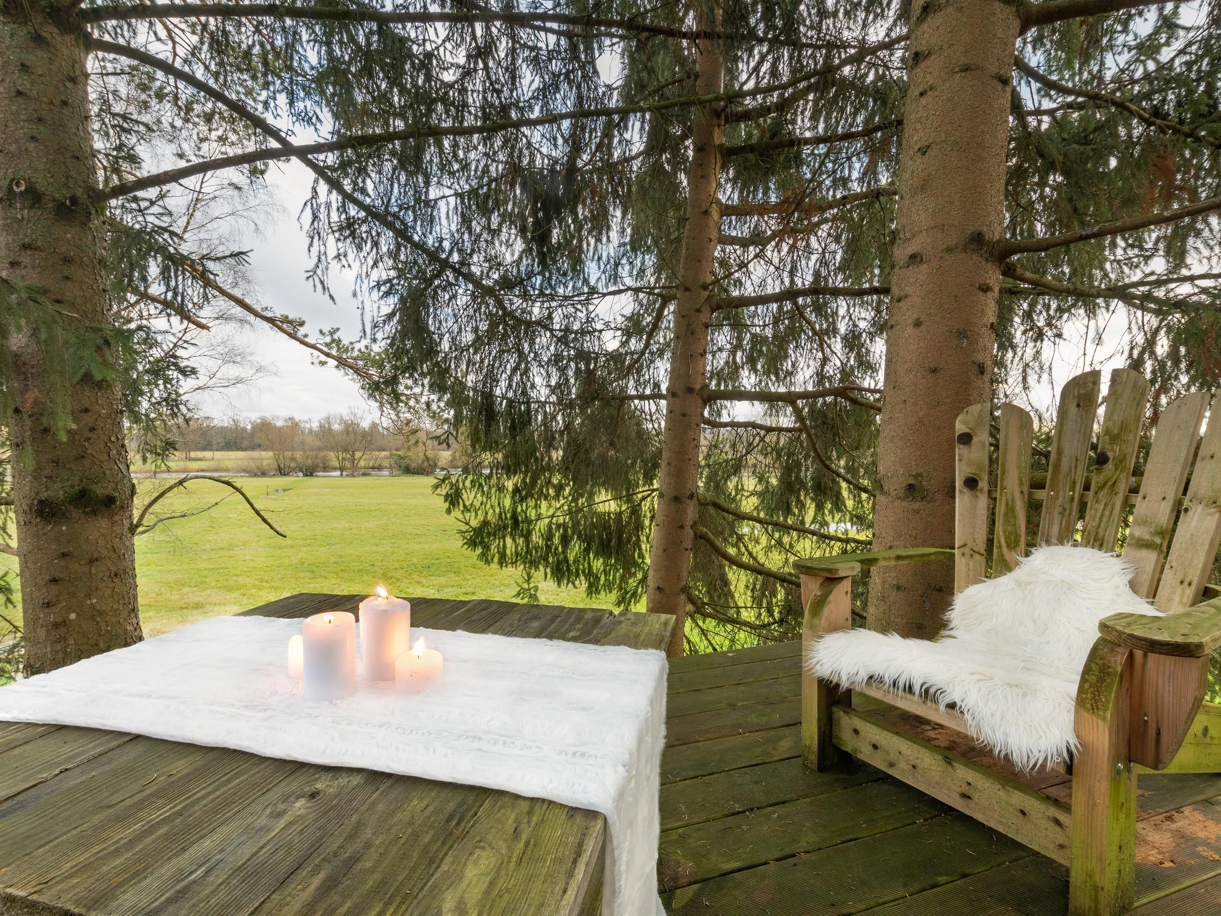 A l'extérieur, terrasse avec salon de jardin et parasol, barbecue, charrette de transport pour la plage, chaises longues. Grand jardin (89 ares) non clos, proposant différents espaces de détente : trampoline, slackline, terrasse en bois surélevée, avec bains de soleil, tapis de yoga... un véritable havre de paix et de dé[hidden] bout du terrain, en bord de rivière, accès à une petite plage (les enfants sont sous la responsabilité des parents), avec table pic nique et chaises longues. Calme absolu...