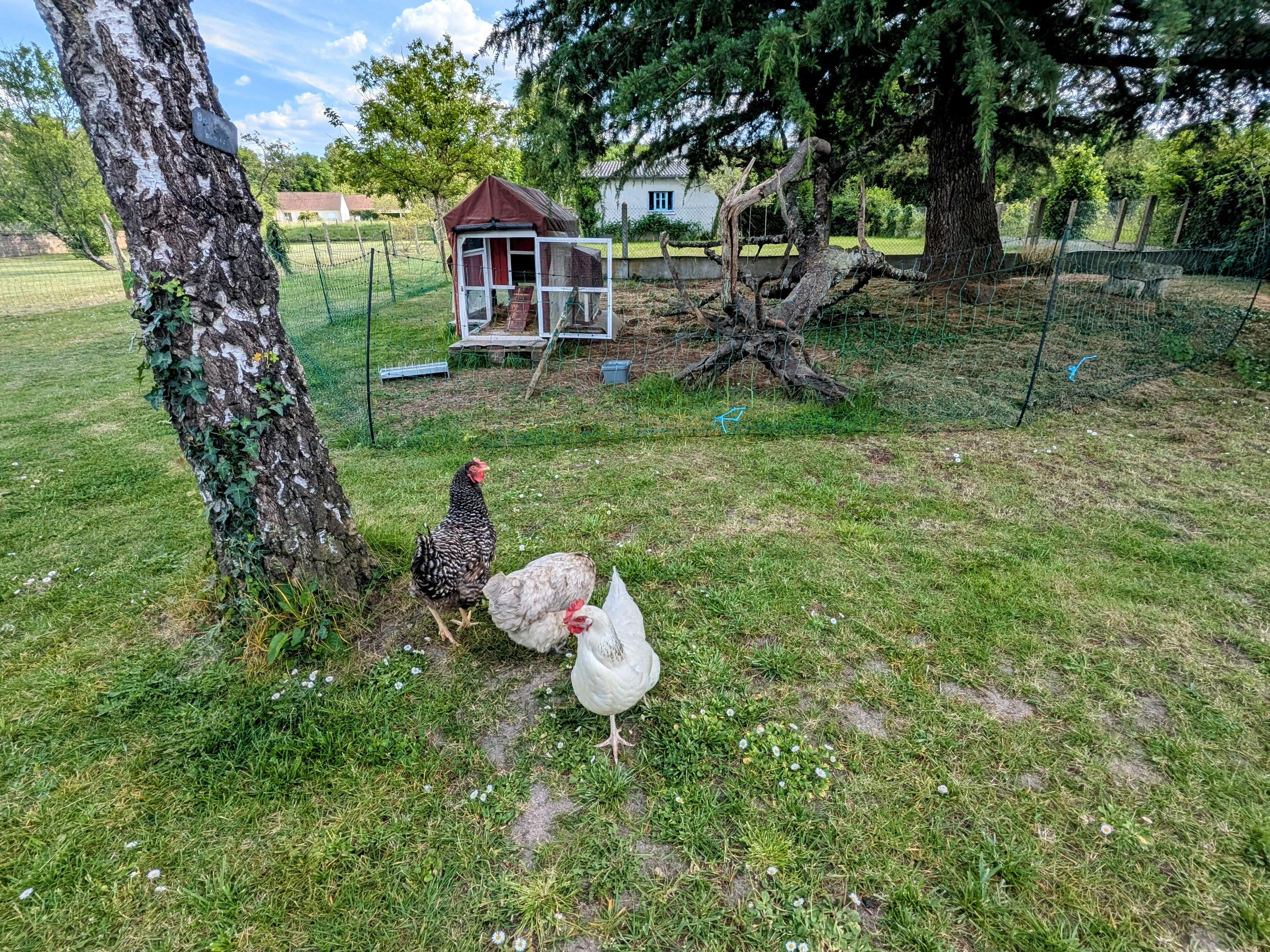 A l'extérieur plus de 2000m² partagés avec les propriétaires et les locataires de 2 autres hébergements. Multiples espaces de repos, de repas et de loisirs aménagés :