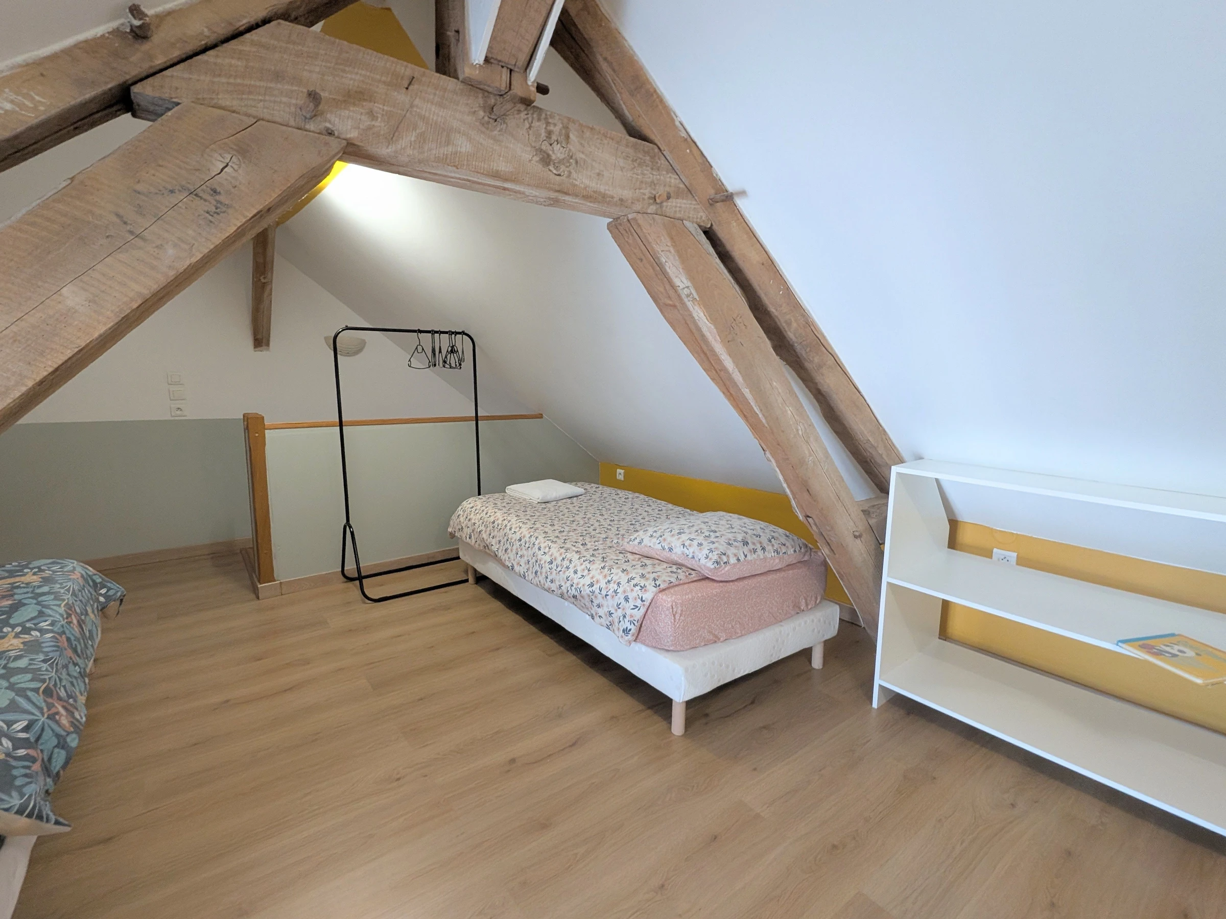 Au 1er étage ouvert sur le rez-de-chaussée un espace nuit avec 2 lits 1 personne (90x190 cm) et un lit 2 personnes (160x200 cm)