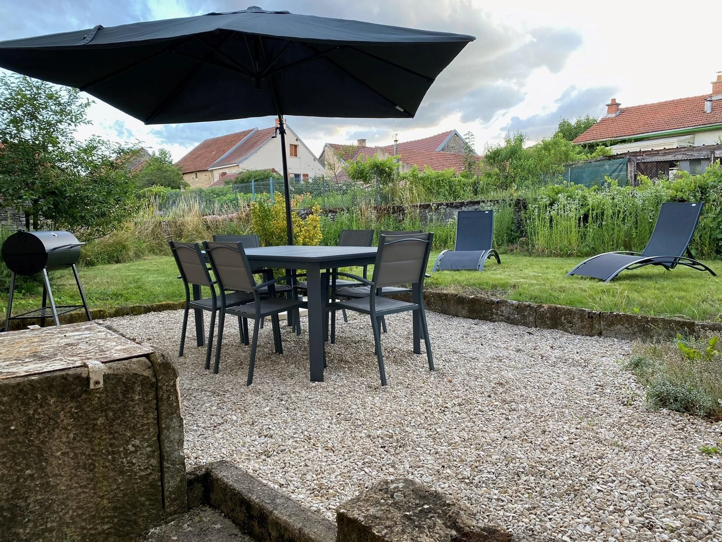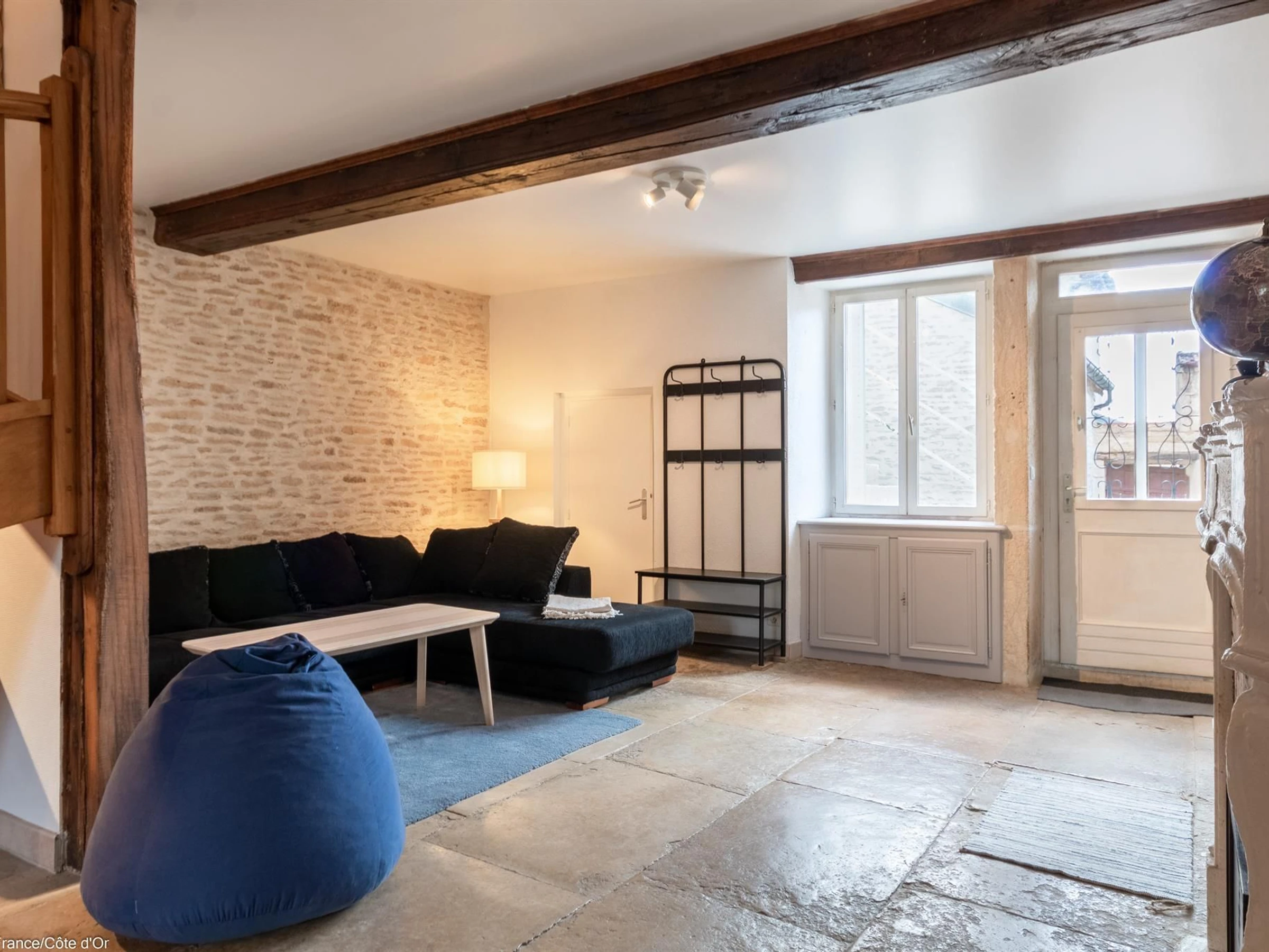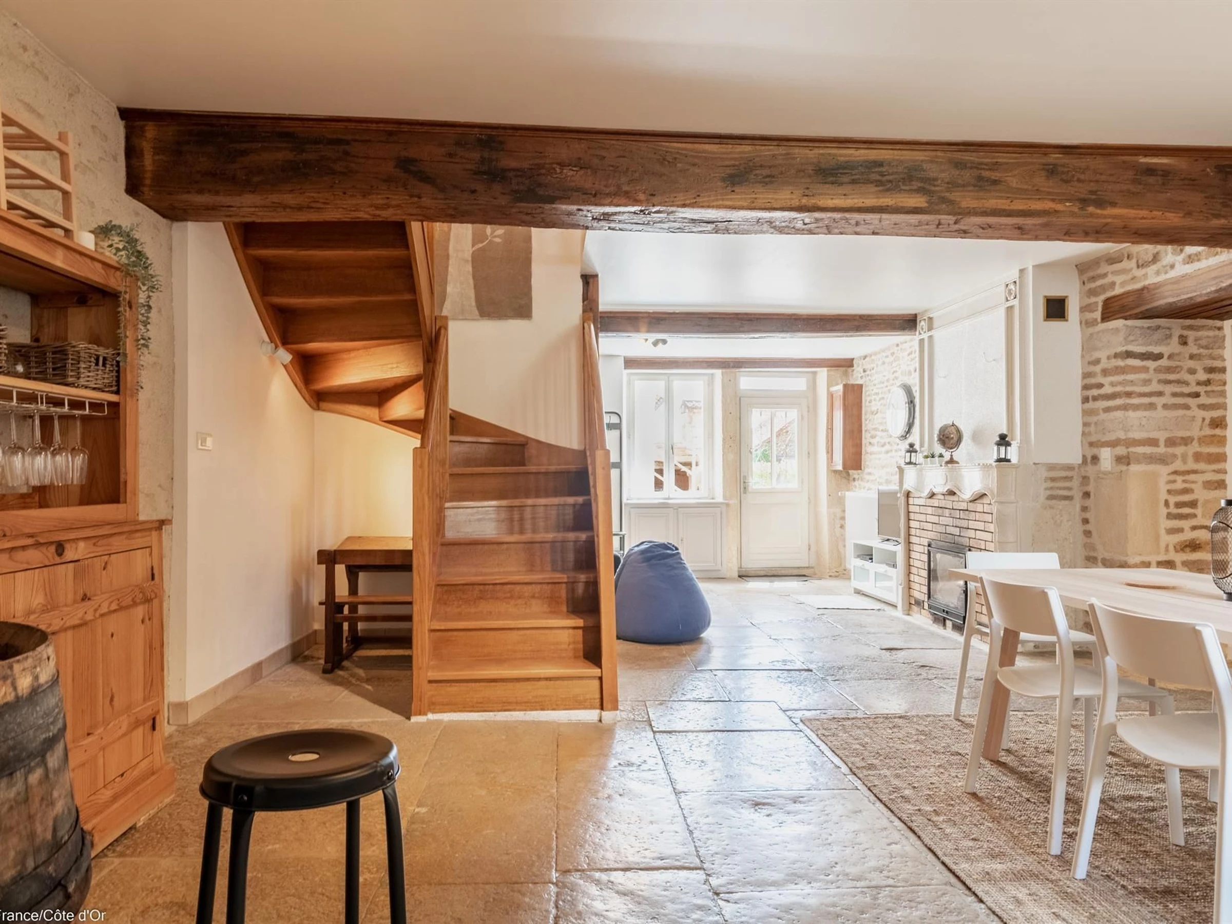 Au coeur d'un petit village à 10 minutes des portes de Dijon, la Maison de Juliette est une bâtisse rénovée, datant de 1850, avec pierres apparentes, dalles de Bourgogne et poutres.