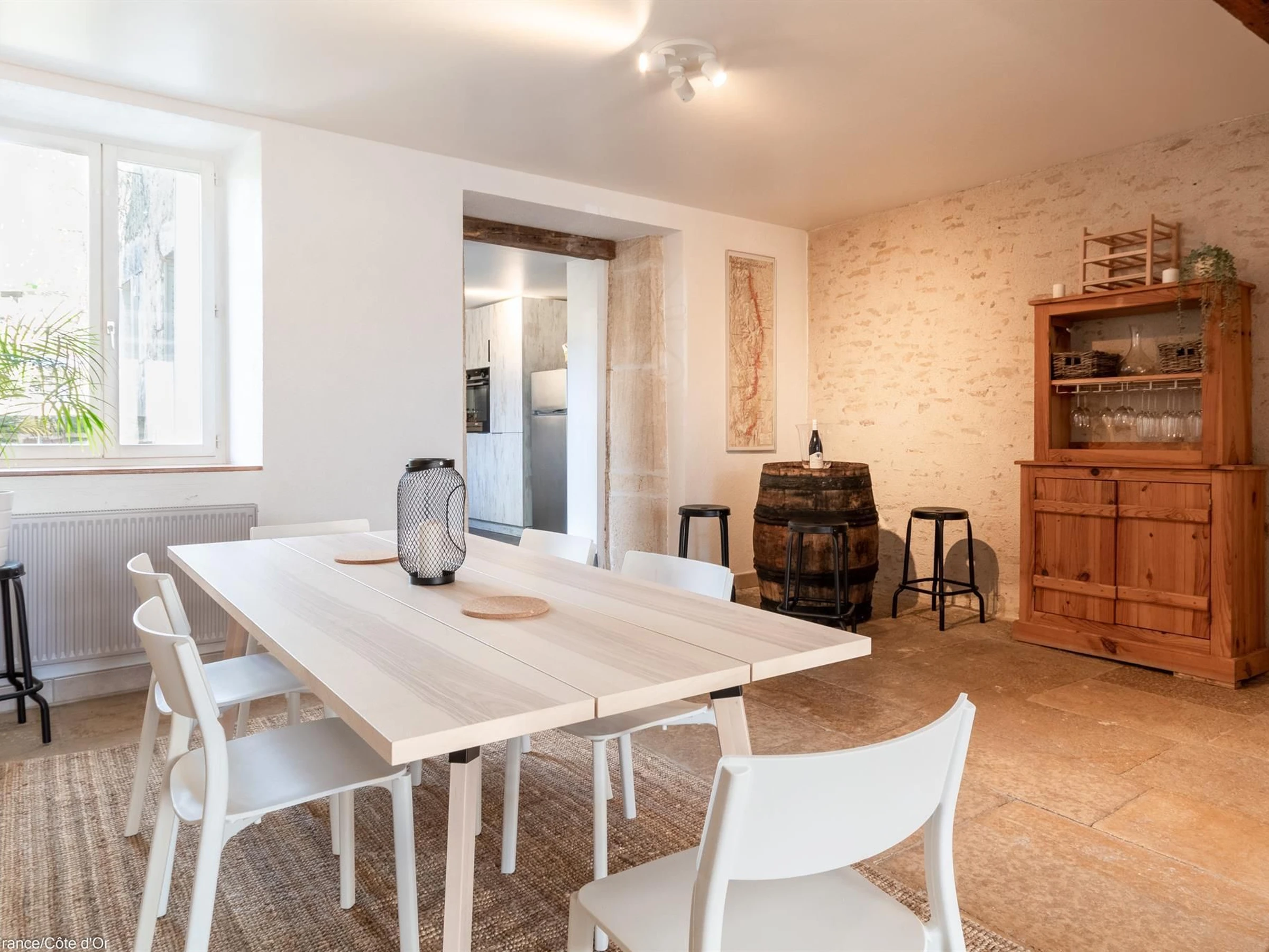 Au coeur d'un petit village à 10 minutes des portes de Dijon, la Maison de Juliette est une bâtisse rénovée, datant de 1850, avec pierres apparentes, dalles de Bourgogne et poutres. Rez-de-chaussée : vaste séjour avec salon, cheminée à foyer fermé et salle à manger. Cuisine intégrée donnant accès sur le jardin. Salle de bains avec baignoire d'angle. WC indépendant. Buanderie.