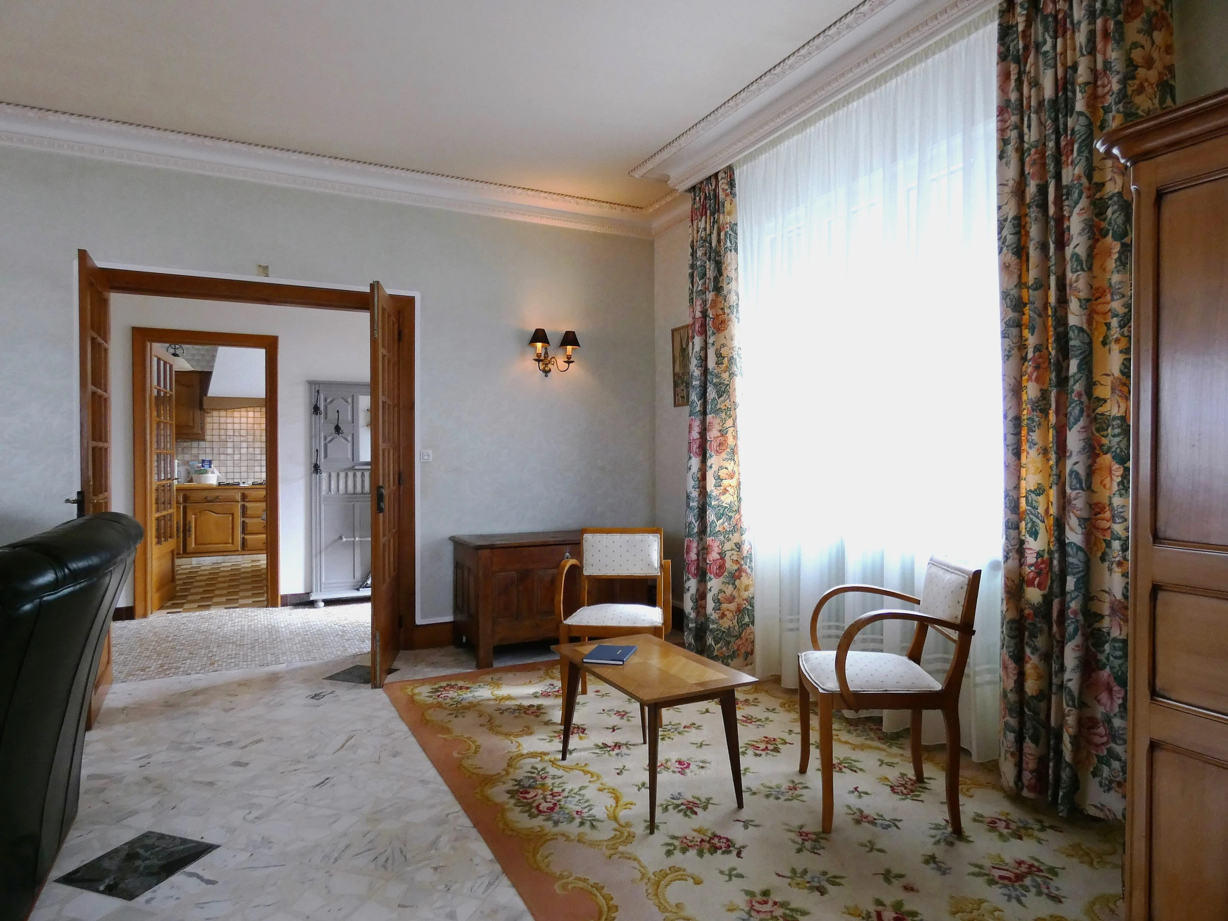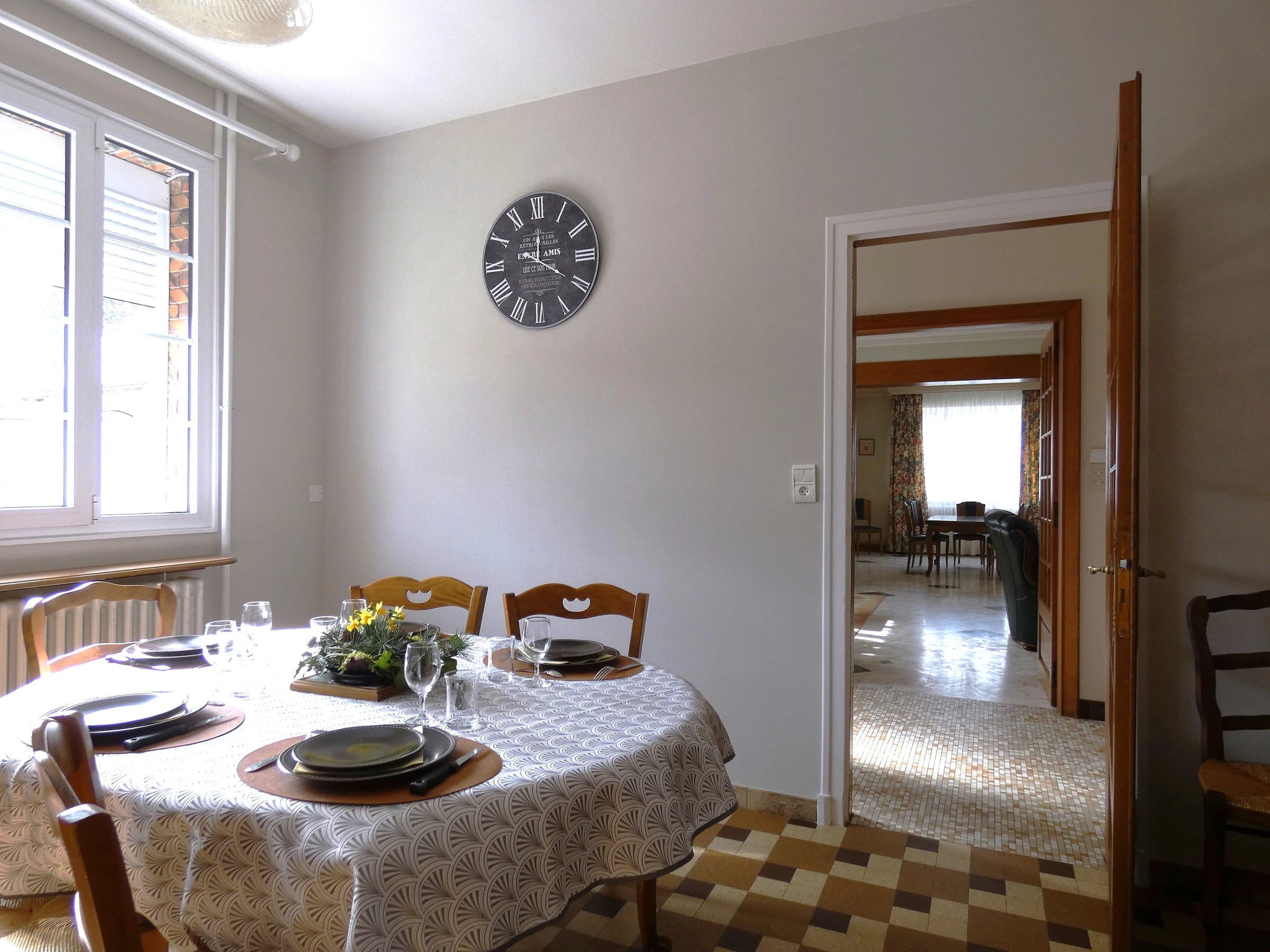 Vous découvrirez un salon spacieux et ouvert sur la salle à manger pour une ambiance conviviale. La pièce est lumineuse et propose un espace de vie idéal pour des repas en famille ou entre amis.