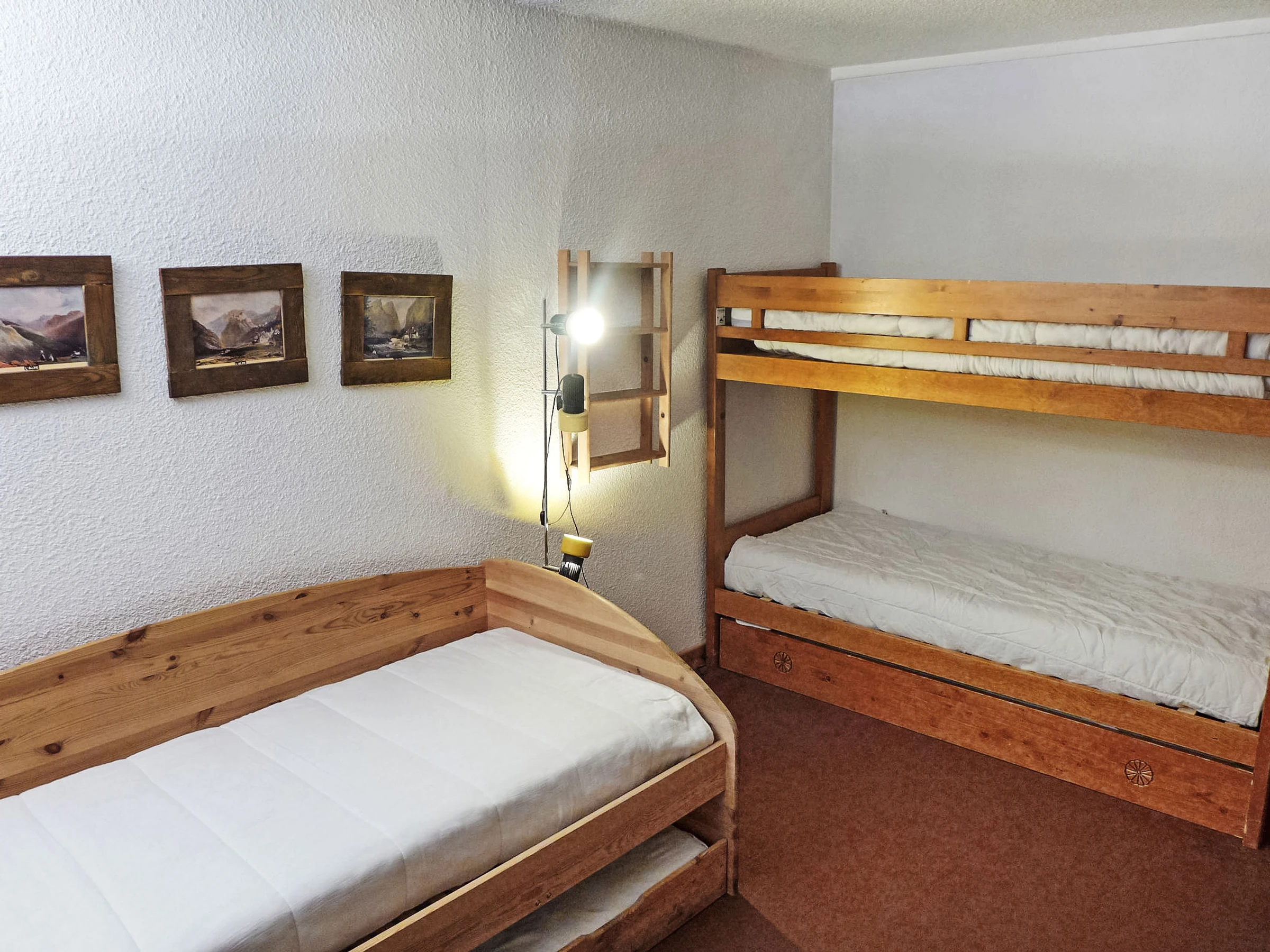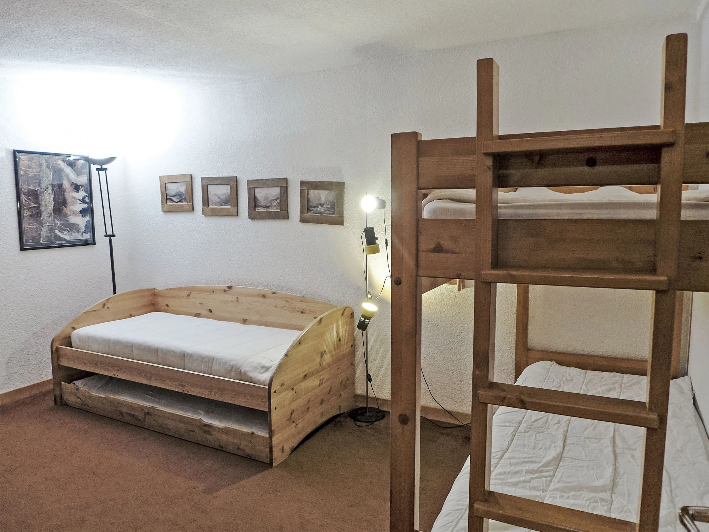 Apt 4 pièces 80 m2 sur 2 niveaux, au rez-de-chaussée. Aménagement simple: séjour/salle à manger avec TV. 1 chambre avec 2 lits (90 cm, longueur 190 cm), salle de bains et WC séparés. Cuisine ouverte (lave-vaisselle, 3 plaques à induction, bouilloire électrique, micro-ondes, cafetière électrique). Chauffage électrique. À l'étage inférieur: (escalier en colimaçon) 1 chambre, sans fenêtre avec 1 x 2 lits superposés (80 cm, longueur 190 cm), 1 lit gigogne (2 pers. 2 x 90 cm, longueur 190 cm). 1 chambre avec 1 grand-lit (160 cm, longueur 200 cm), douche/WC. Petit jardin. Vue sur les montagnes. A disposition: lave-linge. Internet (Connexion WIFI, en sus). Garage No 8/6 au sous sol, hauteur 190 cm, largeur 240 cm. Veuillez noter: TV seulement FR. Détecteur de fumée. [hidden]
