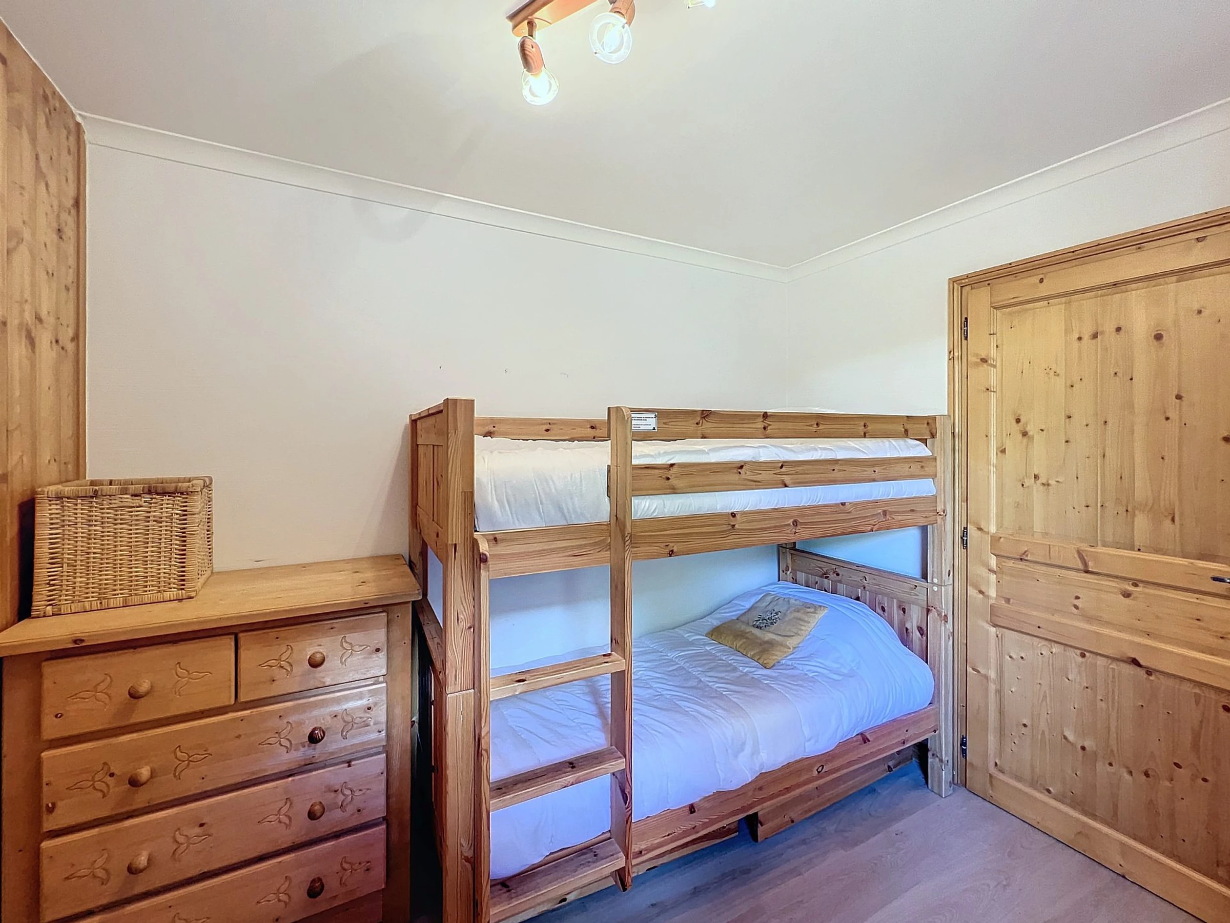 Une deuxième chambre avec lits superposés (2x80x190), meuble de rangements.