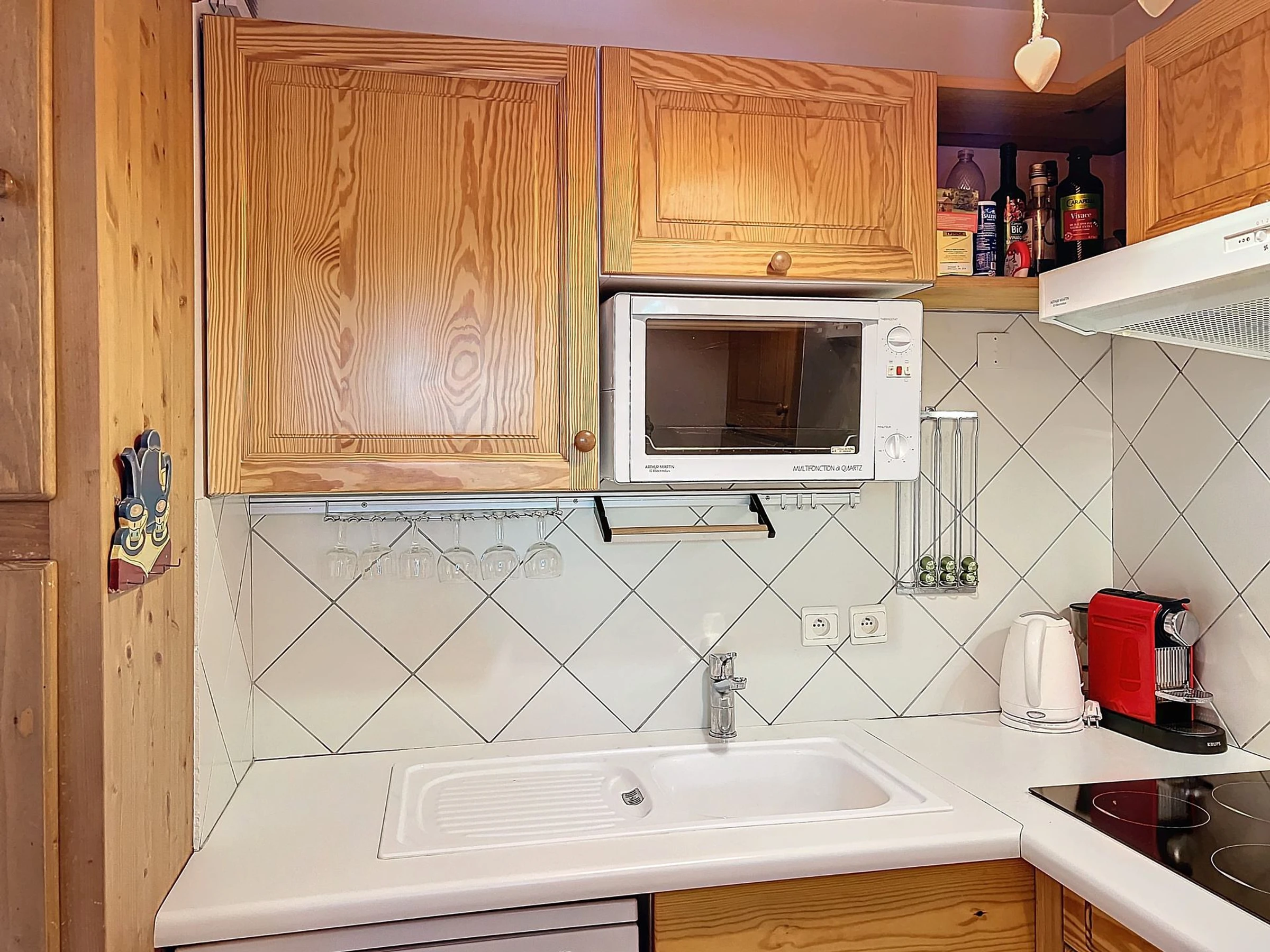 Réfrigérateur/freezer, plaques vitrocéramiques 4 feux, petit four, micro-ondes, une hotte aspirante, bouilloire, cafetière capsules