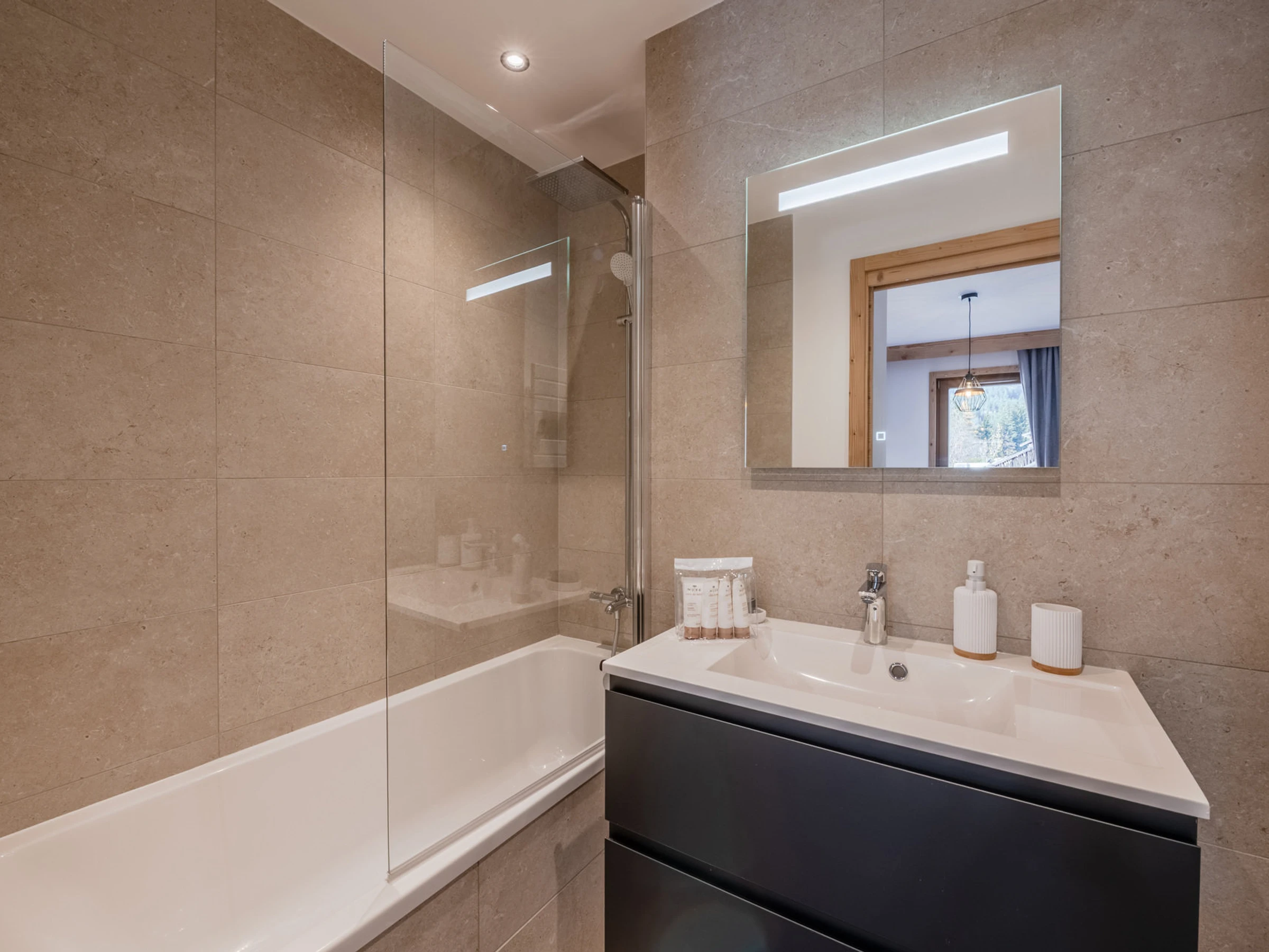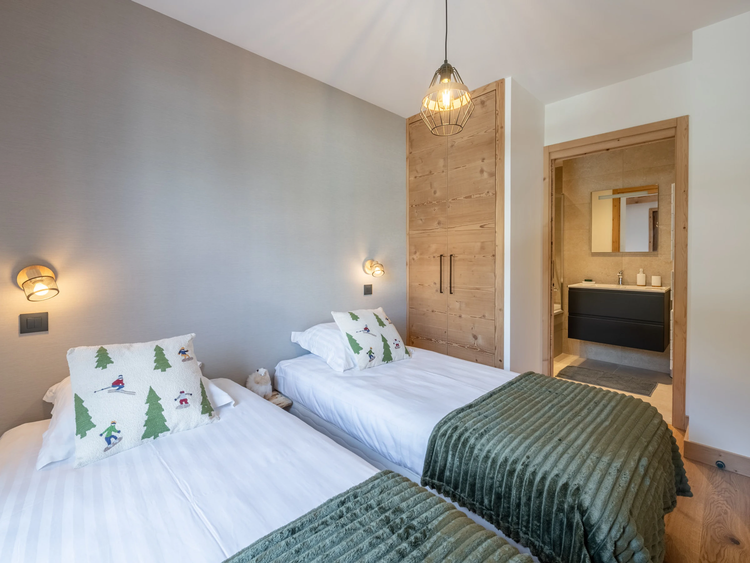- Une chambre avec 2 lits simples 90x200 (possibilité de faire un double) en suite avec salle de bains