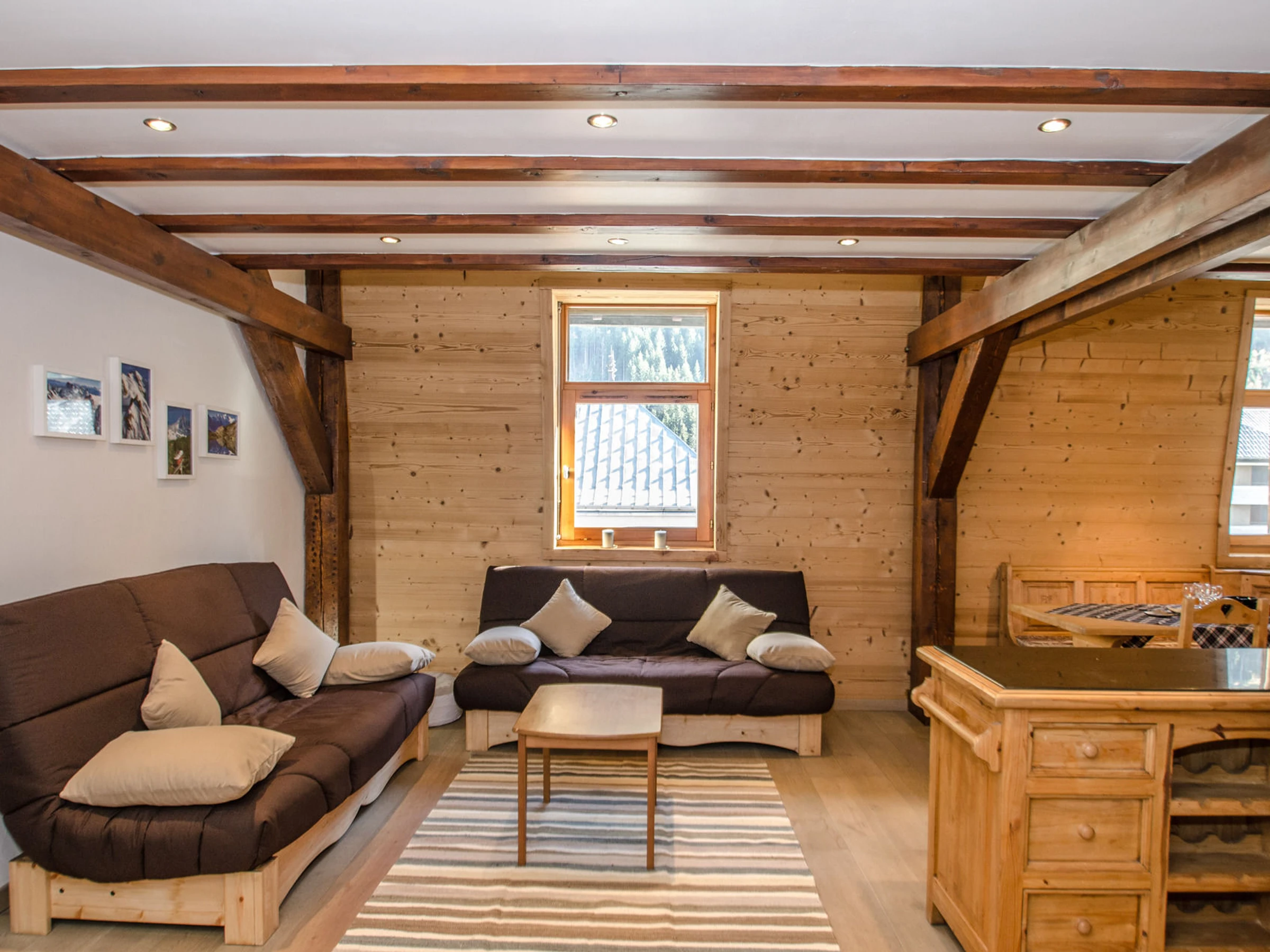 - Espace de vie avec espace repas, salon avec TV et canapé lit double (130x190)