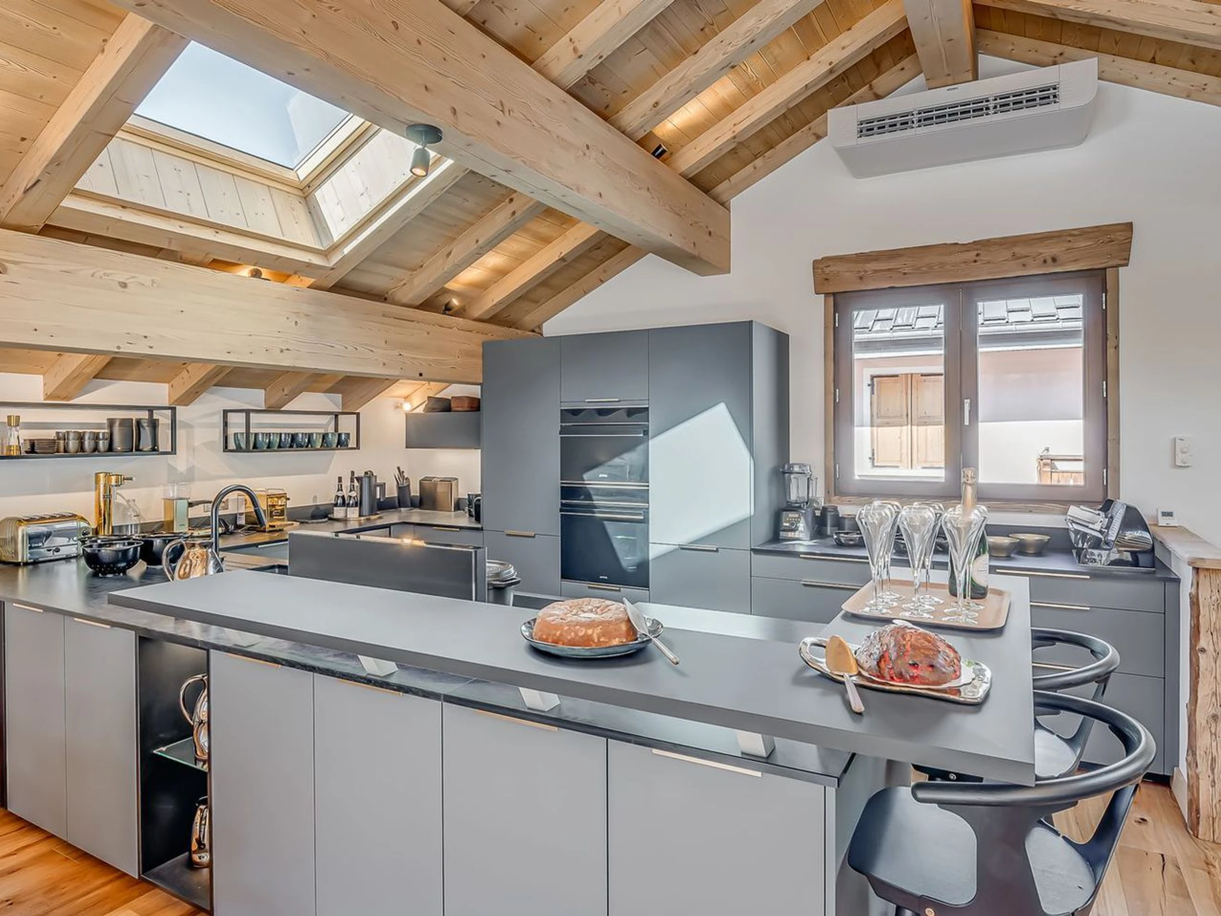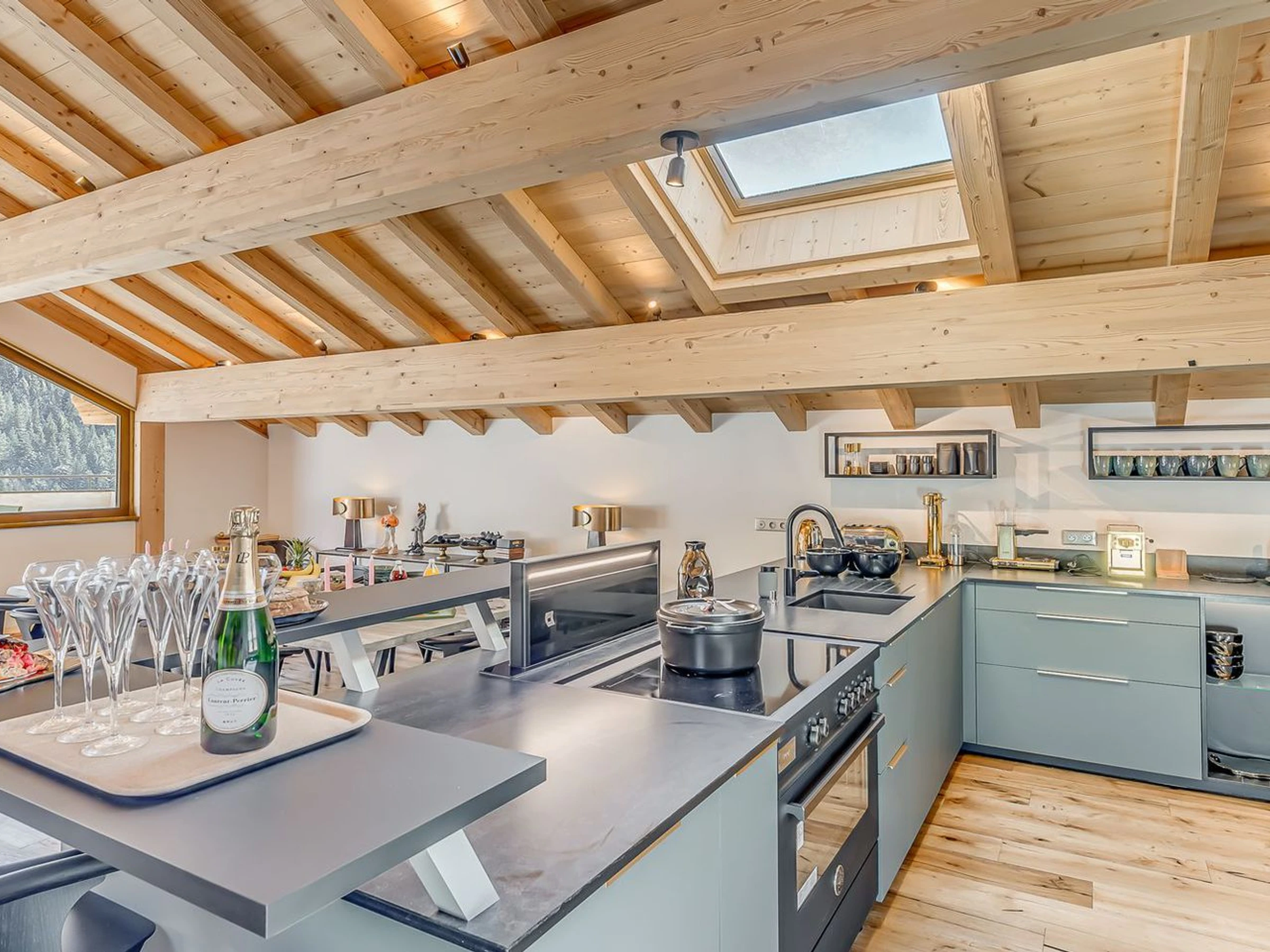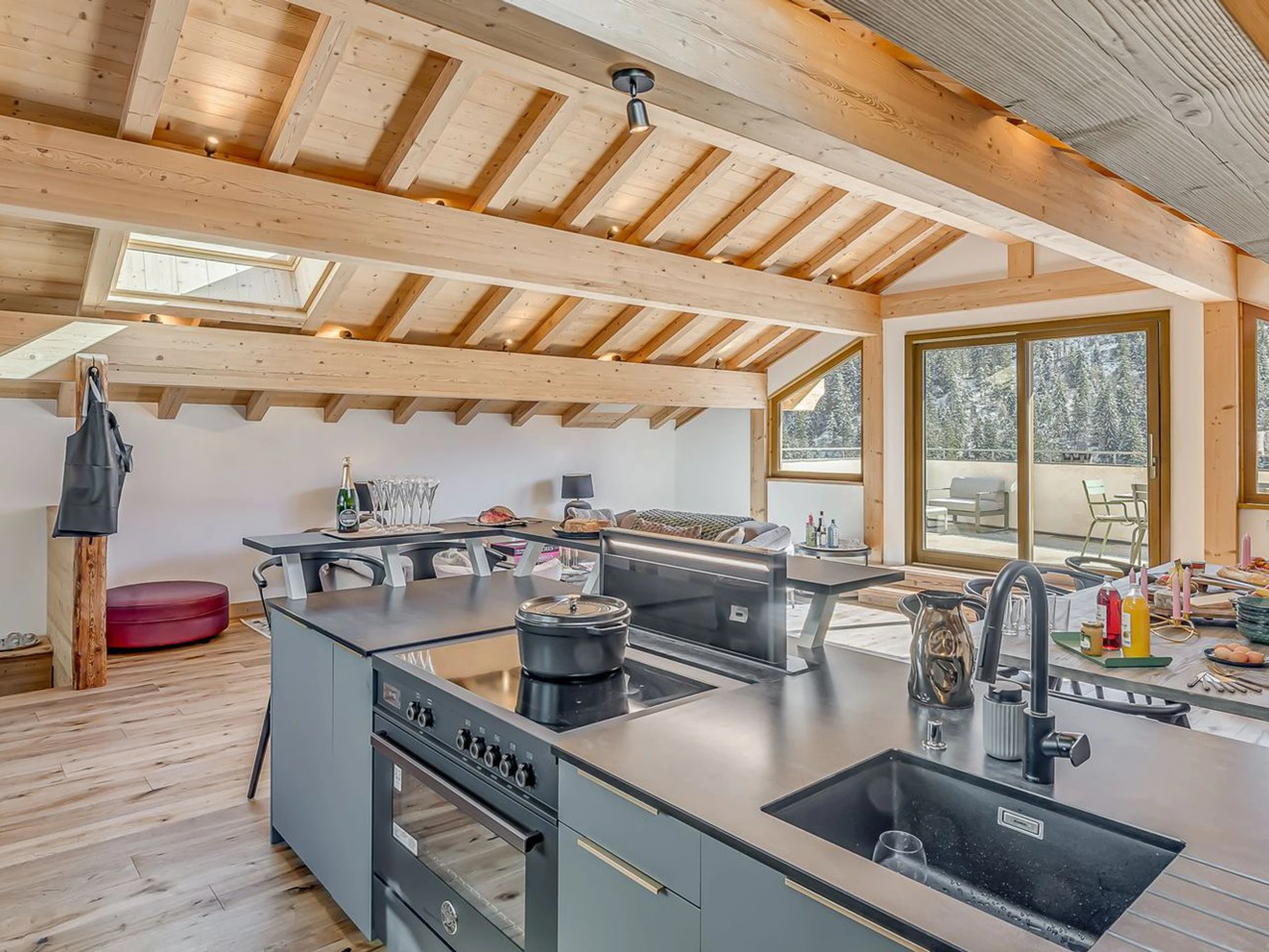 et une magnifique terrasse située au-dessus des toits du village du PLANAY - avec vue SUD très étendue en direction de la station de COURCHEVEL et du Parc National de la Vanoise.