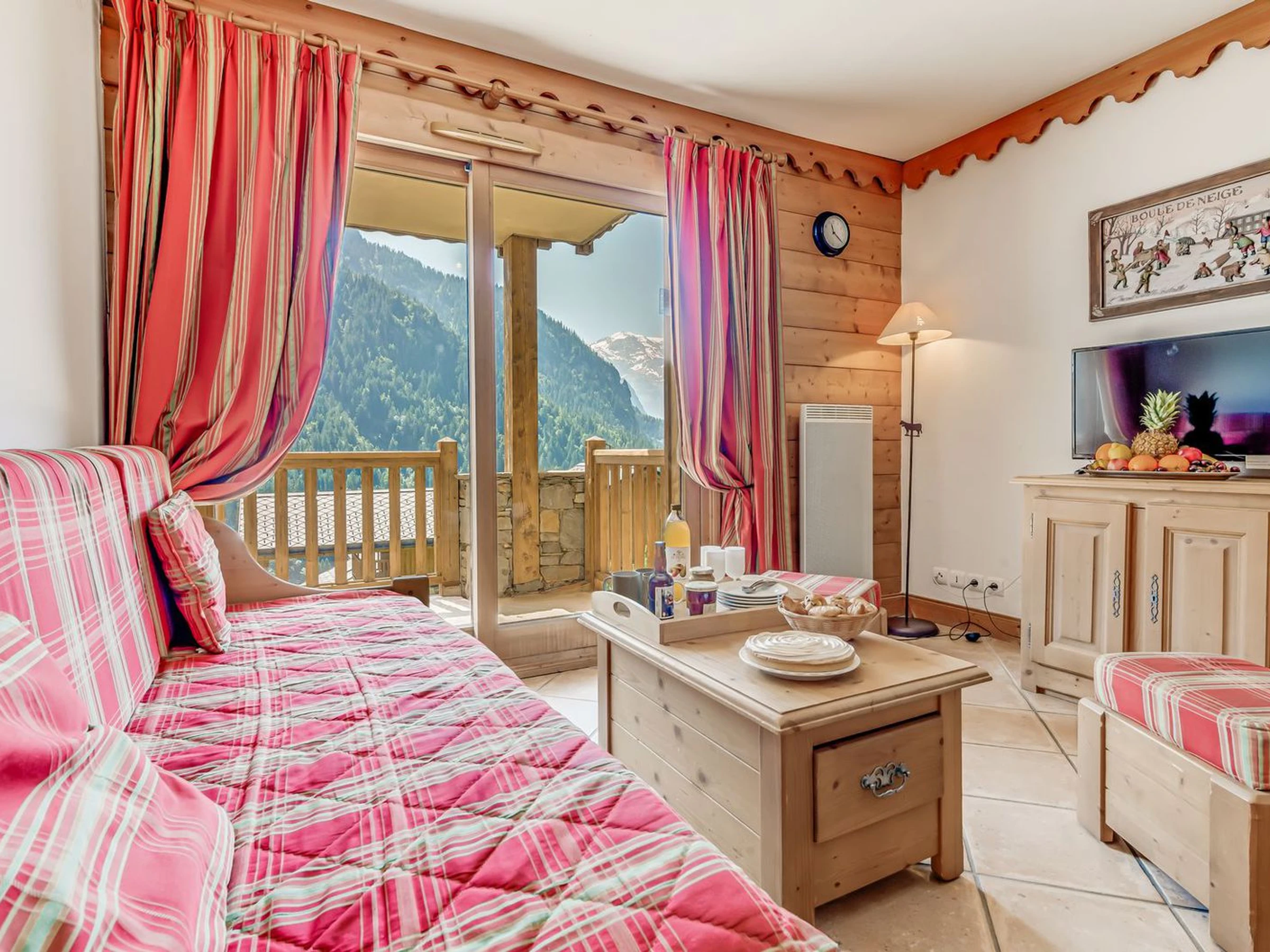 - 1 séjour, salon, coin repas avec TV et WIFI, 1 canapé lit gigogne, avec porte fenêtre ouvrant sur le balcon