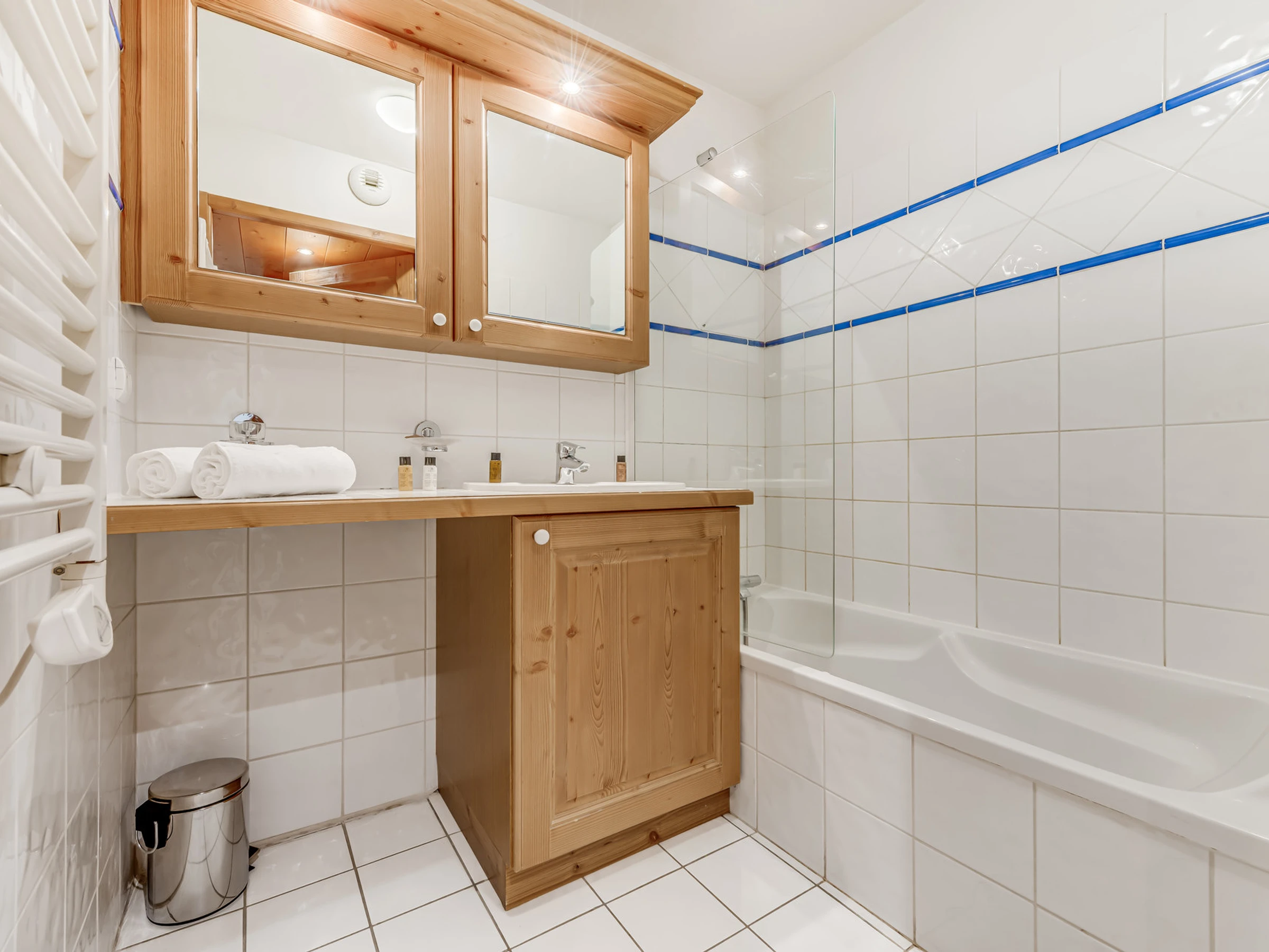- 1 Salle de bains avec baignoire, meuble vasque et radiateur sèche serviettes