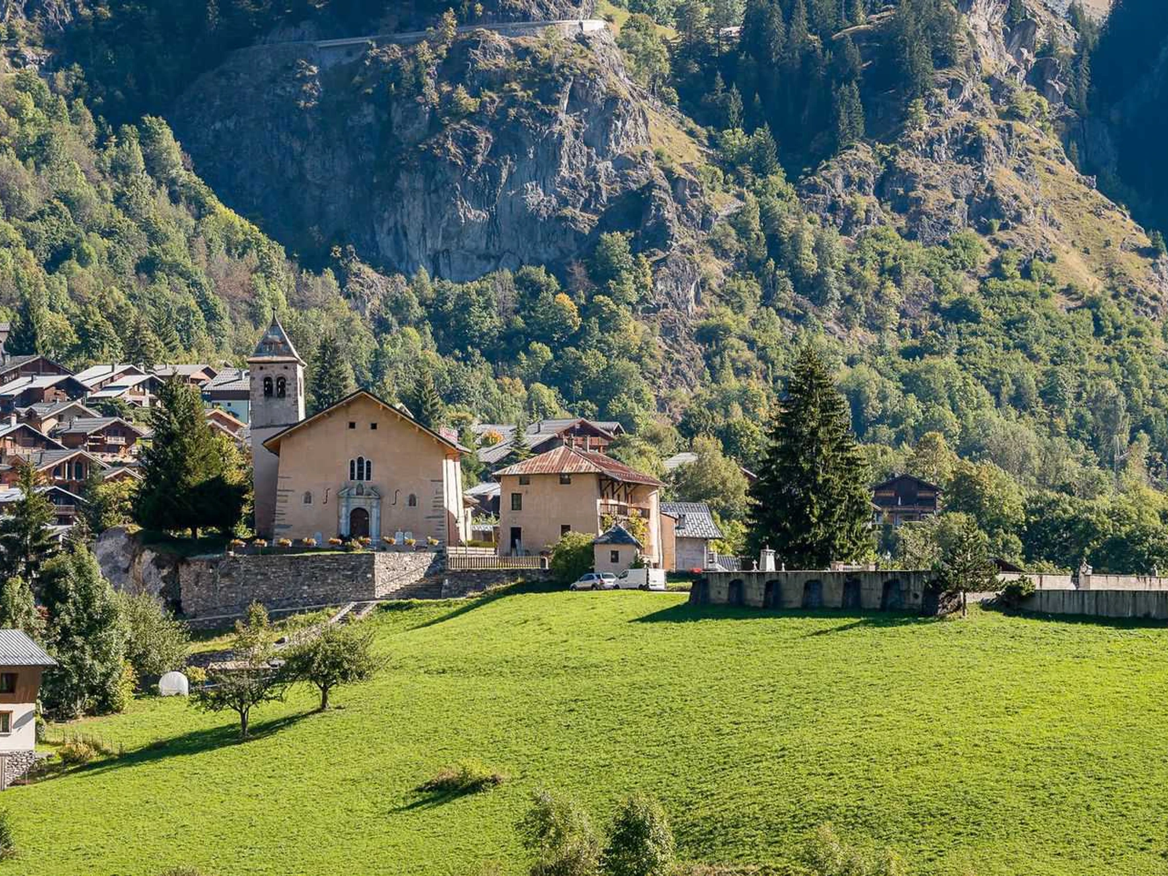 - séjour avec canapé, donnant sur balcon sud avec très belle vue dégagée sur vallée de Pralognan et village de Champagny