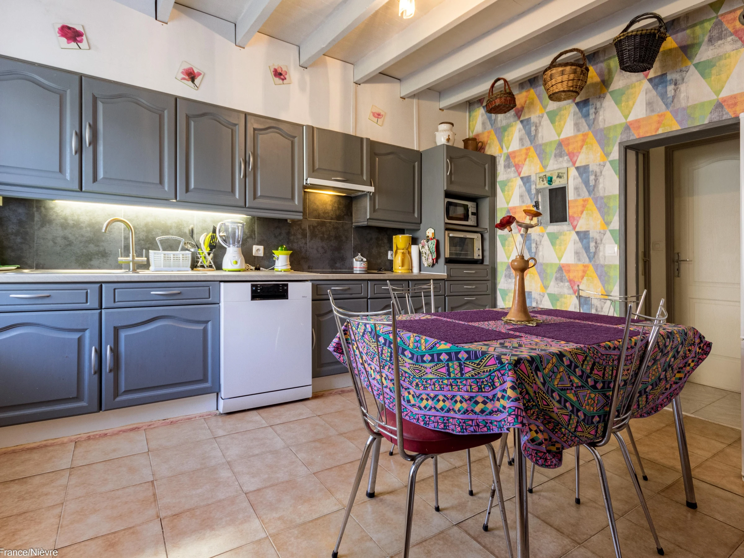 Au sein d'un petit village sur le chemin de St Jacques de Compostelle, gîte mitoyen à la maison de la propriétaire sans vis-à-vis. Cour close à l'avant du gîte, entrée par la véranda, pièce à vivre avec salon, télé, wifi, salle à manger, cuisine, salle d'eau avec douche et wc indépendant, 1 chambre avec 2 lits 80x190, 1 chambre avec 1 lit 140x200 donnant accès à une 2ème véranda et au jardin en partie clos avec terrasse, salon de jardin, barbecue et arbres fruitiers. A l'étage, accès à une chambre avec 1 lit 140x190 et sa salle d'eau privative (douche et wc sani-broyeur).  Commerces sur place. A proximité de Prémery, de la Charité sur Loire (ville d'Art et d'Histoire), vignoble des côteaux de la Charité, forêt des Bertranges.