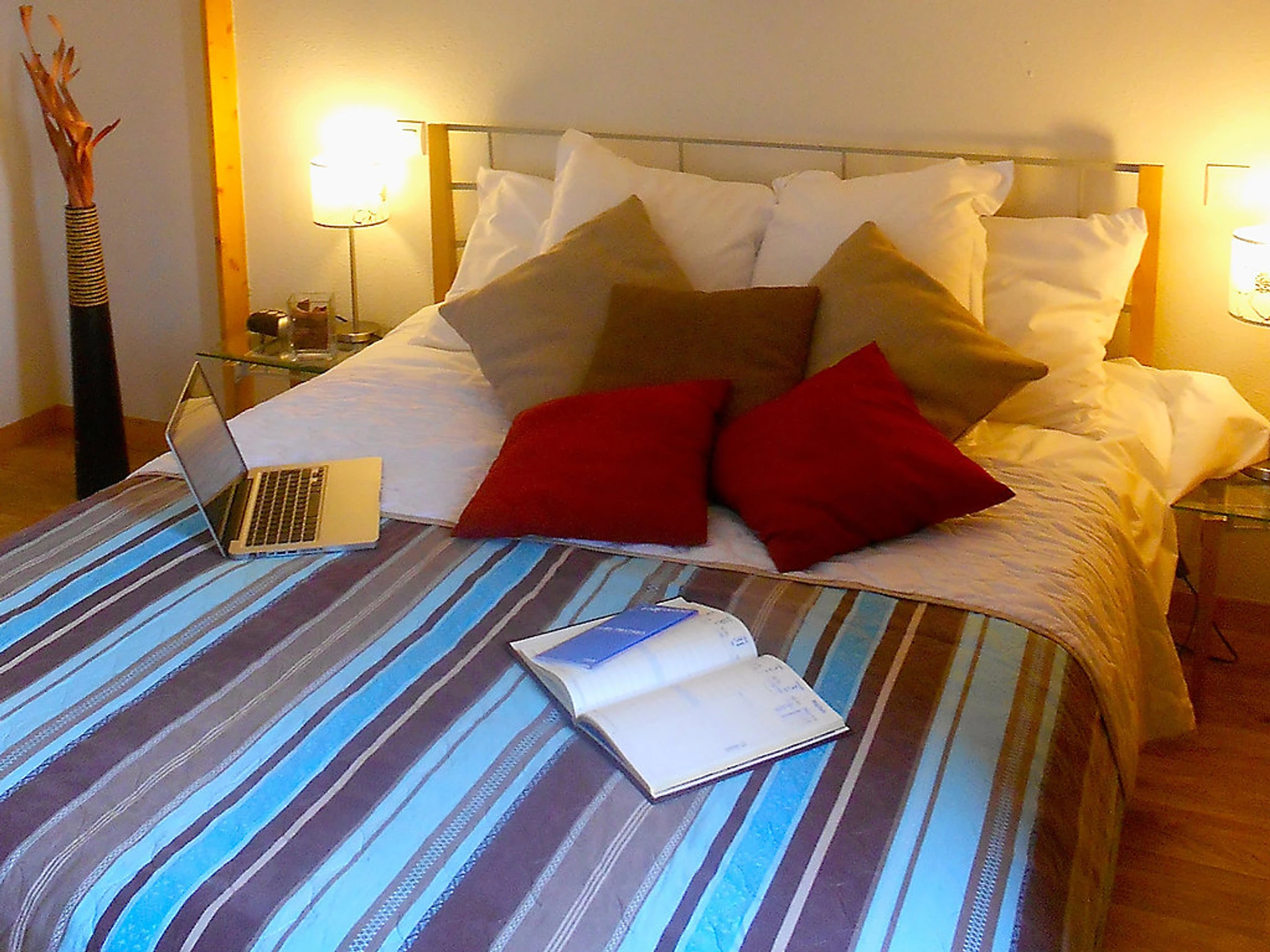 Apt 3 pièces 50 à 55 m2. Séjour/salle à manger avec 1 divan-lit double, TV, écran plat et chaîne stéréo. 1 chambre avec 1 lit double. 1 chambre avec 2 couchages. Cuisine (lave-vaisselle, 4 plaques vitrocéramique, cafetière électrique, combiné micro-ondes). Salle de bains, 2 WC séparés, bains ou douche. Vue sur les montagnes. Place de parking. Adapté(e) aux familles. Inclus: Chaise haute, Lit bébé (jusqu'à 2 ans), Lits faits à l’arrivée, Internet sans fil (WIFI), Serviettes (premier jeu) Disponible sur le site avec supplément: Nettoyage final 39.0EUR prix forfaitaire, Animal 40.0EUR par semaine Services supplémentaires obligatoires sur le site: Taxe de séjour 0.8EUR par personne et par jour