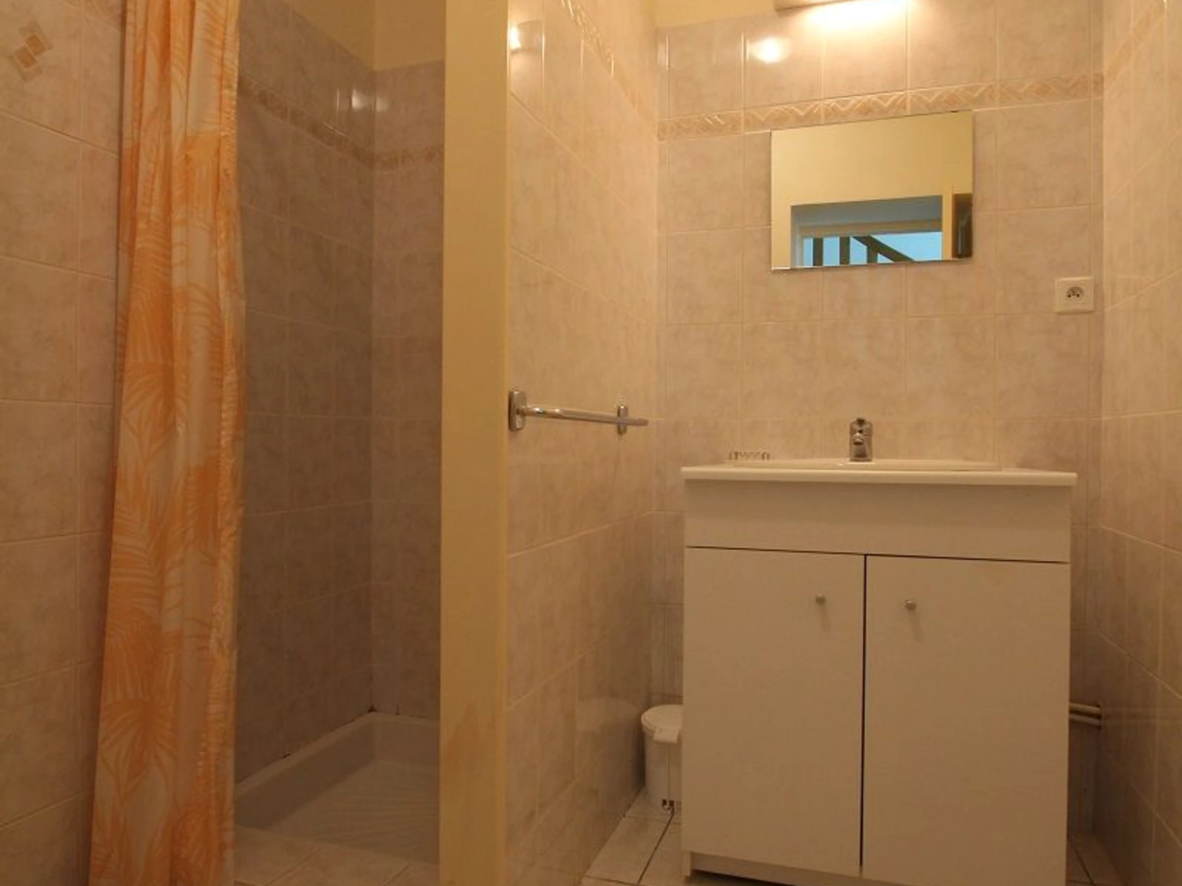 Au rez-de-chaussée : séjour-cuisine (TV), salle d'eau, wc.