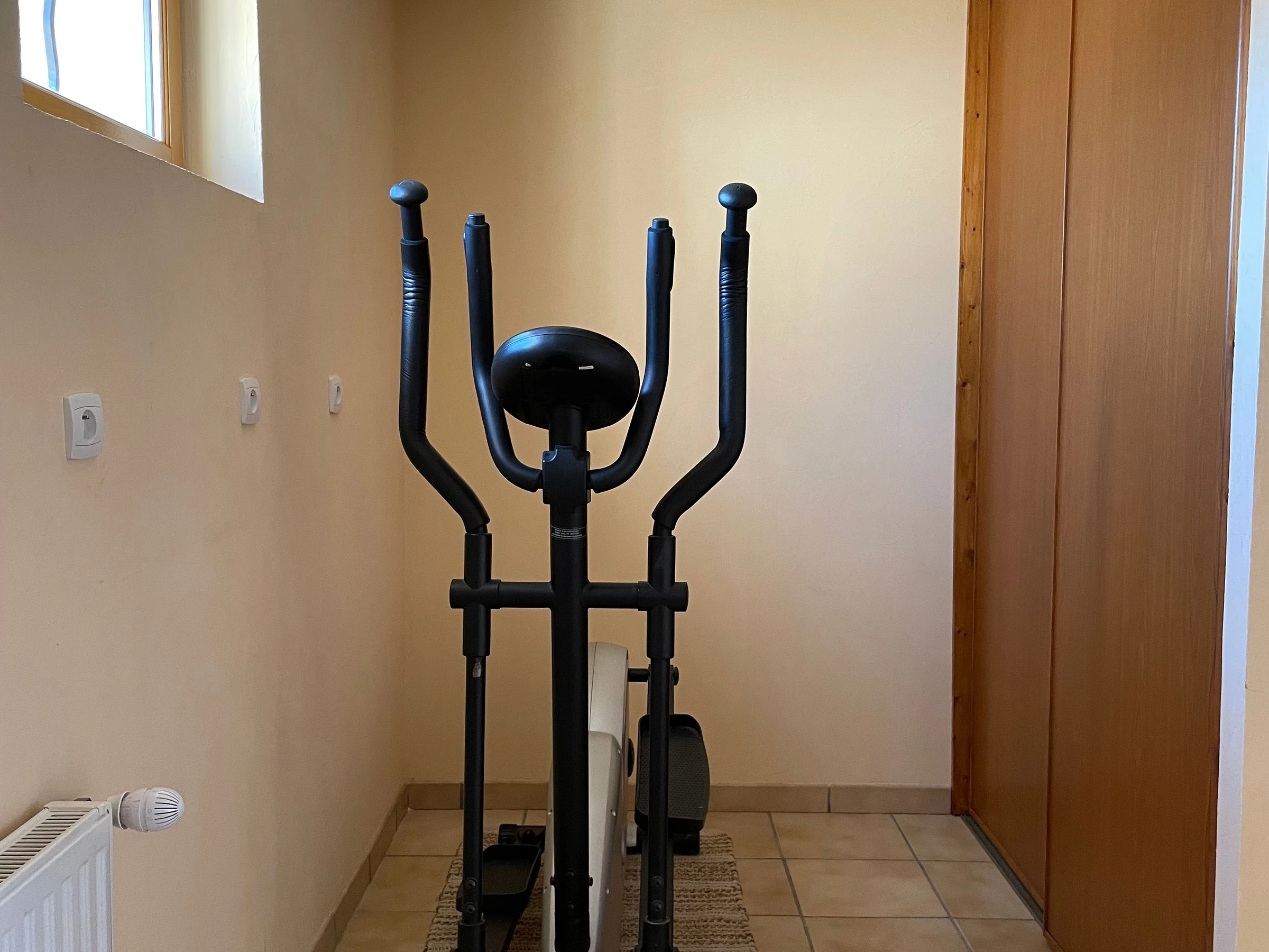 - 1 petite salon indépendant avec grand canapé d'angle et TV, petite salle à vélo elliptique.
