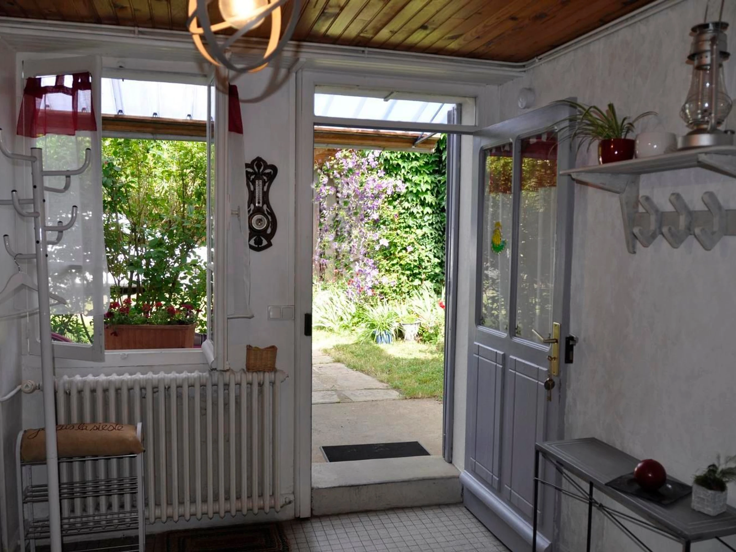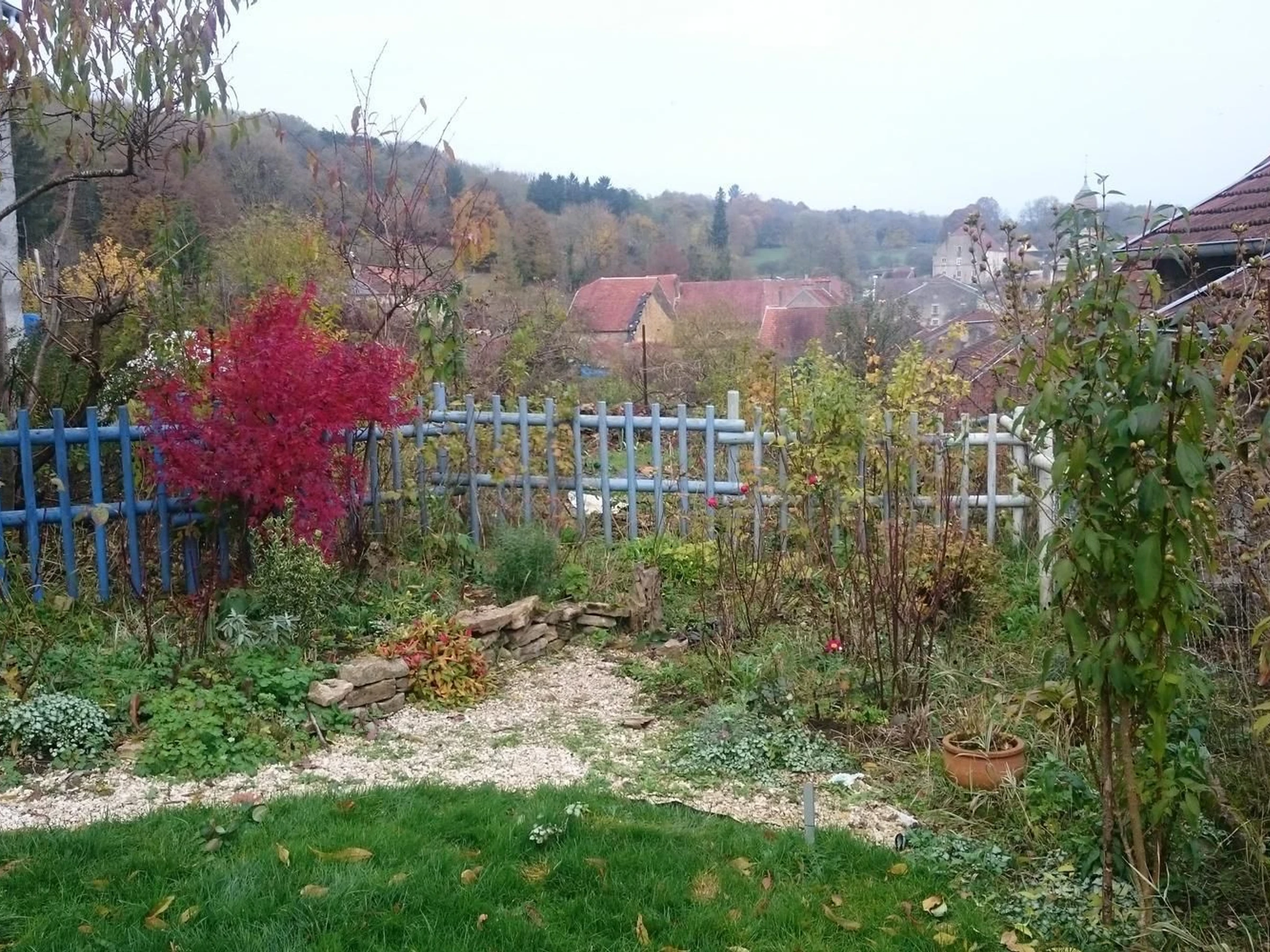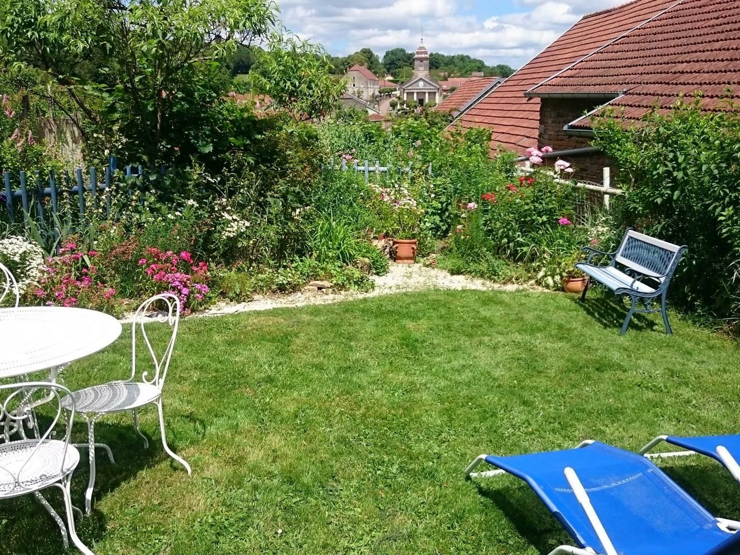 À l'arrière de la maison, profitez du calme du jardin privatif et sans vis à vis, agréablement fleuri, jolie vue sur le village. Jardin clos - Cour close avec abri voiture commune avec la propriétaire. Lits faits à l'arrivée si option drap prise à la réservation. Internet par wifi.