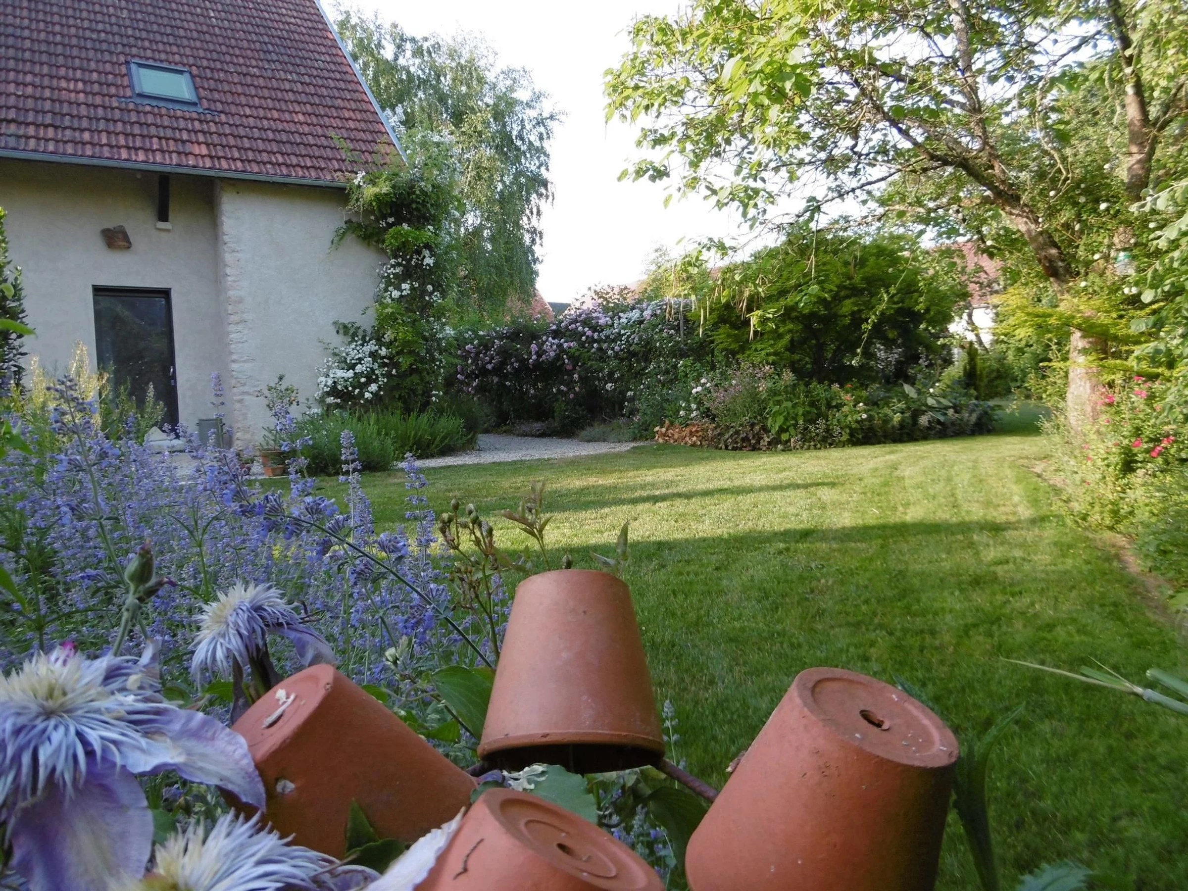 Côté extérieurs, vous profiterez de l'agréable jardin très fleuri, non clos et commun avec les propriétaires. Le Jardin de la Clochette abrite une centaine de variétés de rosiers, quelques 350 plantes vivaces, ainsi qu'un potager.