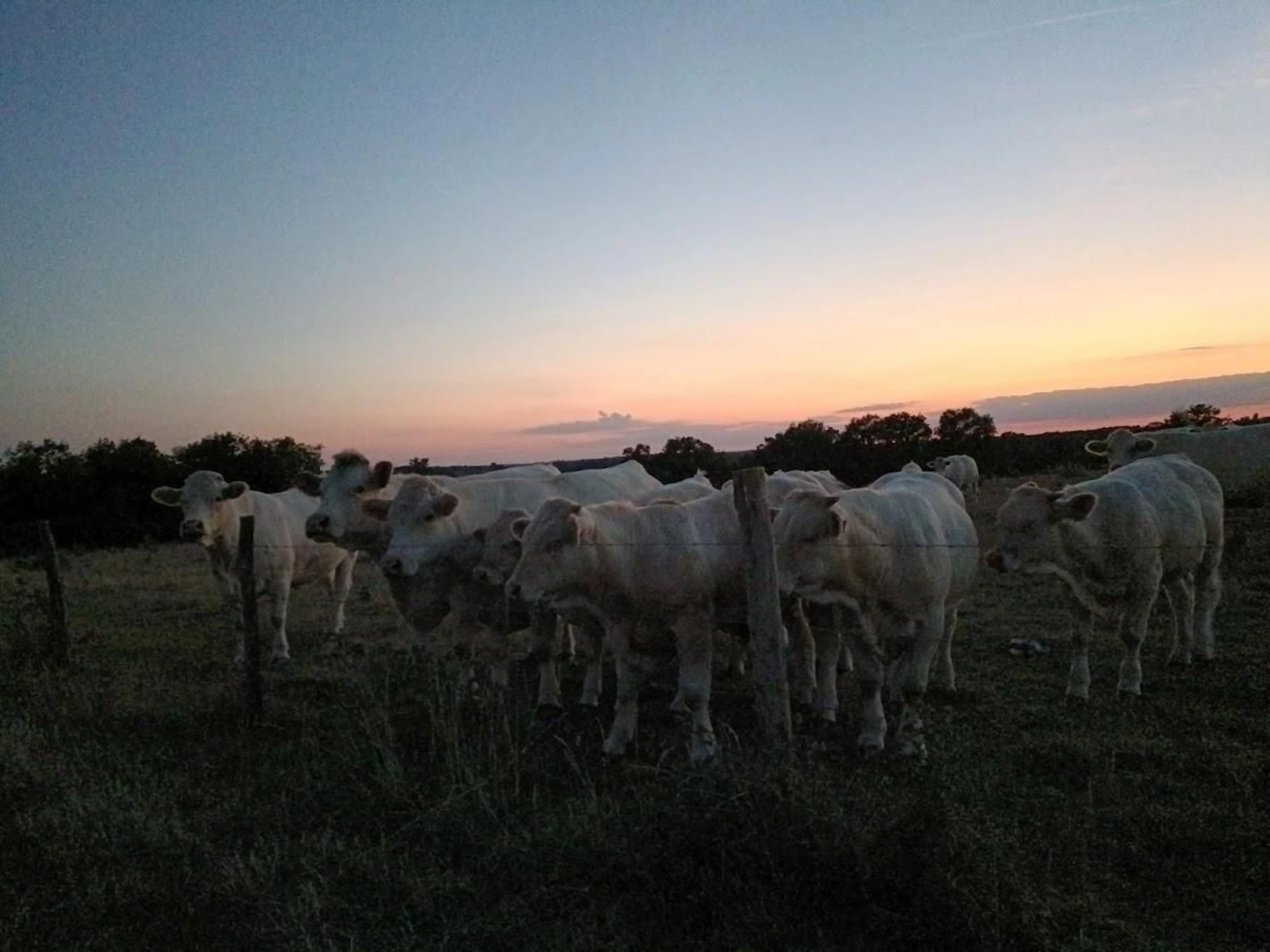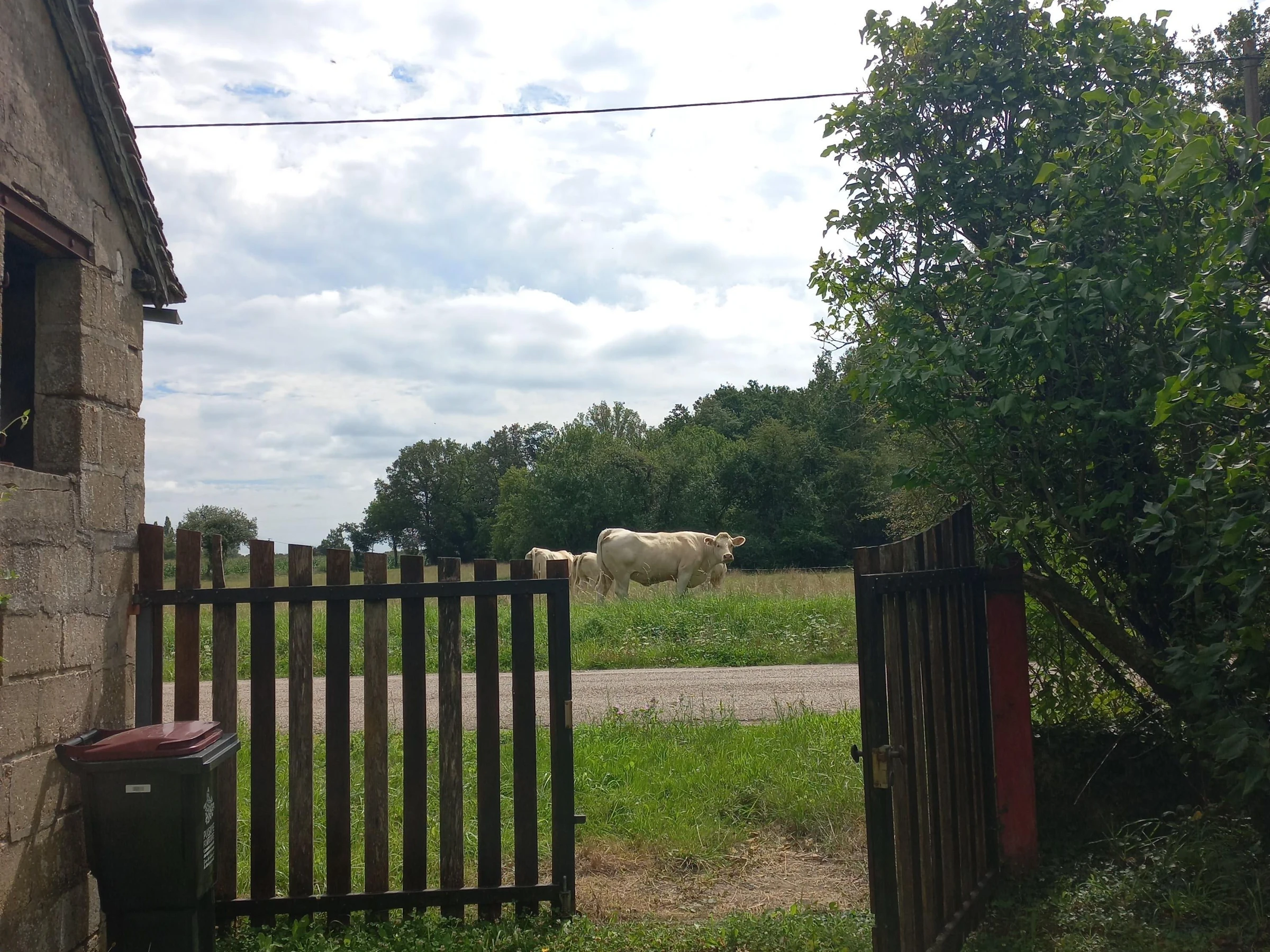 Grande maison de campagne comprenant 4 chambres, deux salles de bain, une vaste salle à manger et un salon. Les couchers de soleils sont particulièrement beaux sur un horizon dégagé. Vue sur les vaches en été: élevage charolais à proximité mais sans désagréments :)