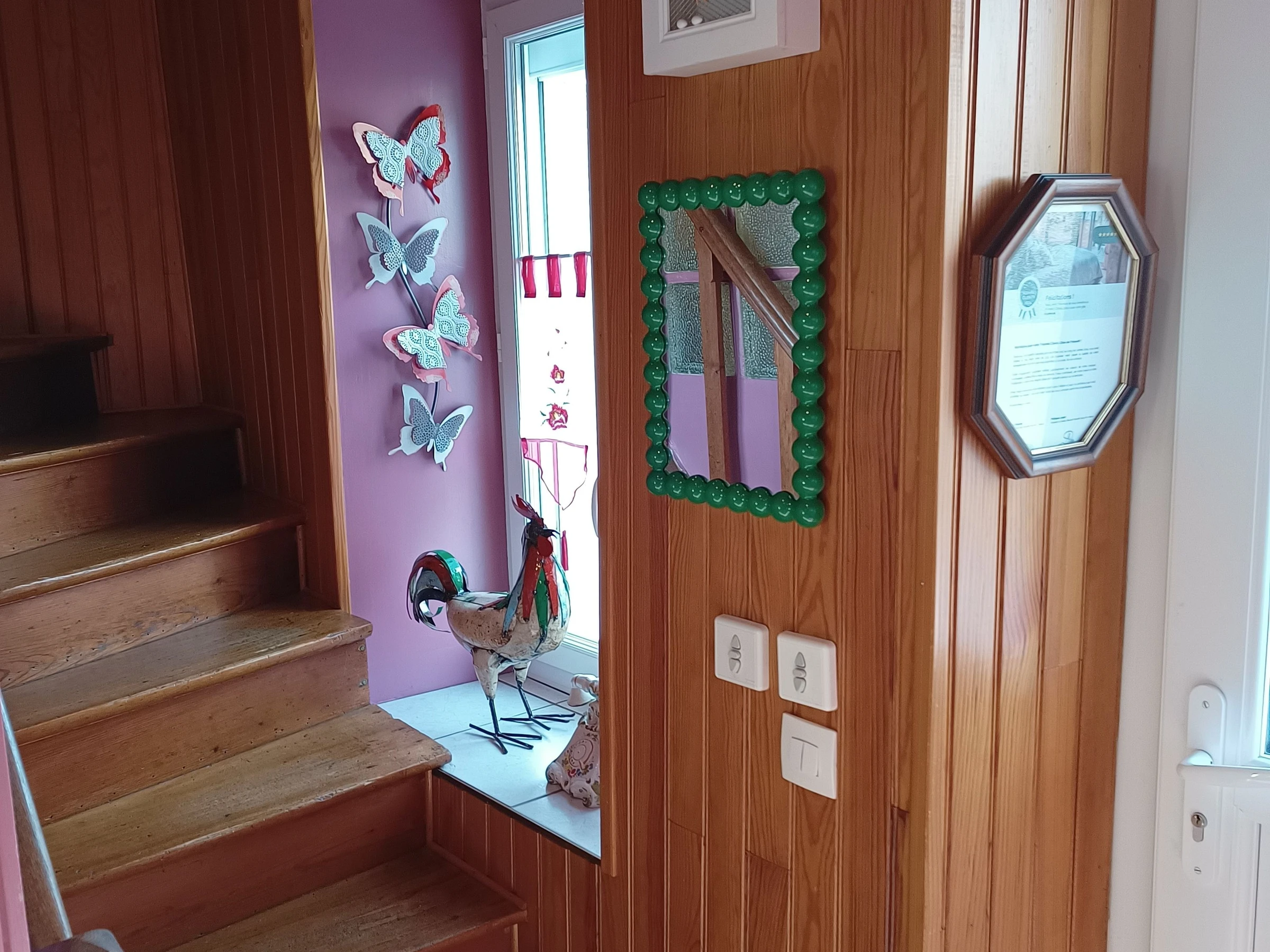 Au rez-de-chaussée : cuisine intégrée et équipée (dont cafetière à capsules type "'nespresso", balance de cuisine), pièce à vivre avec coin salon, télé, micro-chaine, lecteur DVD Blu-ray, wifi, jeux de société et livres. Jolie vue dégagée. Une petite salle d'eau avec wc et douche.