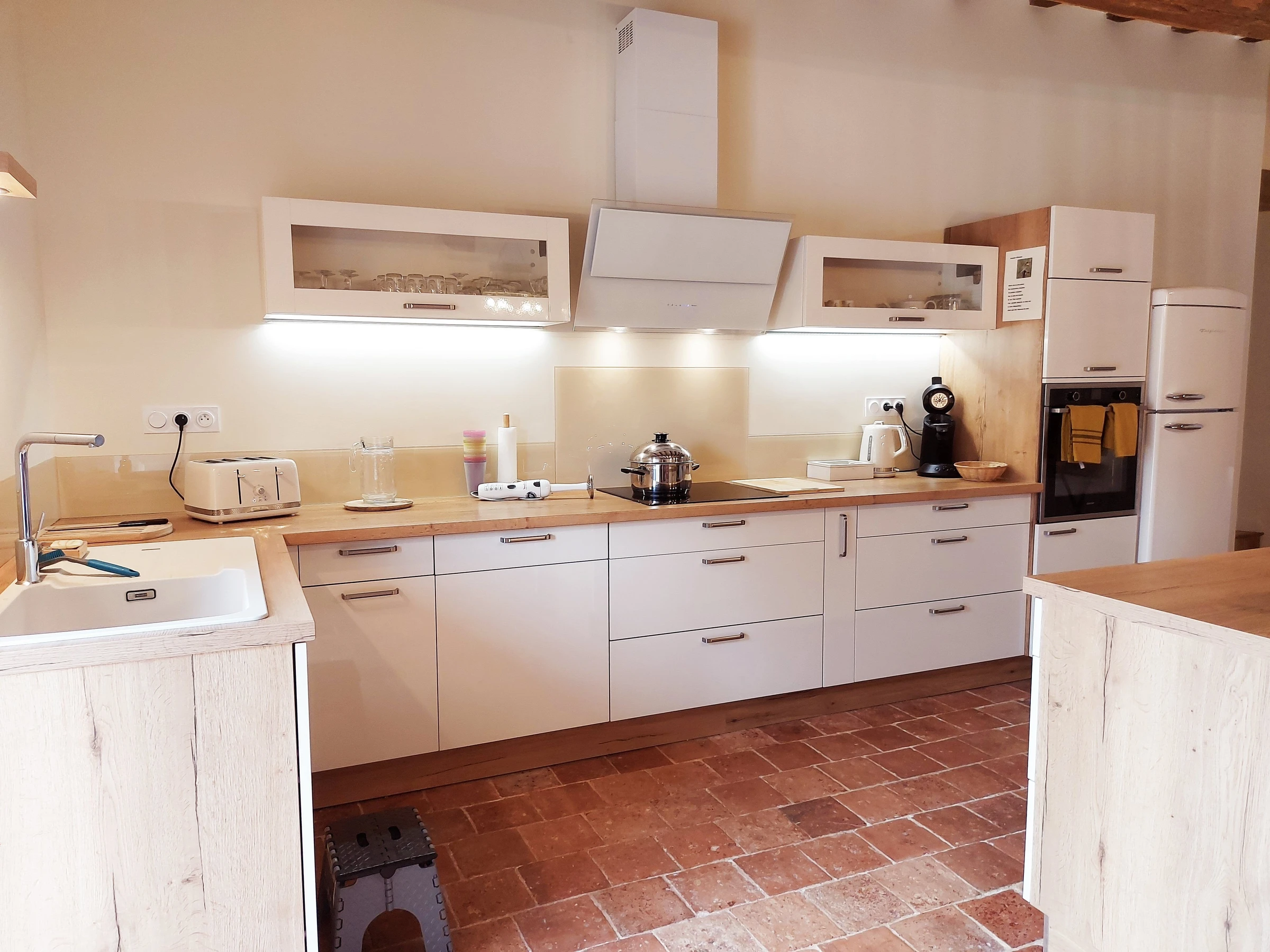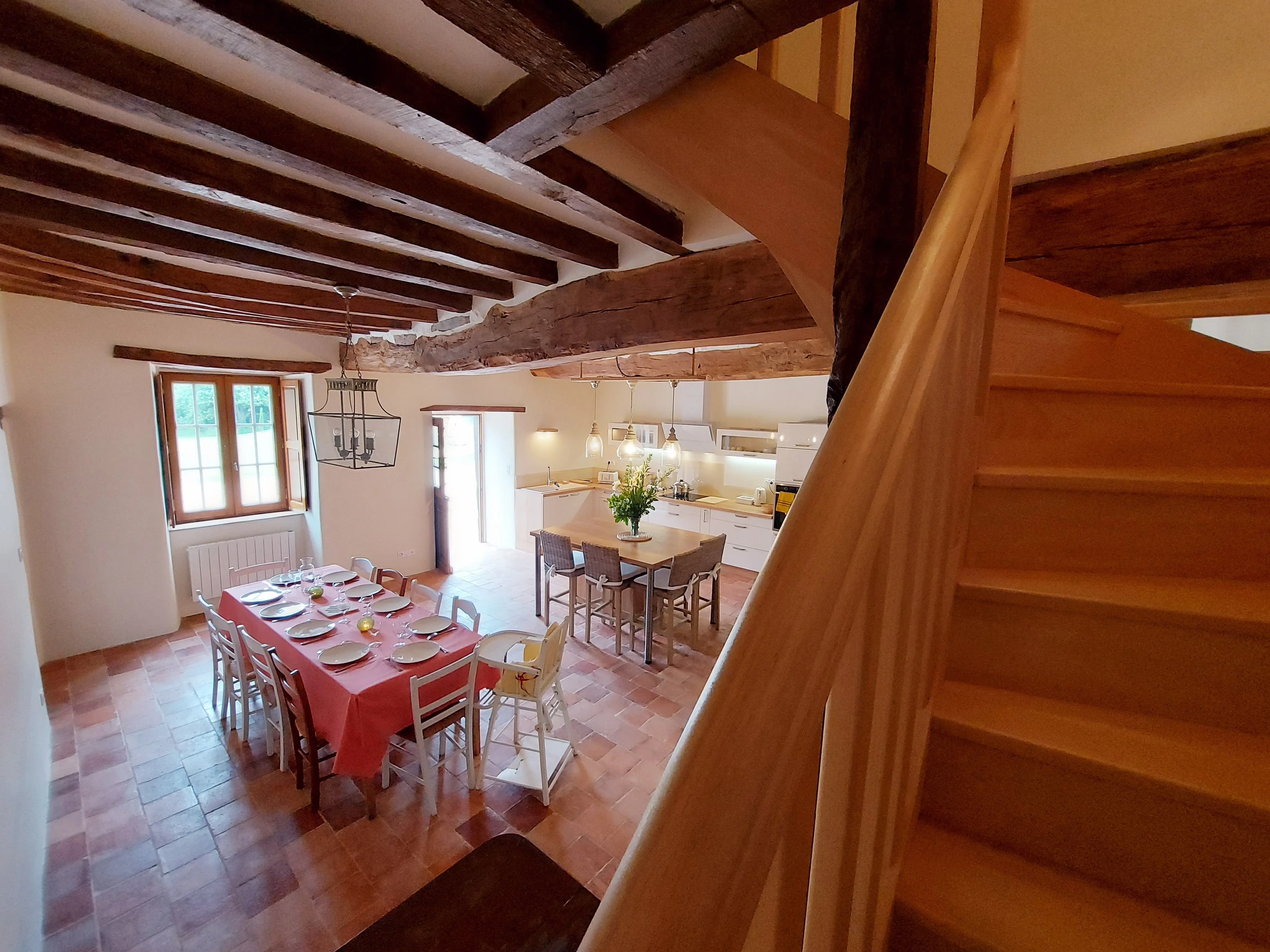 Sur 2 étages : En rez-de-chaussée : entrée - chambre Pics(1) avec salle d'eau privative, 1 lit 160*200 - cuisine équipée 45m² (table de cuisson induction, four, micro-ondes, réfrigérateur, compartiment congélateur, cafetière dosette Senseo, bouilloire, grille-pain, lave-vaisselle)-salon 36m² avec canapés, fauteuils, bibliothèque, secrétaire, TV. wc indépendants.