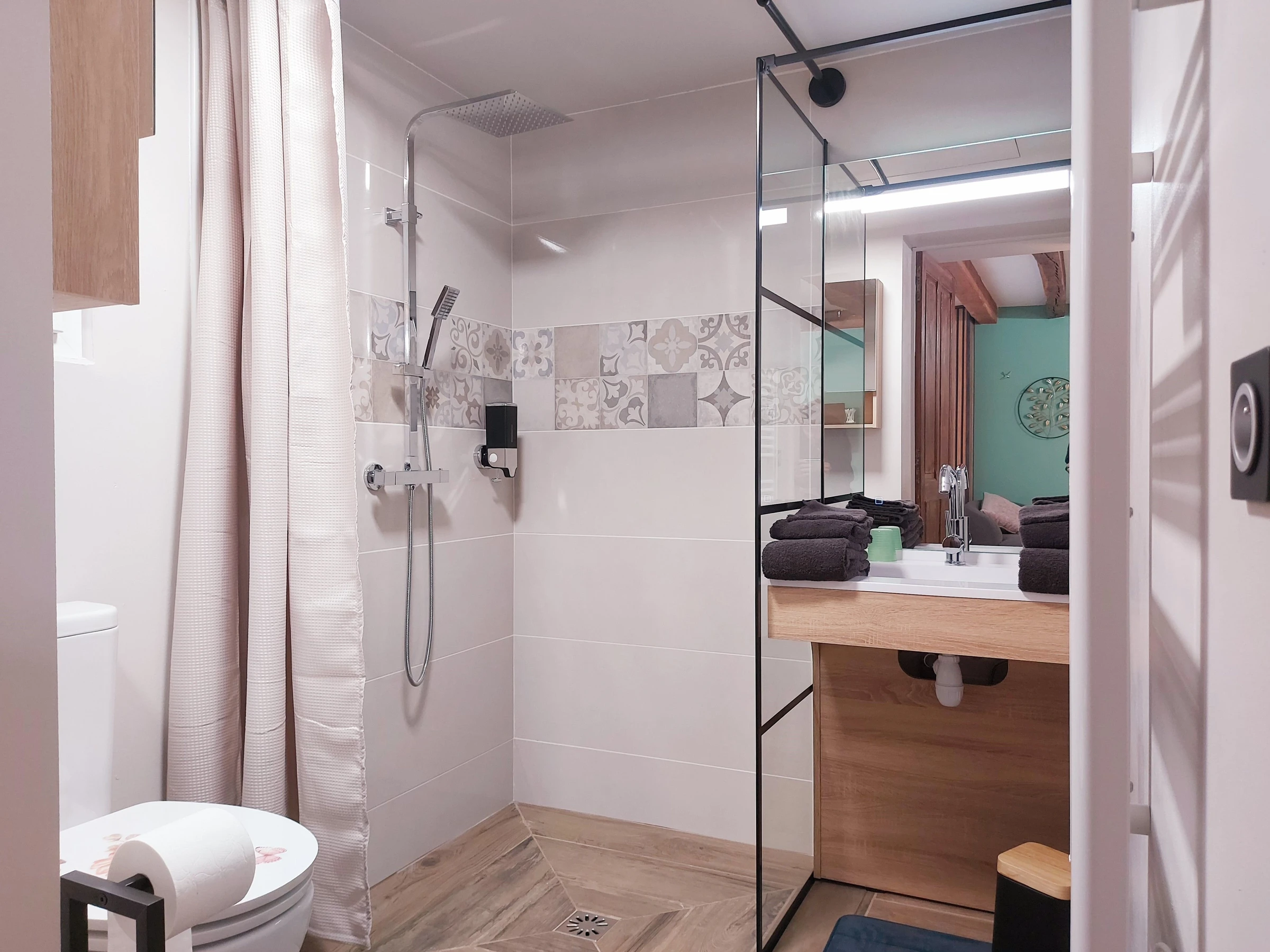 Une salle d'eau privative moderne avec douche italienne et WC.