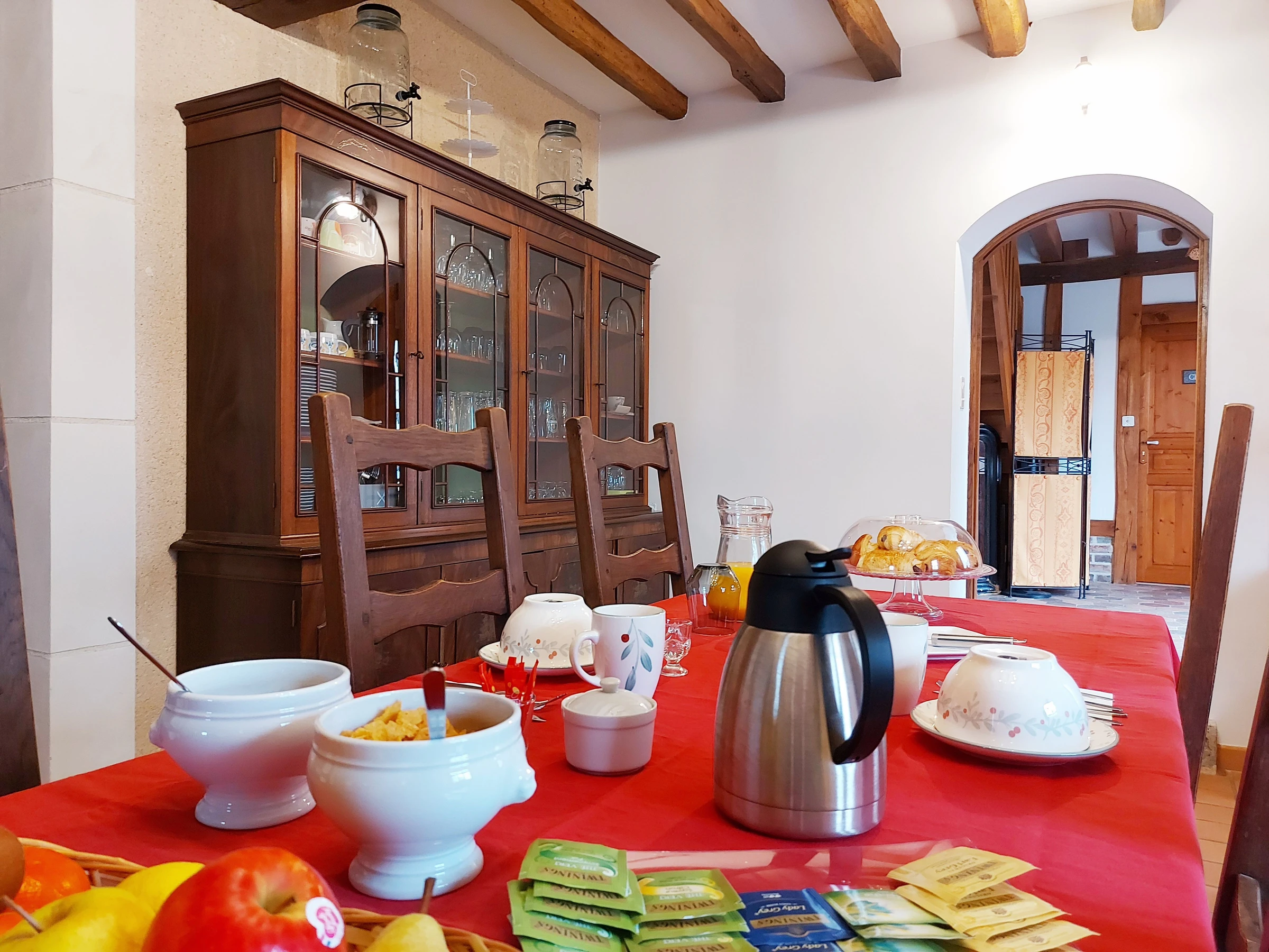 Les petits déjeuners sont servis dans le salon dédié aux hôtes, un espace chaleureux où vous pourrez aussi vous détendre. Le grand jardin clos invite à la détente, avec un salon de jardin idéal pour profiter des journées ensoleillées. À la belle saison, plongez dans la piscine partagée pour un moment de fraîcheur et de bien-être.