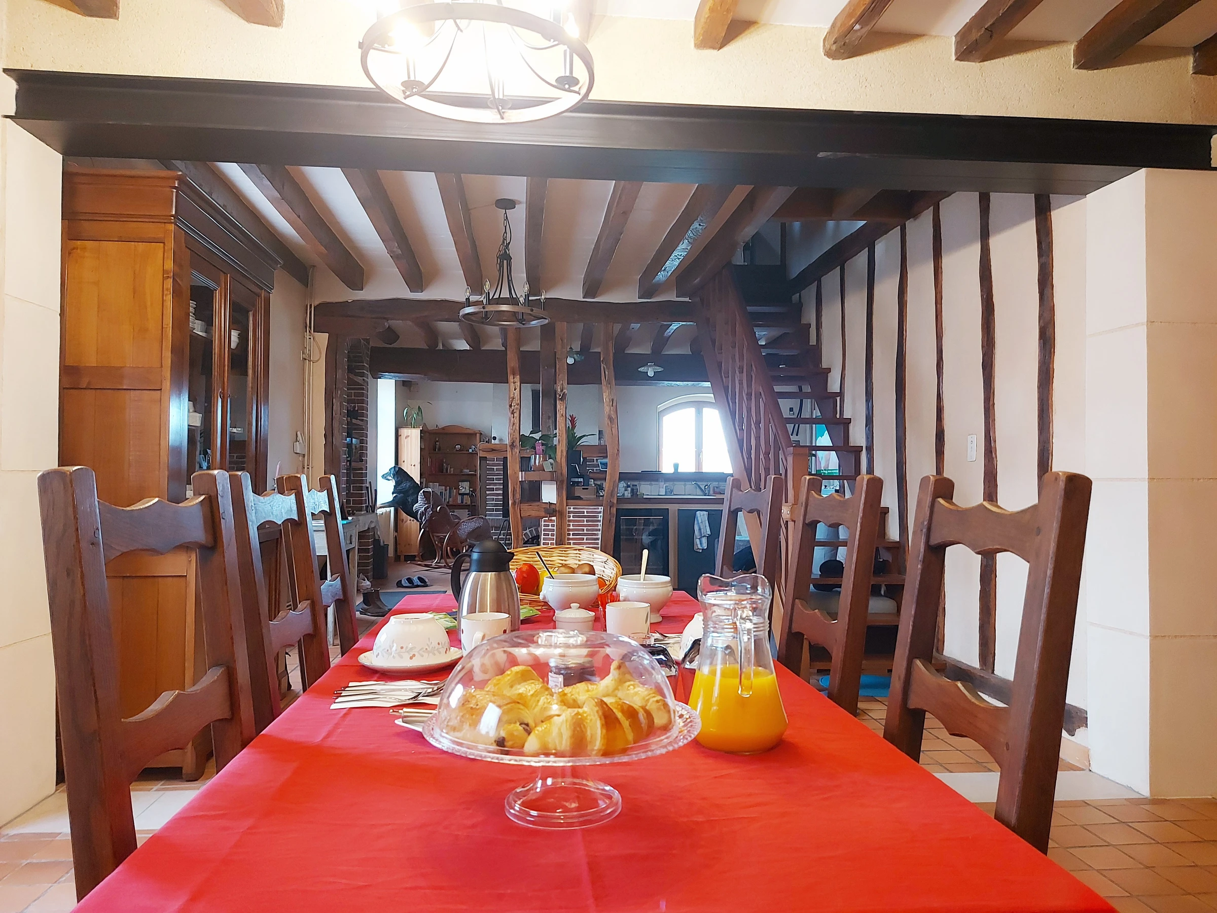Les petits déjeuners sont servis dans le salon dédié aux hôtes, un espace chaleureux où vous pourrez aussi vous détendre. Le grand jardin clos invite à la détente, avec un salon de jardin idéal pour profiter des journées ensoleillées. À la belle saison, plongez dans la piscine partagée pour un moment de fraîcheur et de bien-être.