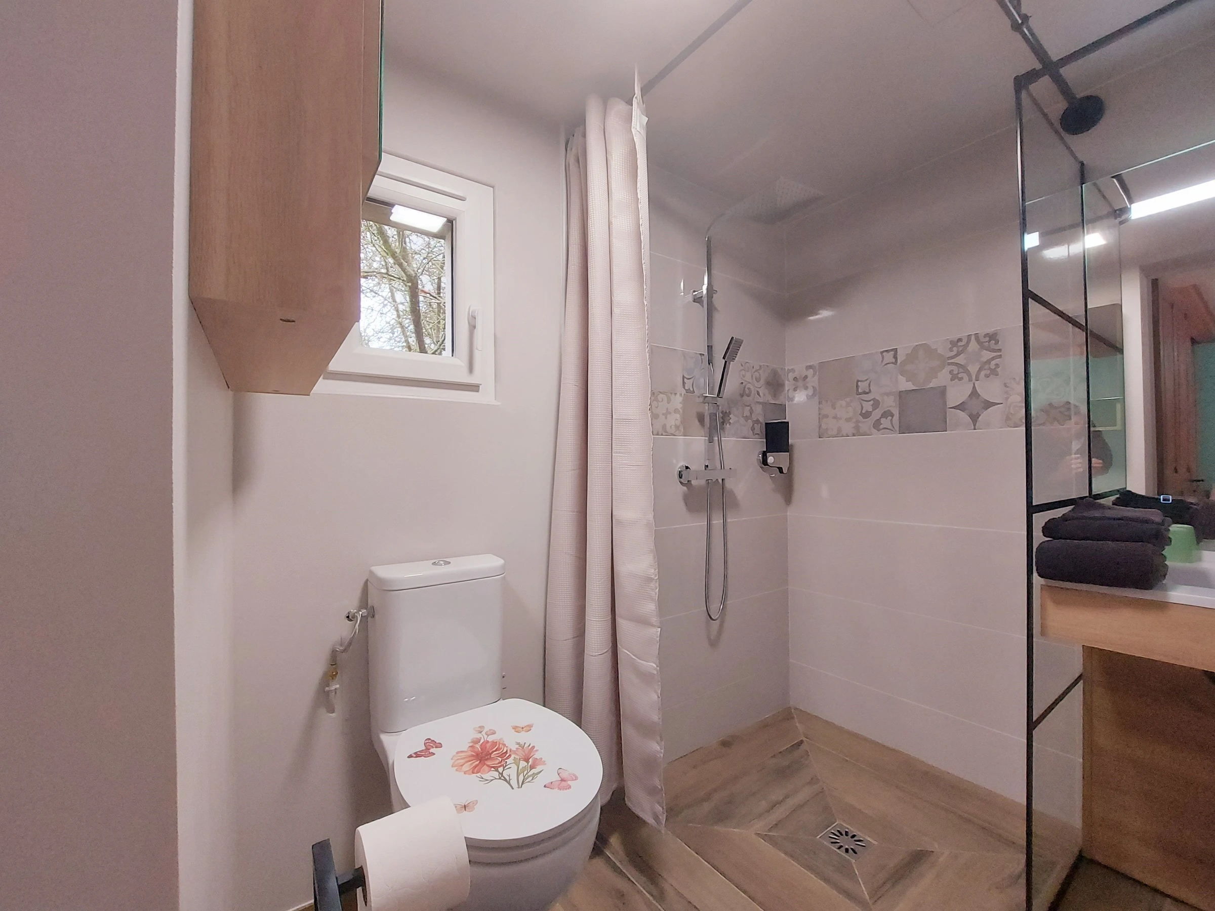 Une salle d'eau privative moderne avec douche italienne et WC.