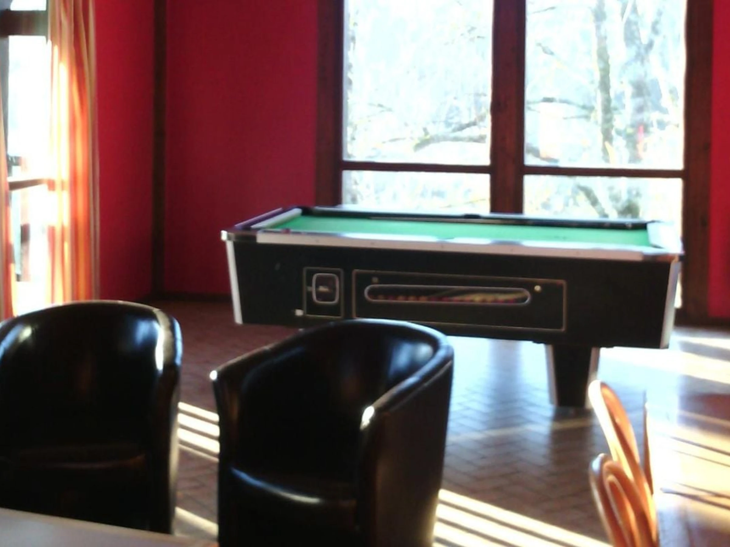 - Salle de du00e9tente avec coin salon TV, billard, baby foot, bibliothu00e8que et jeux de sociu00e9tu00e9,