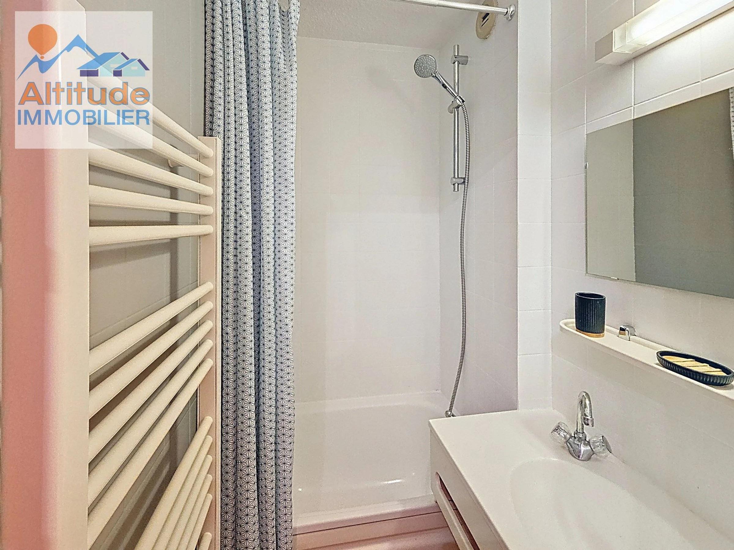 Appartement au 1er étage, de 26m², comprenant une entrée coin montagne avec lits superposés (90x190) modulables ce qui revient à une entrée dégagée, un toilette séparée, une salle de bains avec baignoire, une chambre avec 1 lit 2 personnes (140x190), un séjour avec un canapé convertible 2 personnes, cuisine équipée avec placard, accès au balcon exposé Sud/Est.